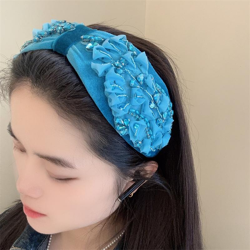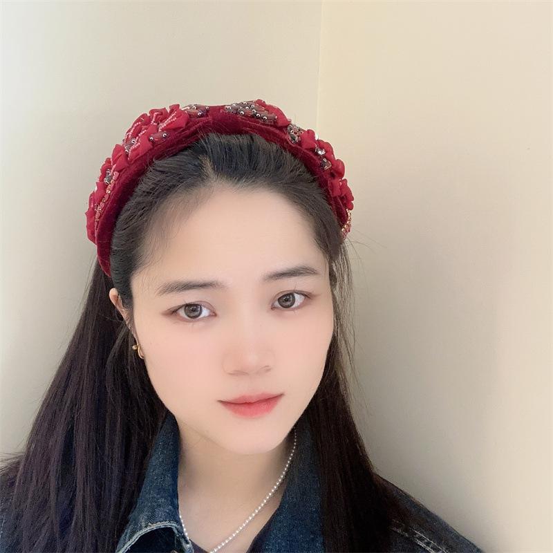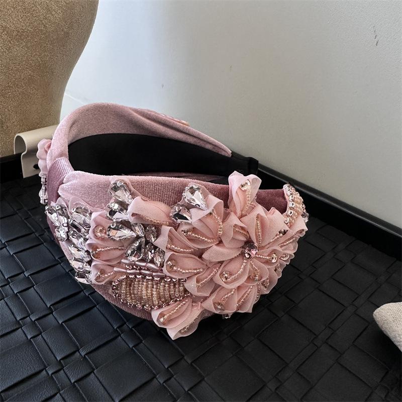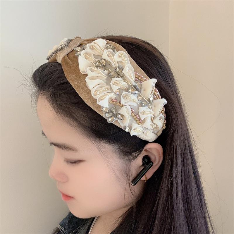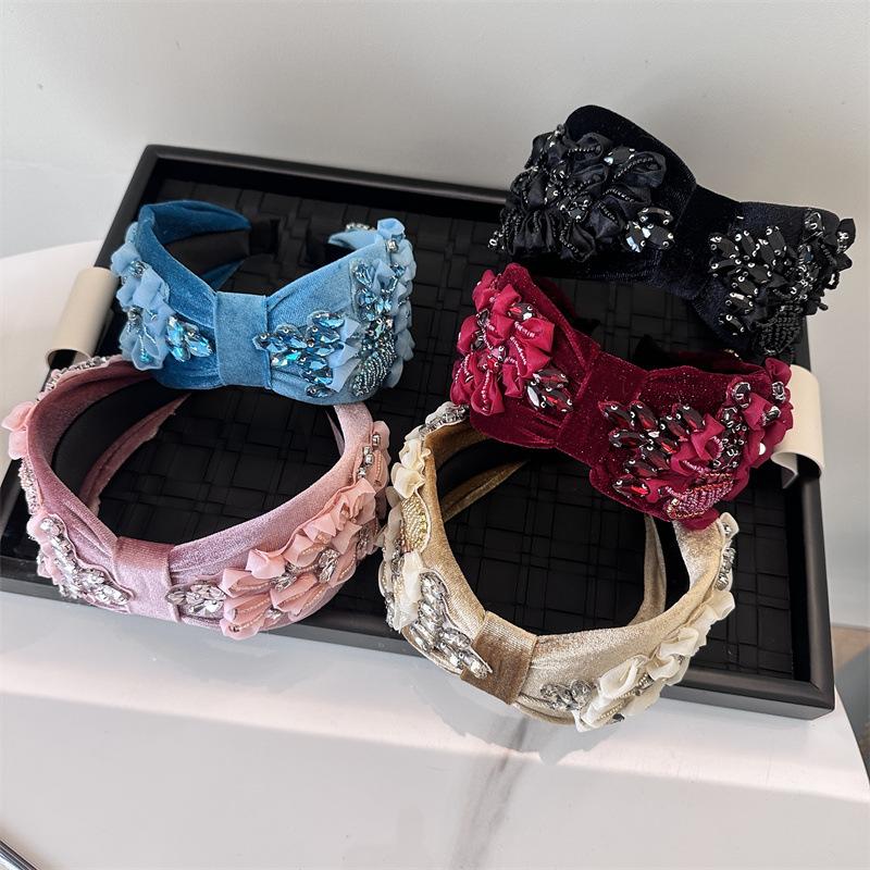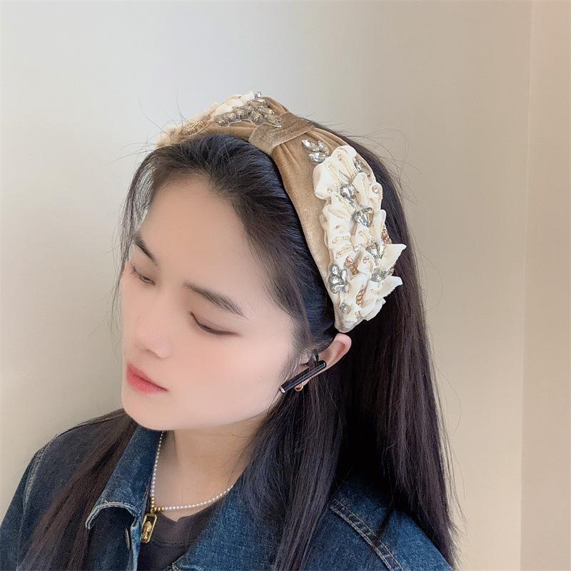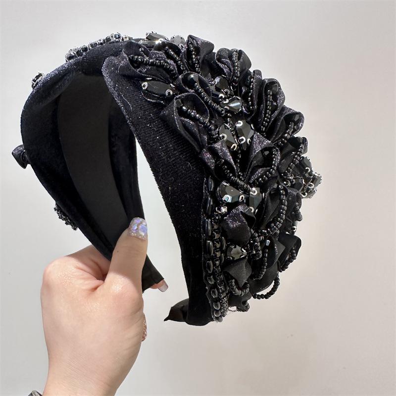Aro para el pelo estilo barroco coreano de nueva industria pesada, diseño de nicho, con encaje retro, flores y diamantes de imitación, preciosos accesorios para el cabello con forma de tarjeta.