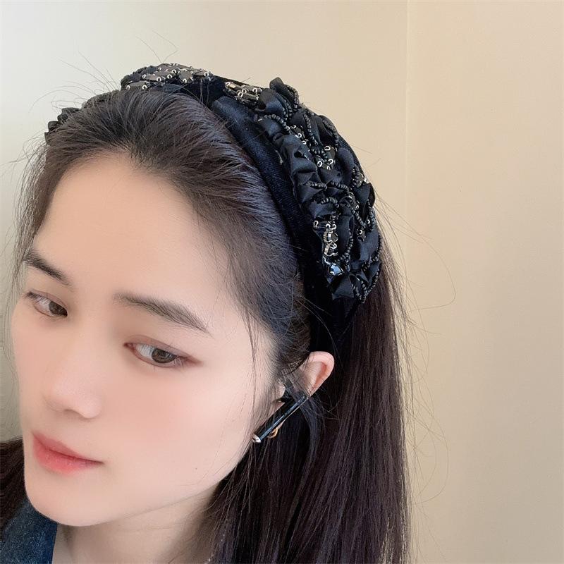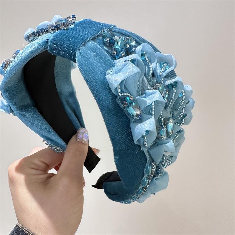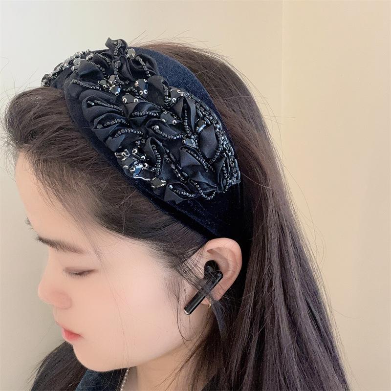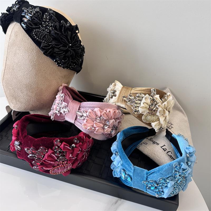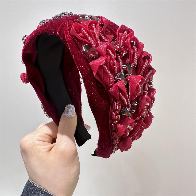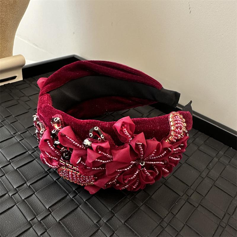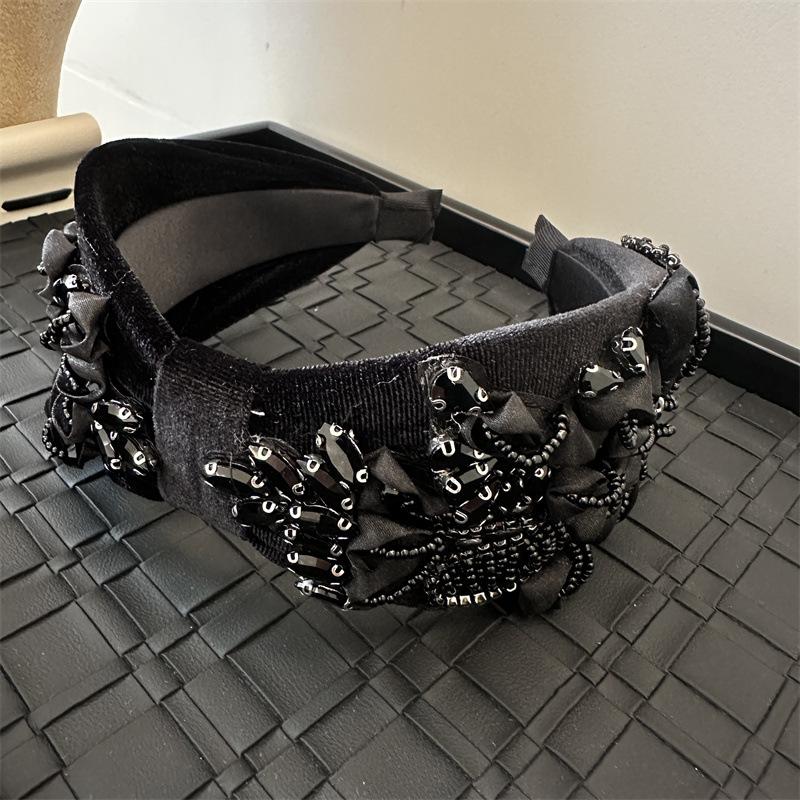 Aro para el pelo estilo barroco coreano de nueva industria pesada, diseño de nicho, con encaje retro, flores y diamantes de imitación, preciosos accesorios para el cabello con forma de tarjeta.