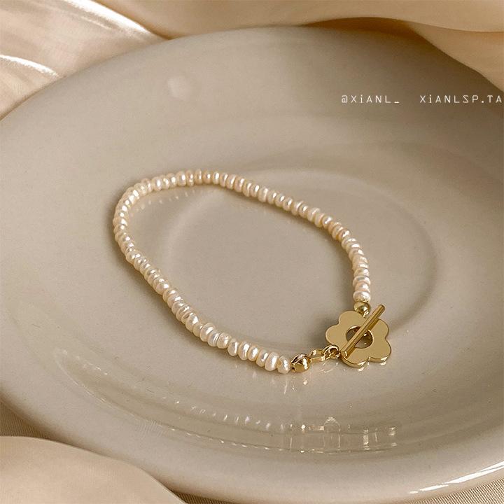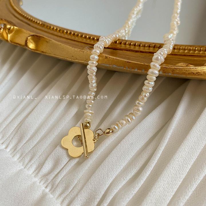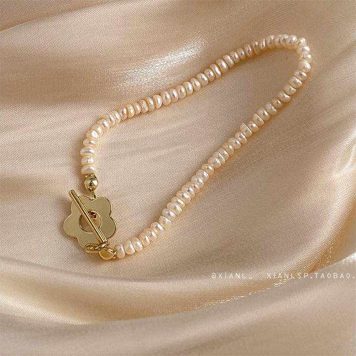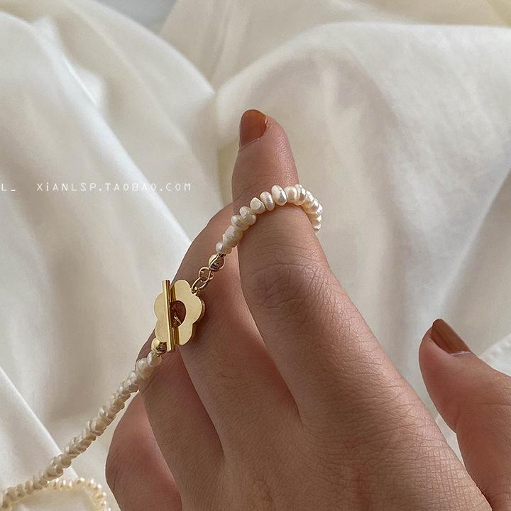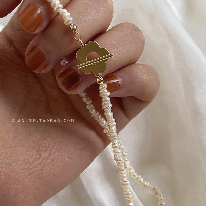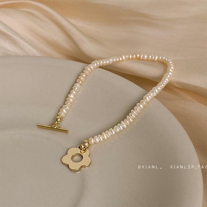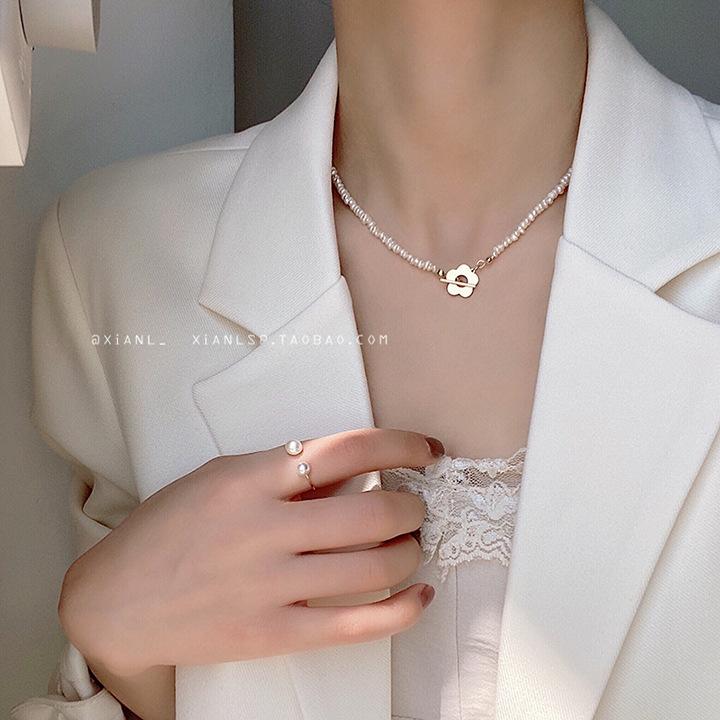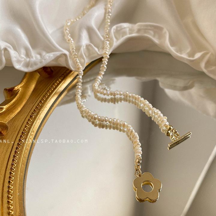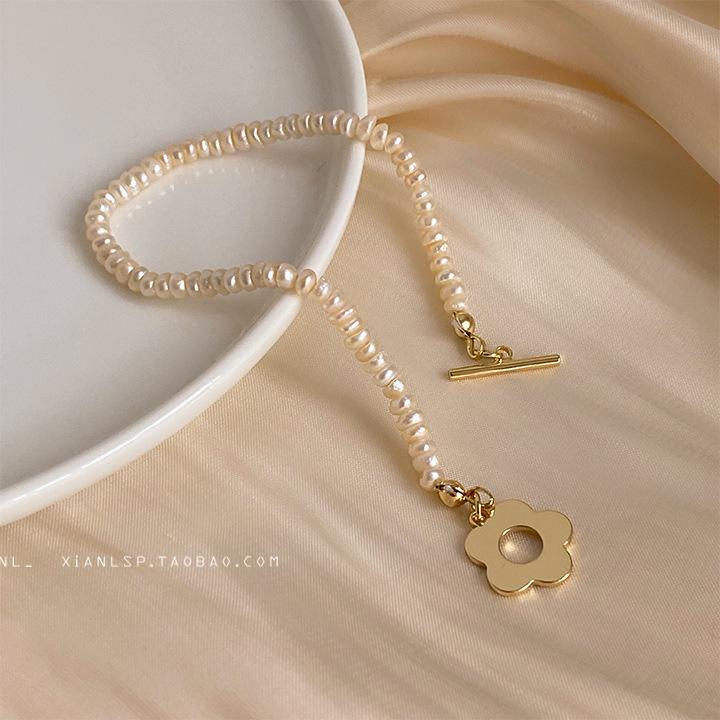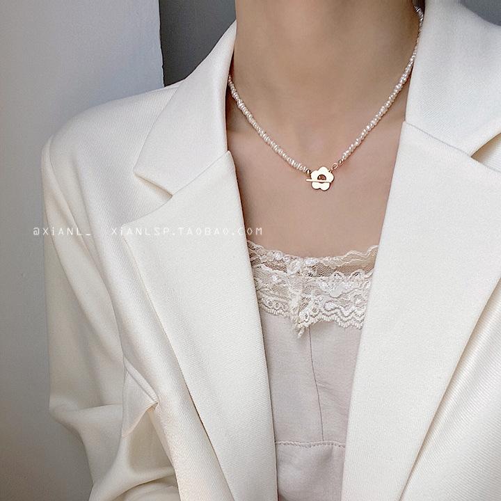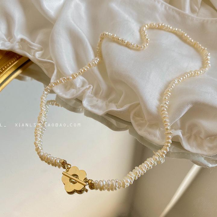 Collar de perlas pequeñas de agua dulce alienígena para mujer, estilo coreano, elegante cadena de clavícula con pétalos, joyería para el cuello con flores de margarita.