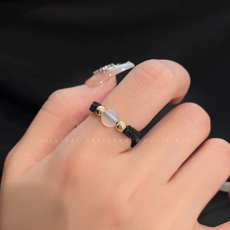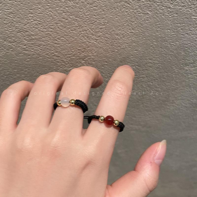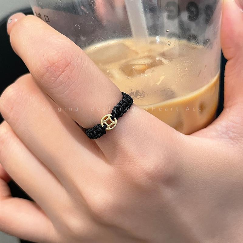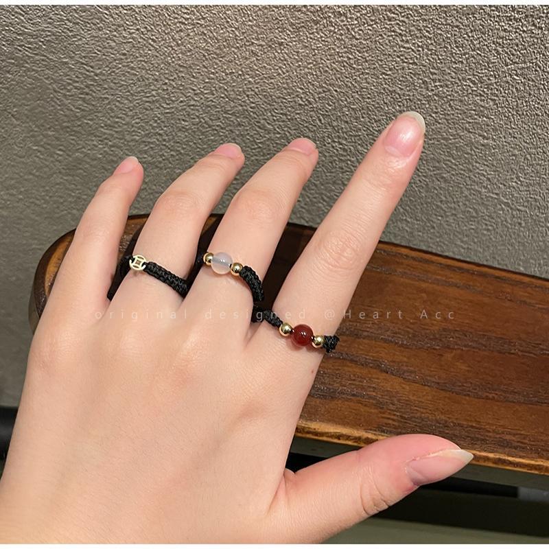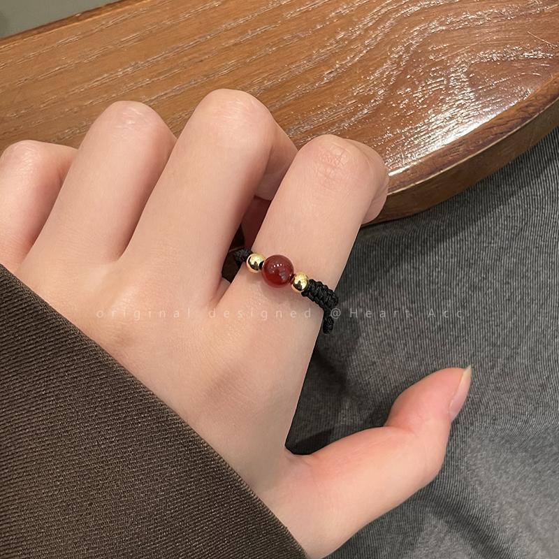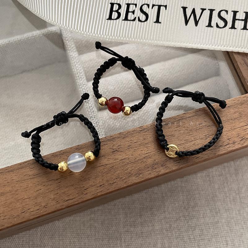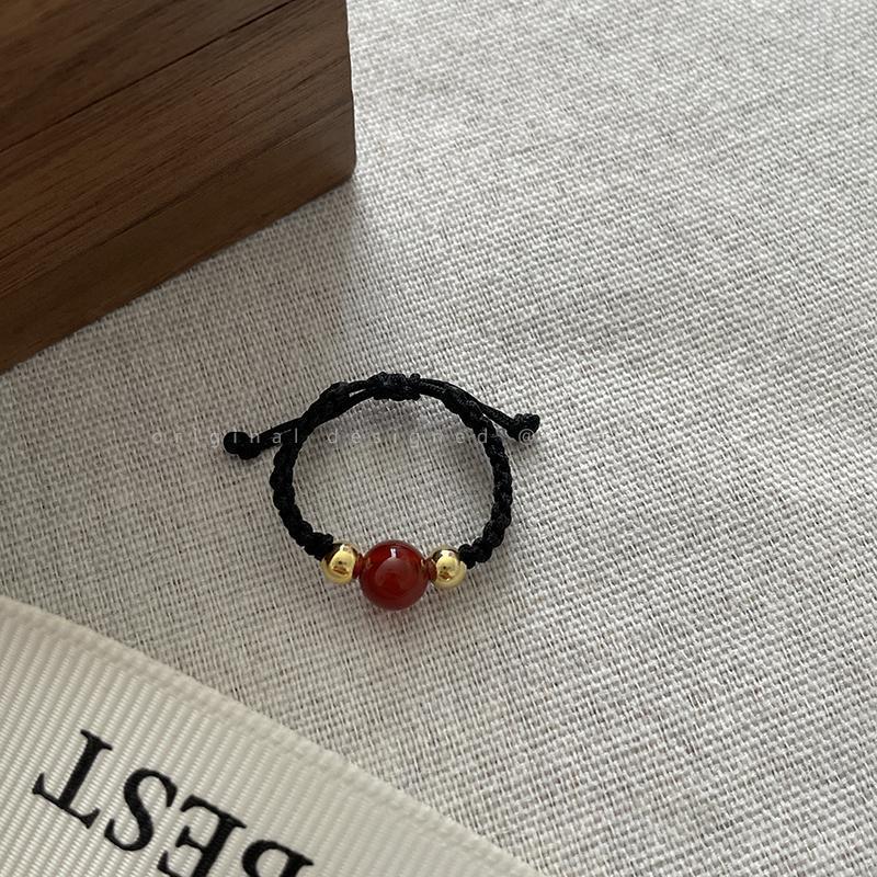Red agate woven ring, Copper coin woven ring [1 pack]]