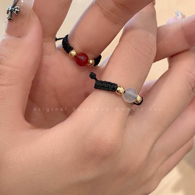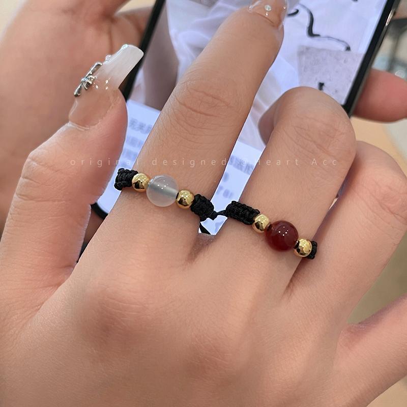 Anillo Trenzado de Acacia Frijol Rojo Redma Moneda de Cobre Rojo Anillo de Cola para Pareja Mejor Amiga Diseño Nicho Moderno Ins para Mujer