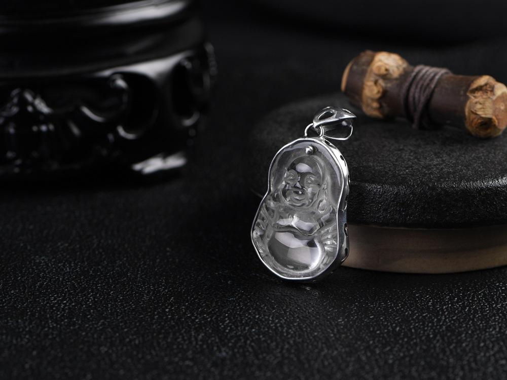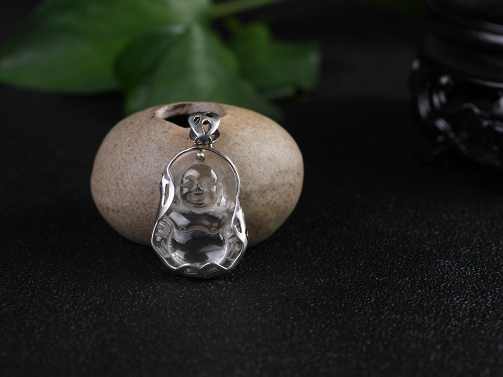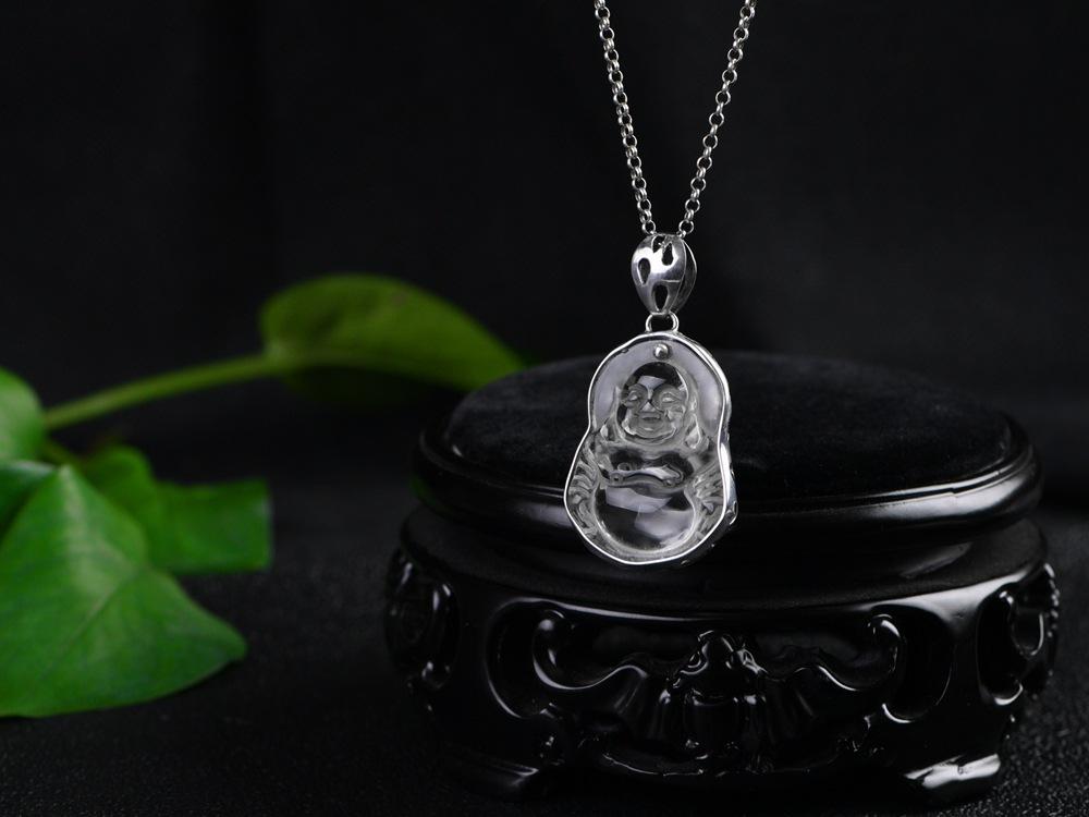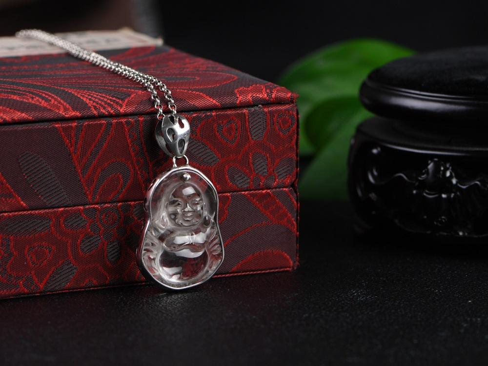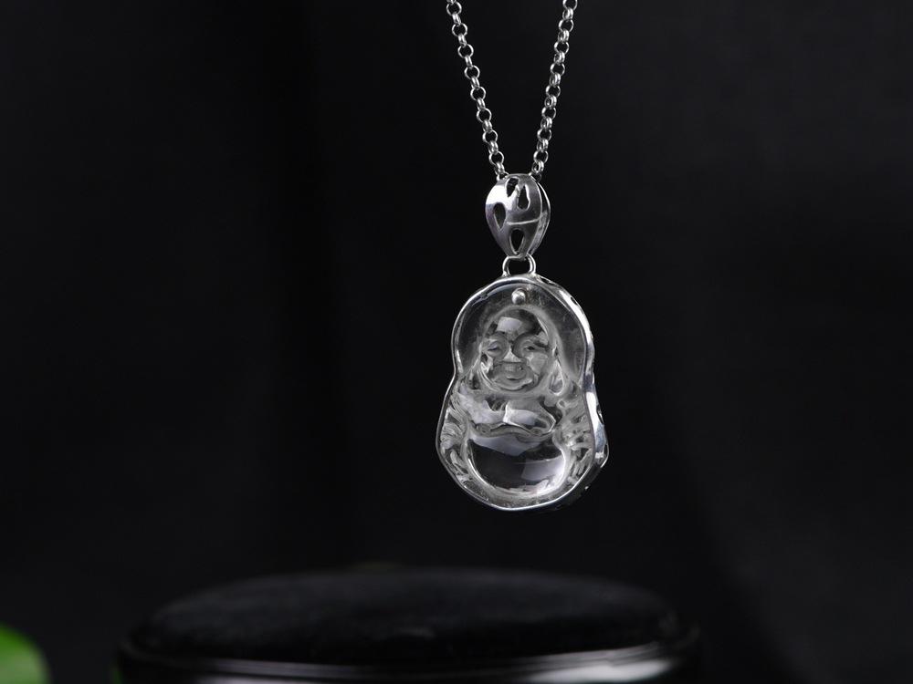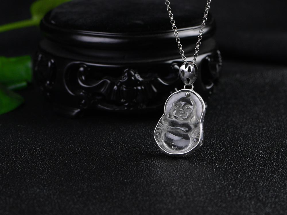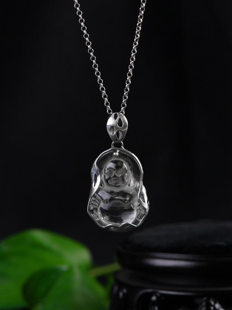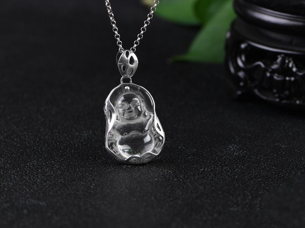 Collar de Ciervo Dorado Plata S925 Joyería de Plata Tailandesa Vintage Venta al por Mayor Colgante de Maitreya de Cristal Blanco Colgante de Buda para Mujer