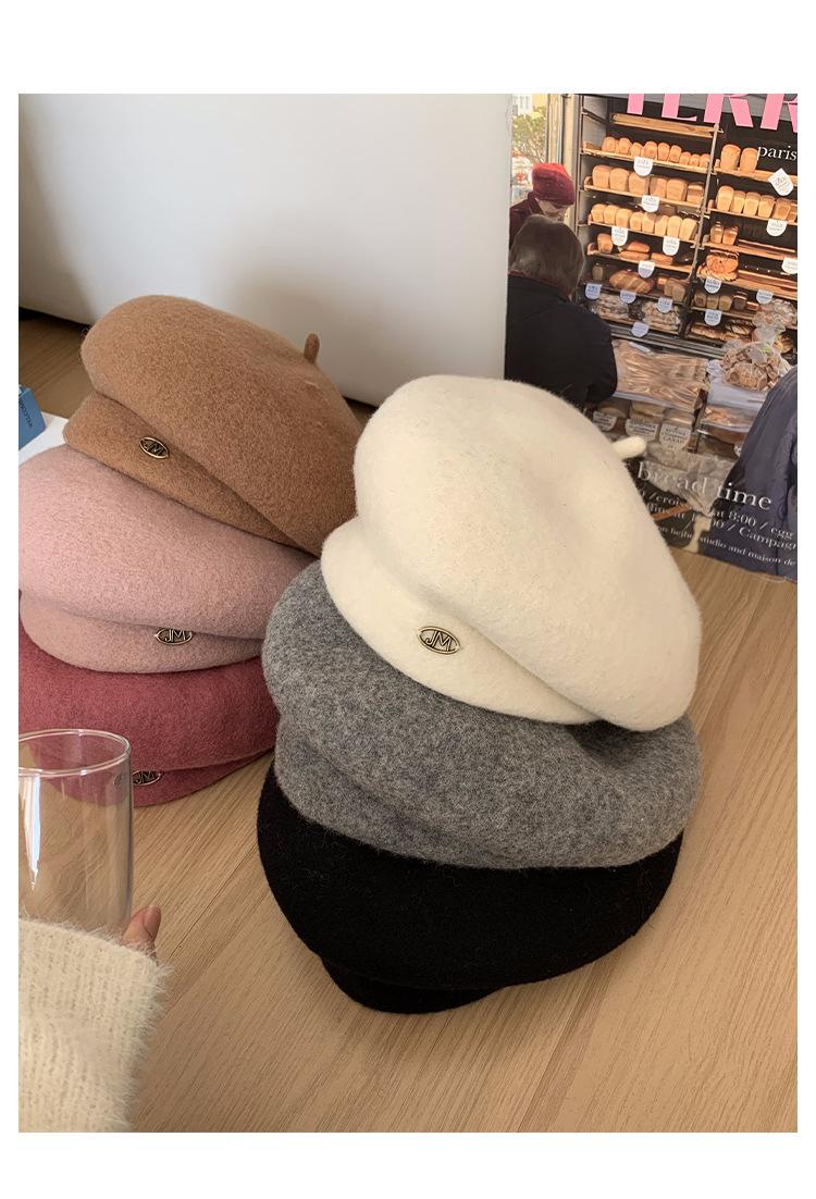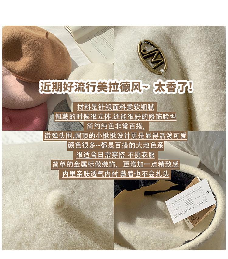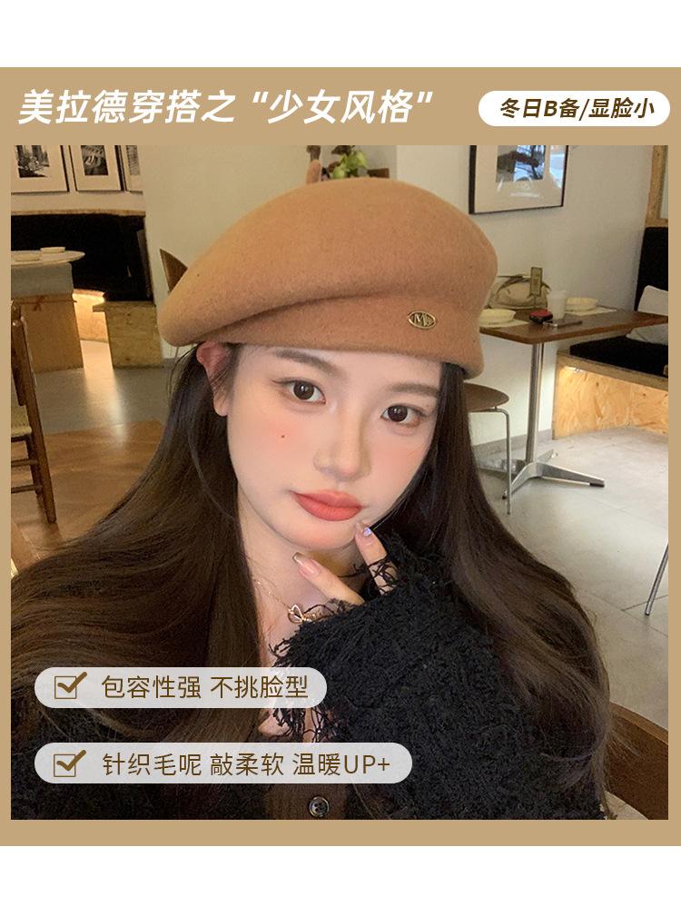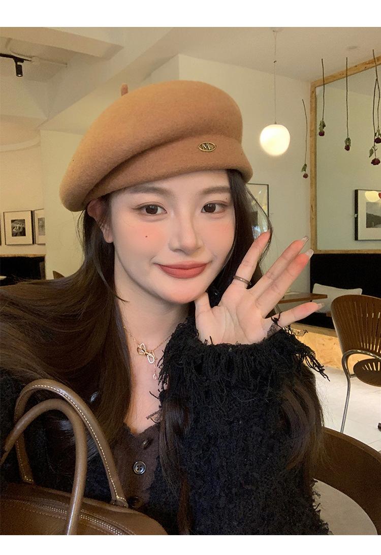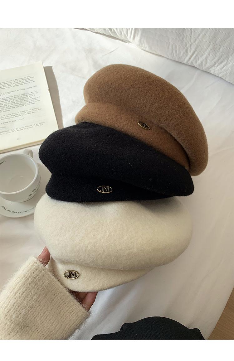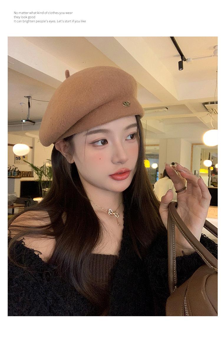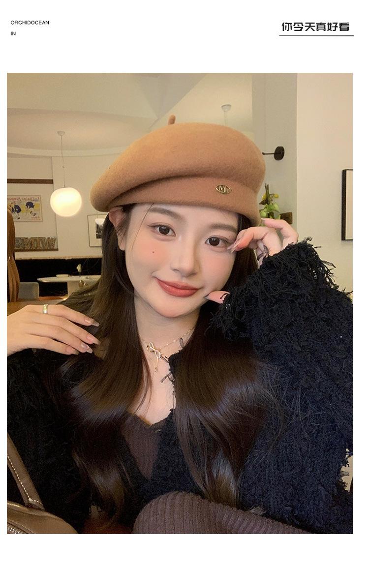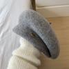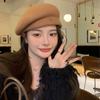 Boina de Lana de Alta Calidad para Mujer Otoño e Invierno 2023 Nueva Circunferencia de Cabeza Grande Versátil Color Puro Sombrero de Pequeño Pintor que Favorece el Rostro