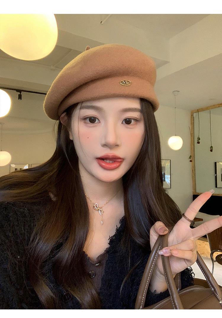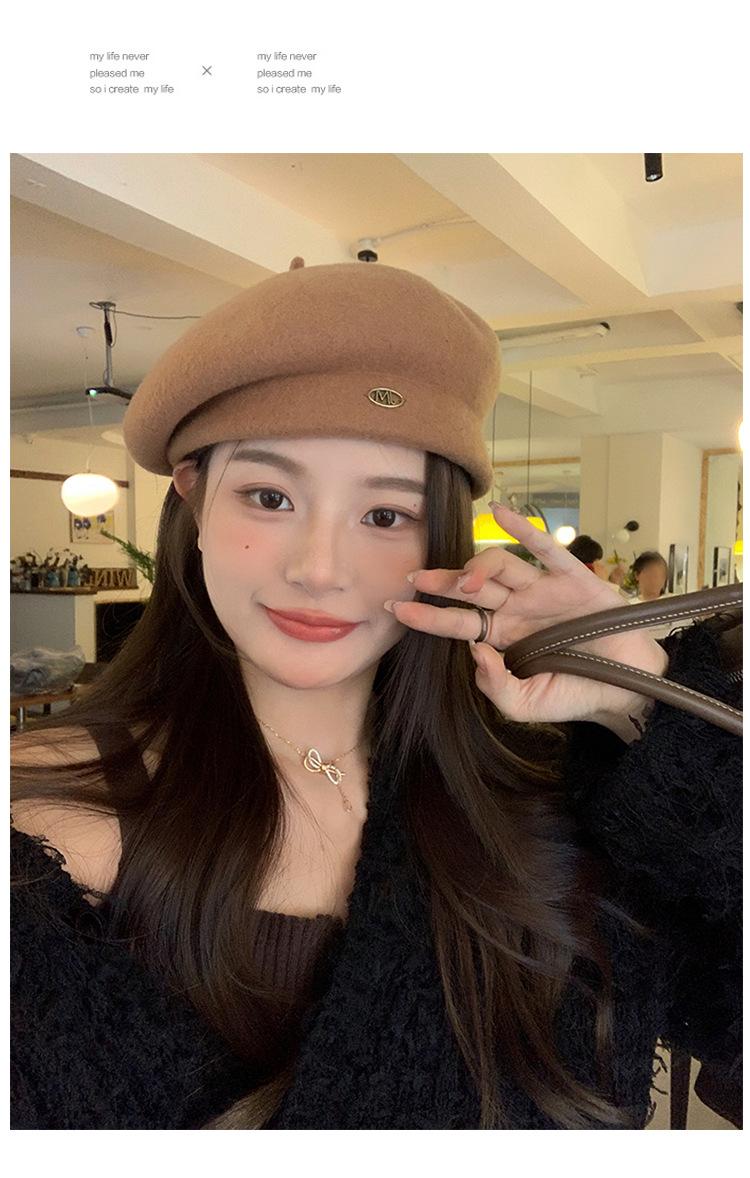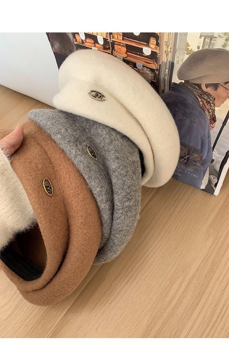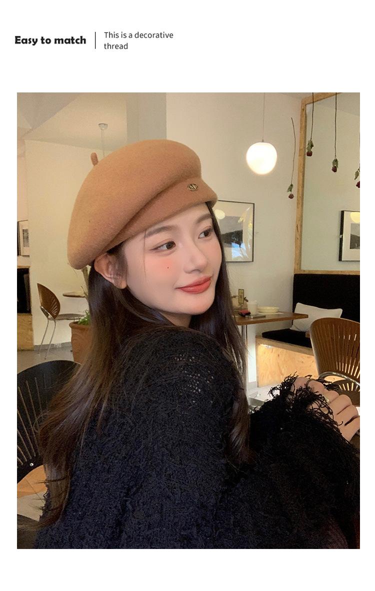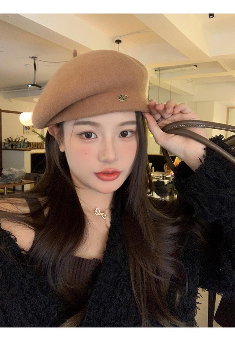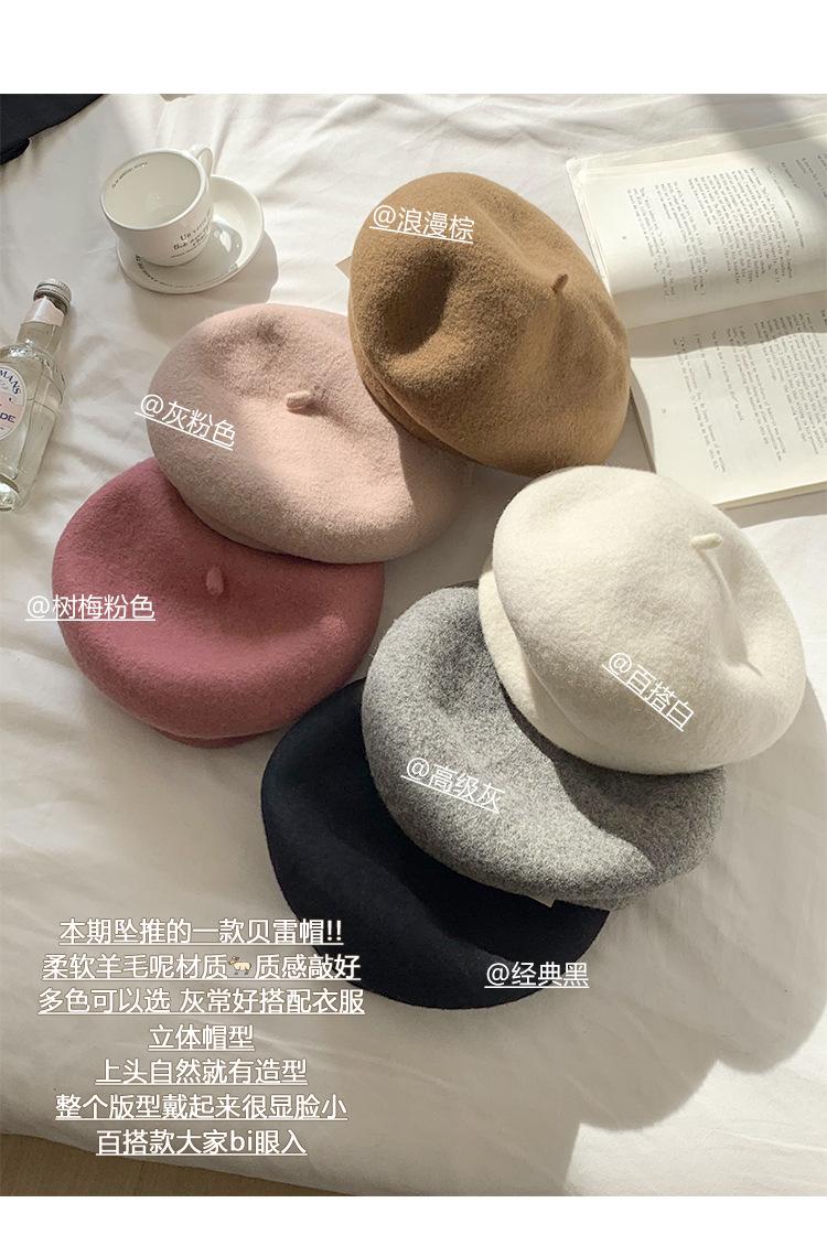 Boina de Lana de Alta Calidad para Mujer Otoño e Invierno 2023 Nueva Circunferencia de Cabeza Grande Versátil Color Puro Sombrero de Pequeño Pintor que Favorece el Rostro