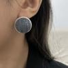 Aretes de botón geométricos redondos de lana tejida nuevos de otoño e invierno con aguja de plata, aretes sencillos de moda de lujo ligero de alta gama para mujer