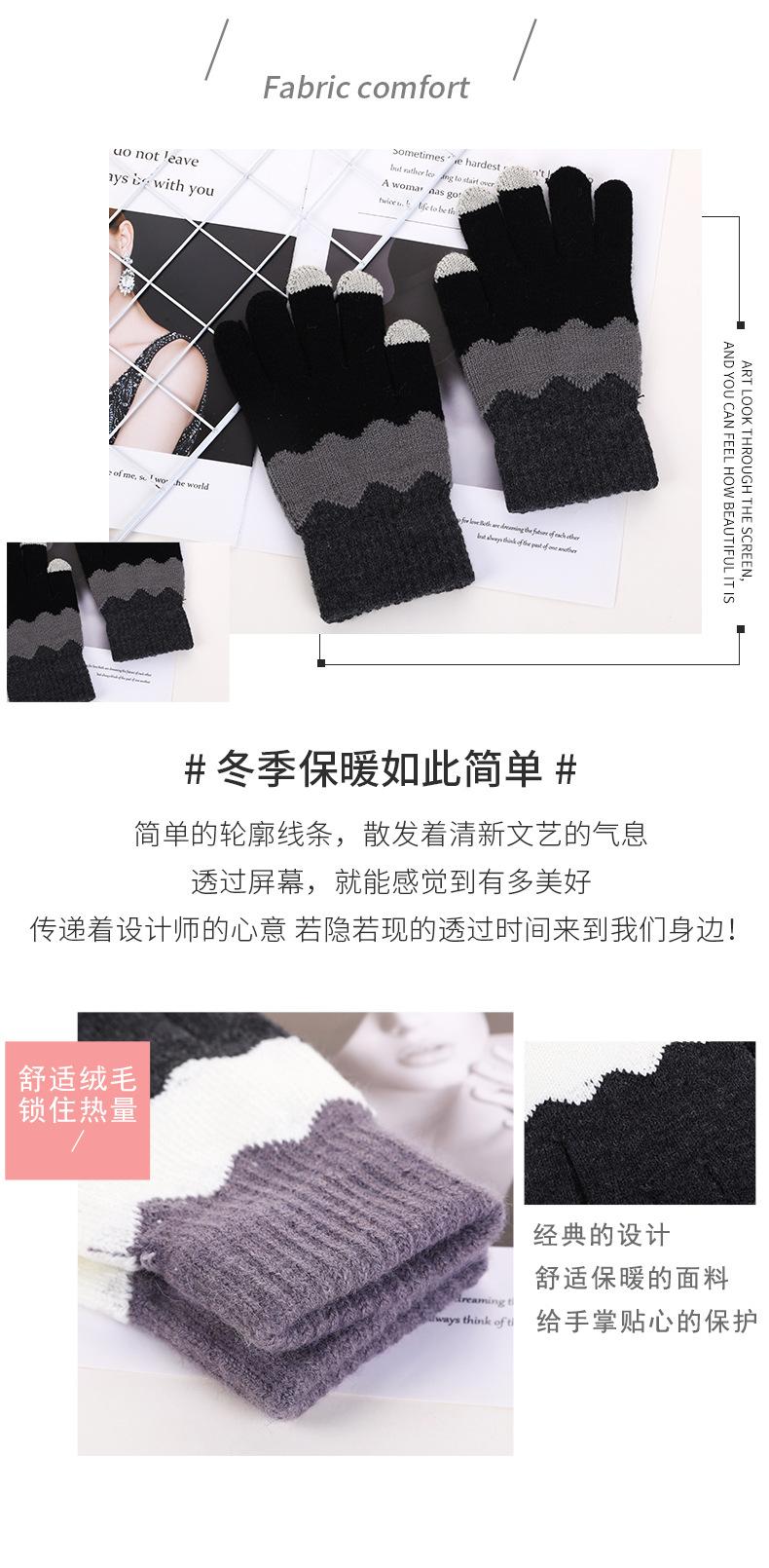 Guantes de ciclismo cálidos de lana de cinco dedos con diseño de onda táctil de estilo coreano para mujer, de invierno, vintage, combinables, para estudiantes