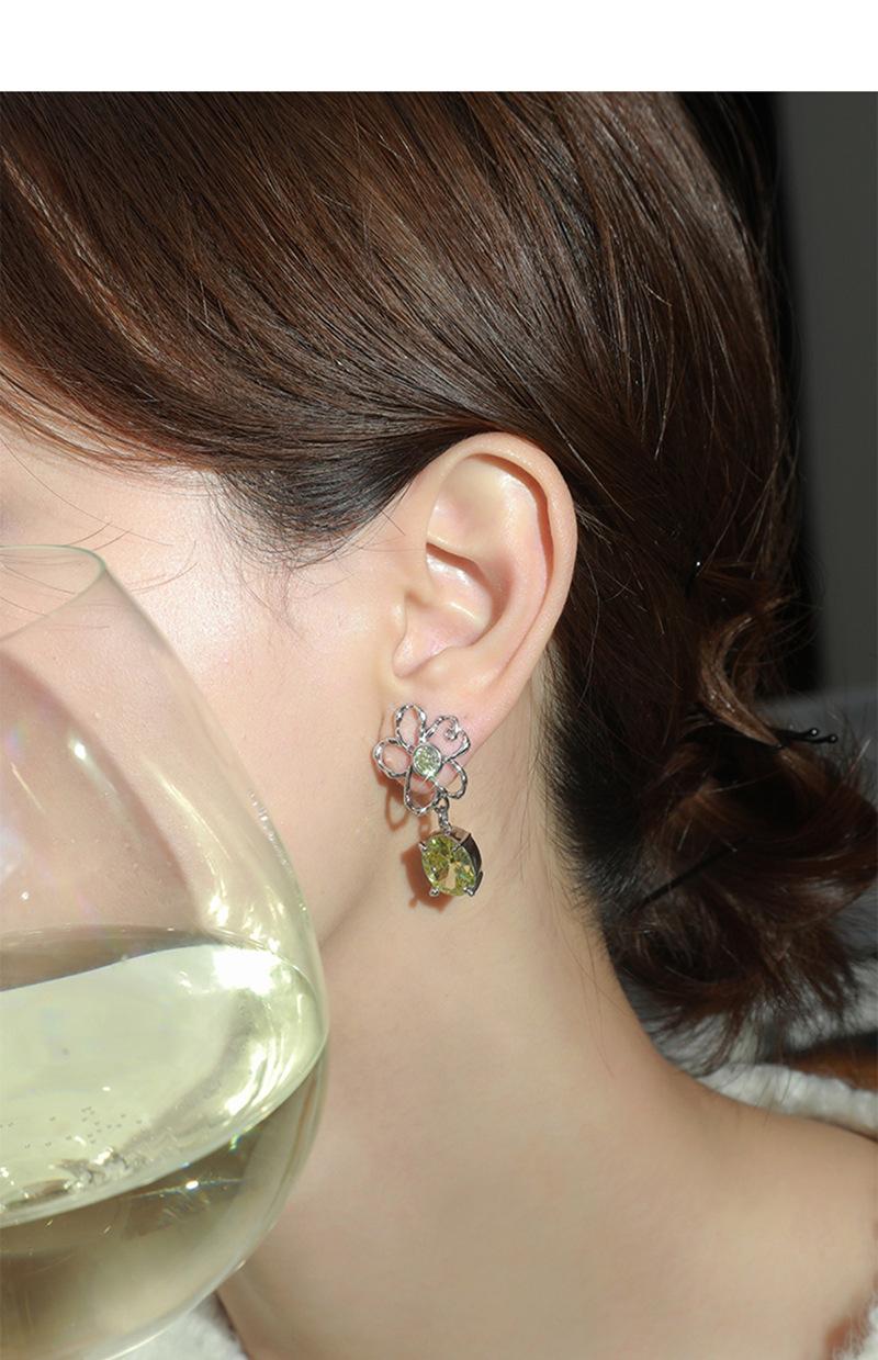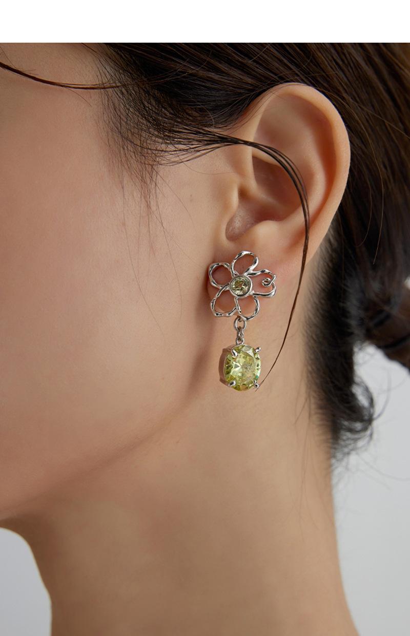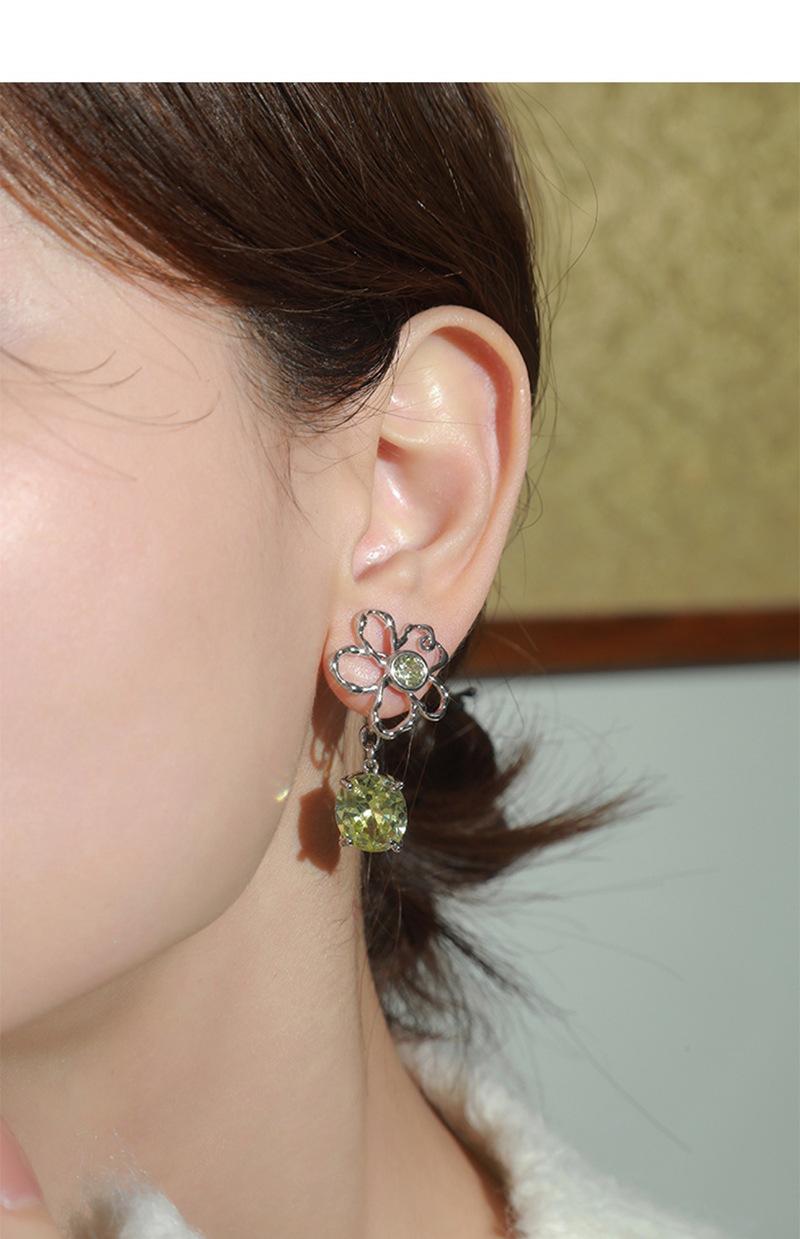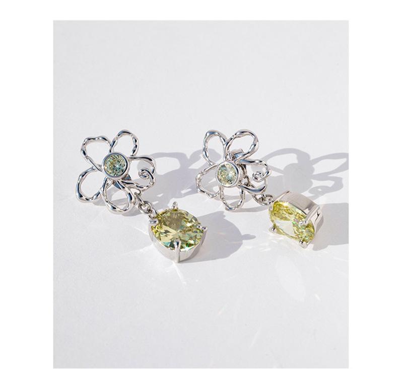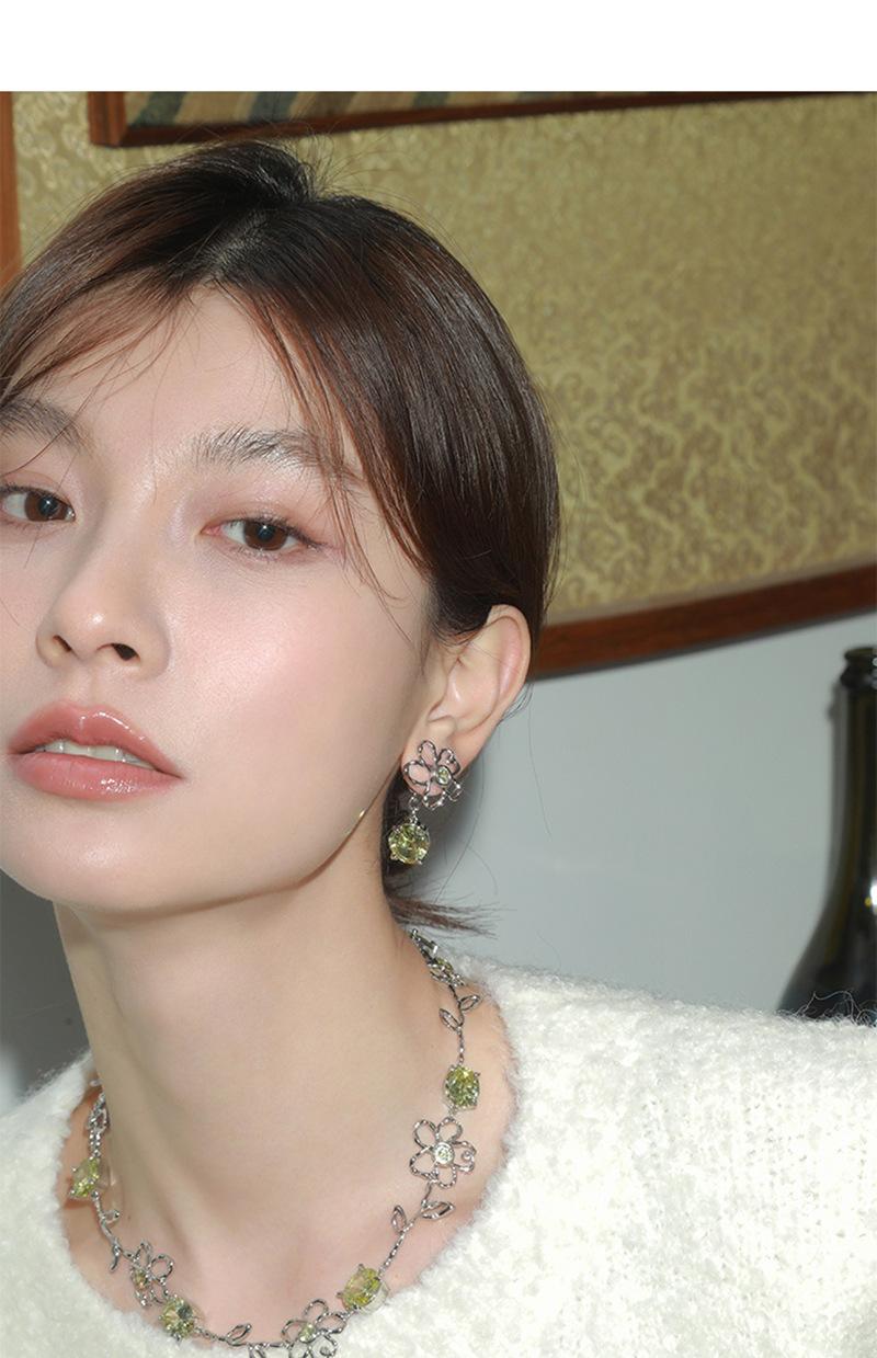 Pendientes de flor de circonita verde oliva para mujer, ligeros, de lujo, con diseño de nicho y diamantes brillantes, ideales para el verano.