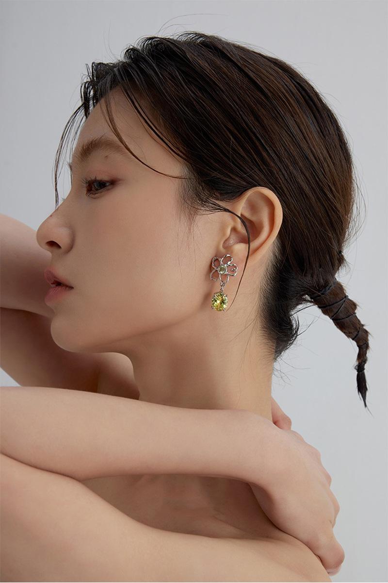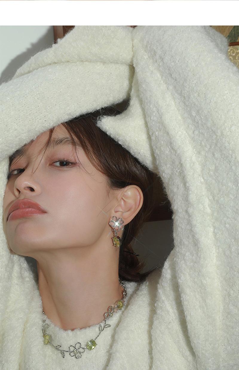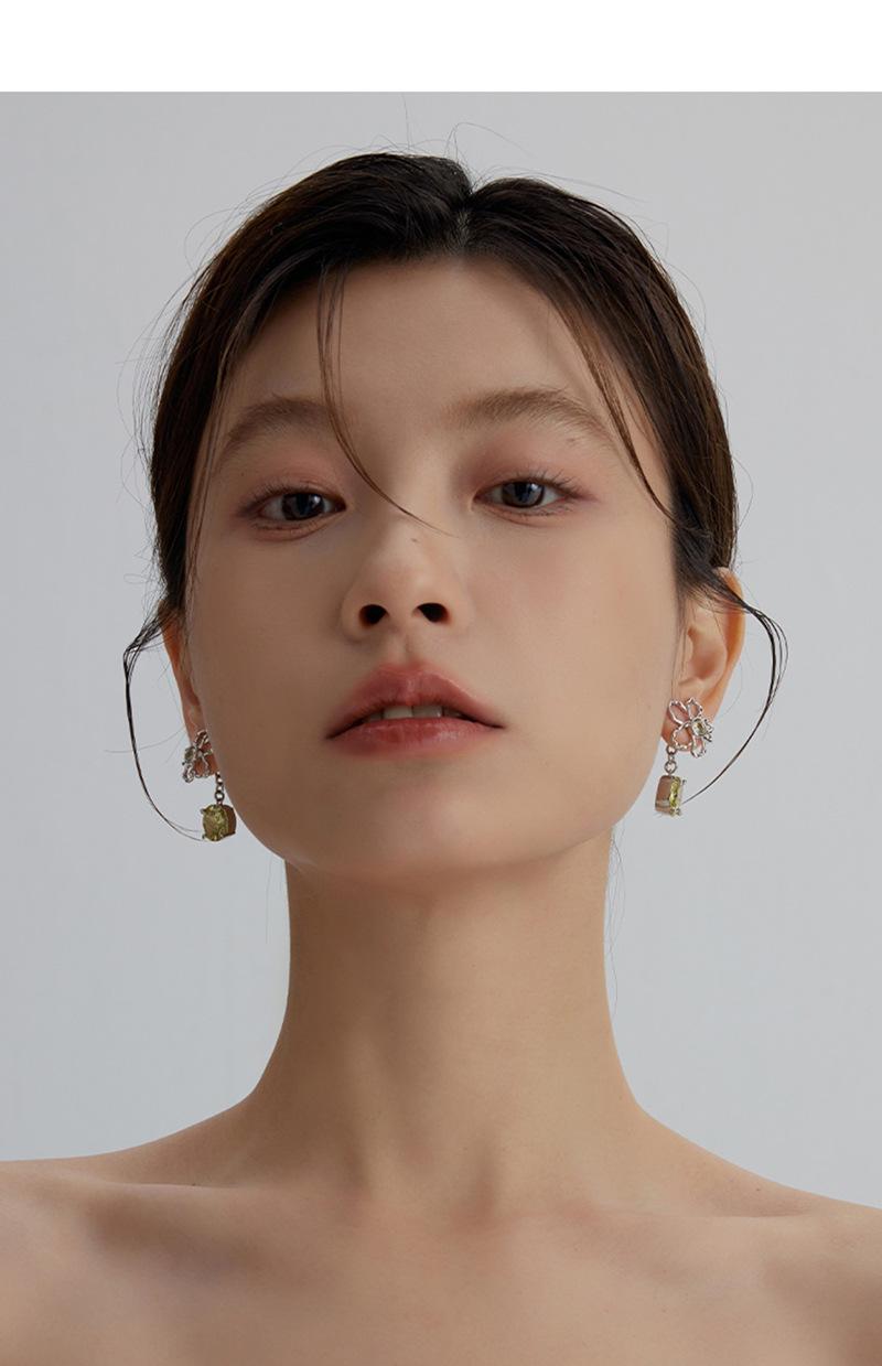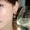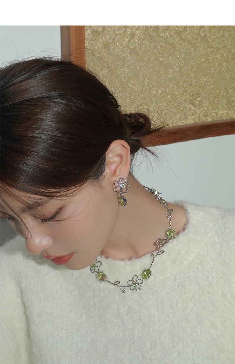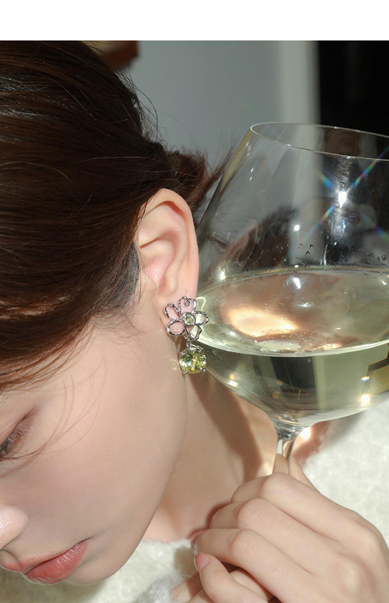 Pendientes de flor de circonita verde oliva para mujer, ligeros, de lujo, con diseño de nicho y diamantes brillantes, ideales para el verano.
