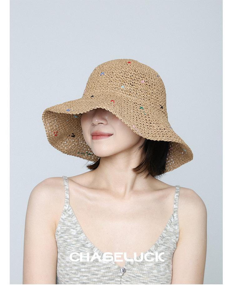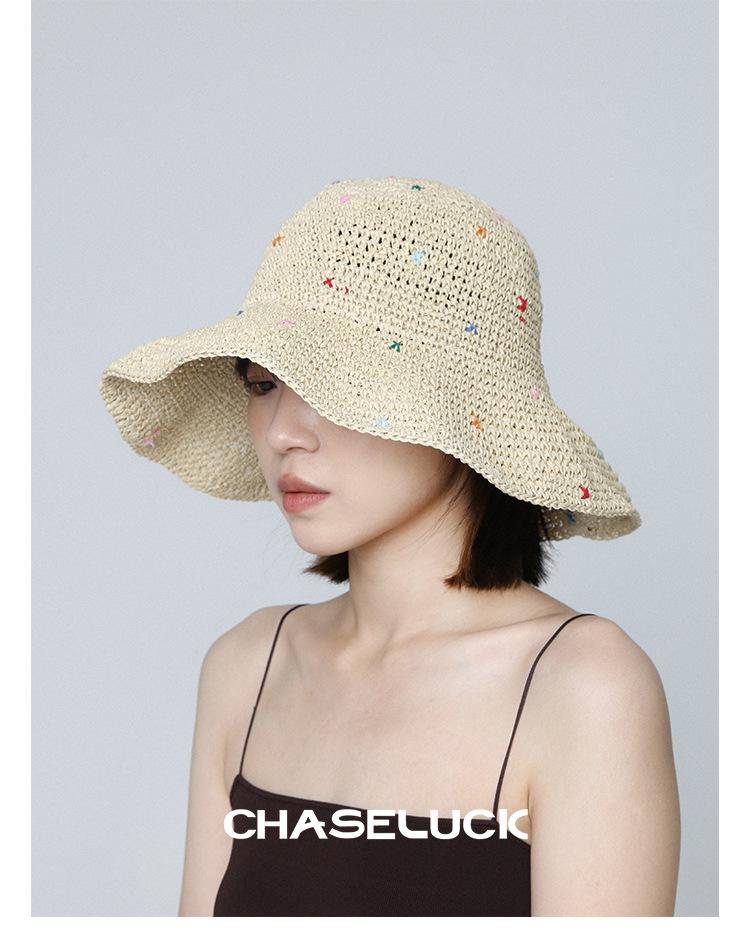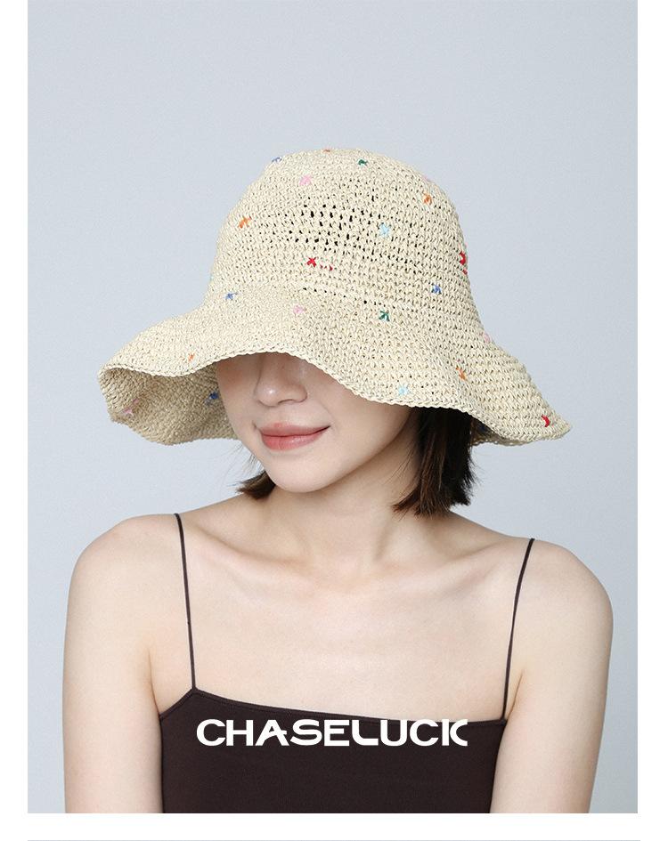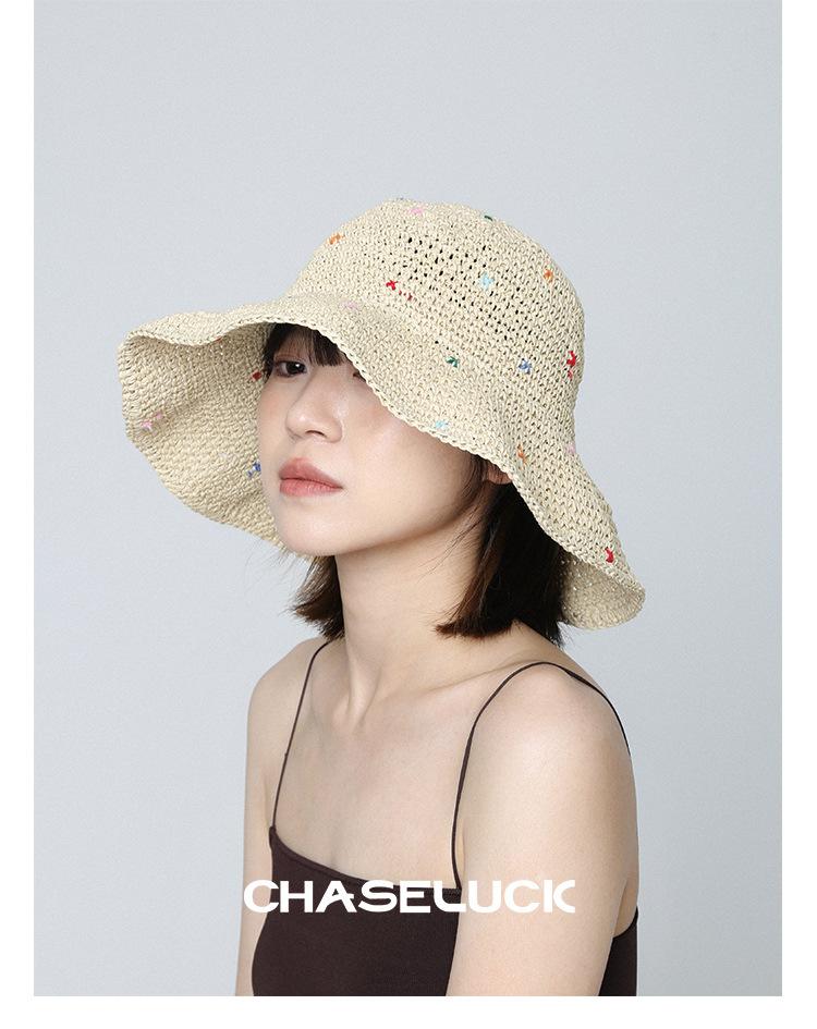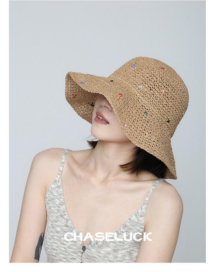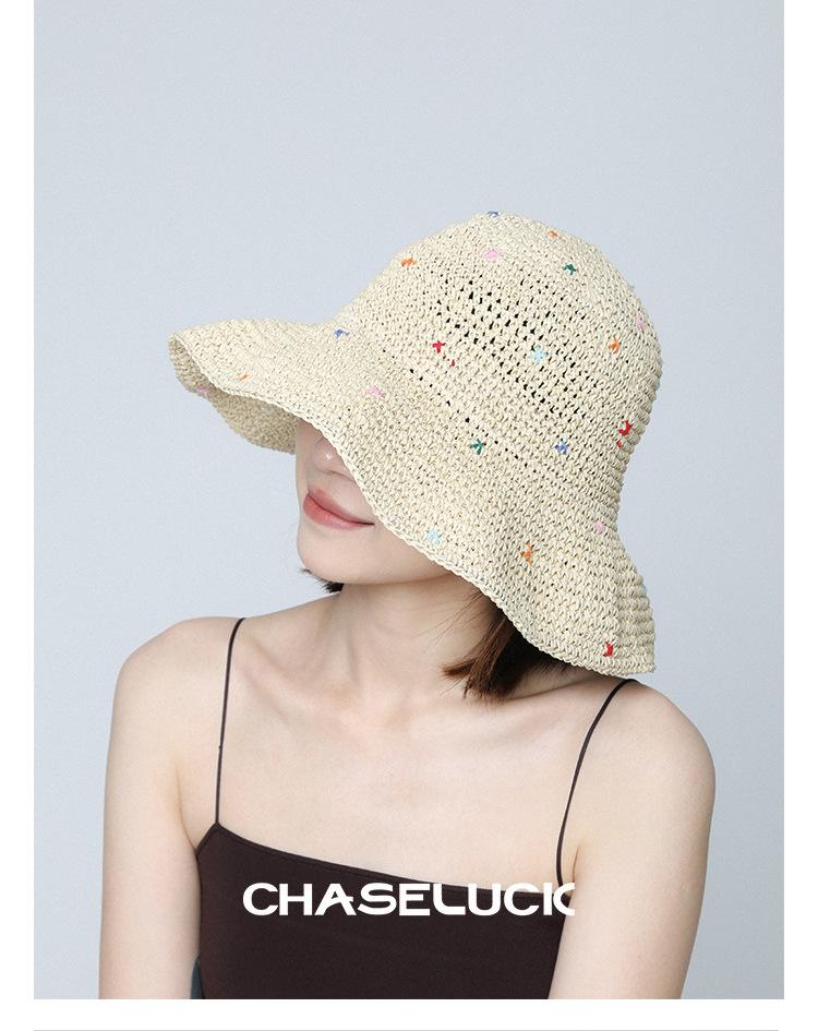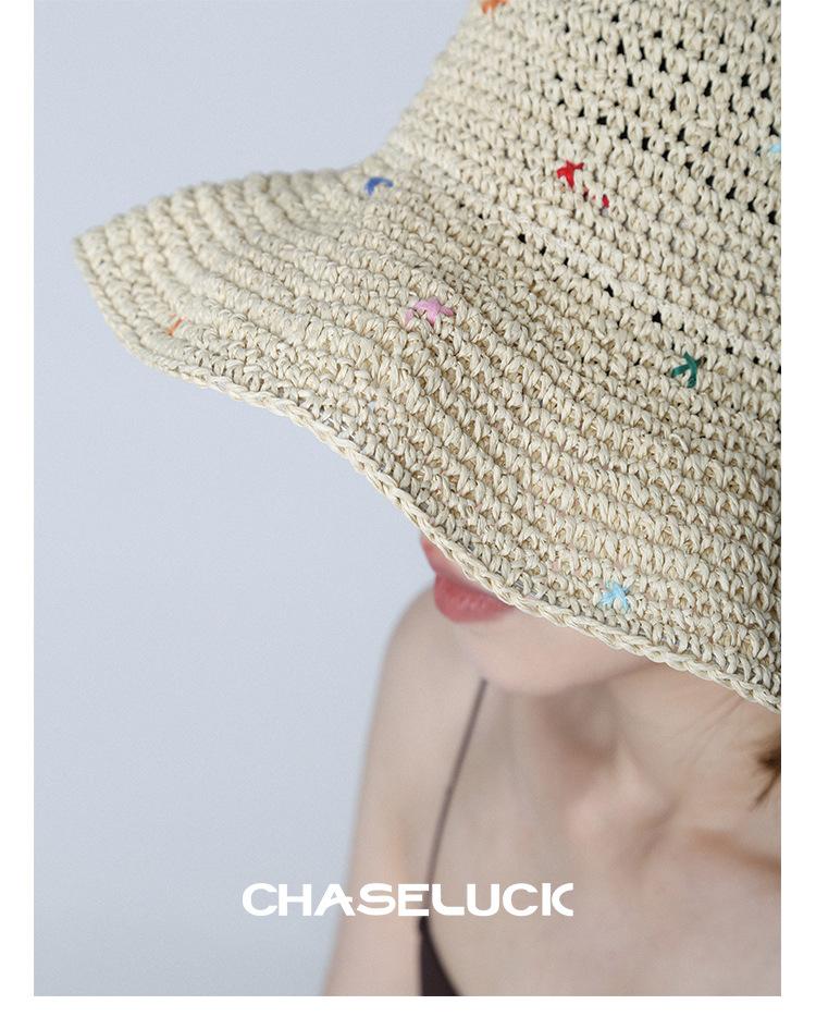 Sombrero de Paja para Mujer Vacaciones Protección Solar Sombrero de Sol Verano Orilla del Mar Sombrero de Pescador Tejido Sombrero de Sol Paja de Rafia Hecho a Mano Sombrero de Paja