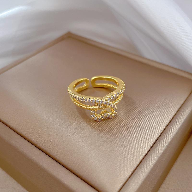 [chapado en oro real] Corea del Sur simple exquisito diamante amor luz lujo nicho moda temperamento personalidad anillo protección ambiental