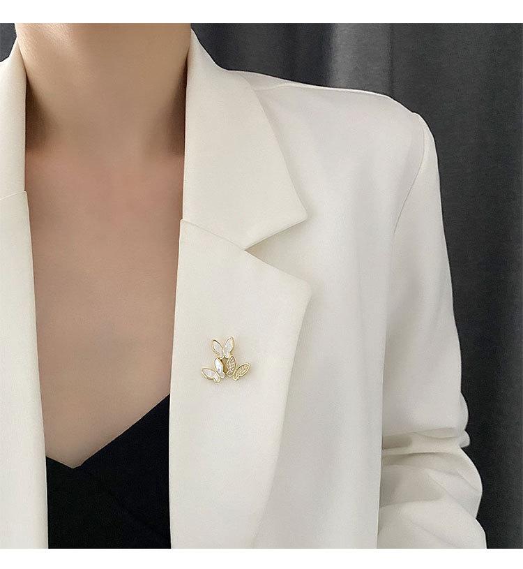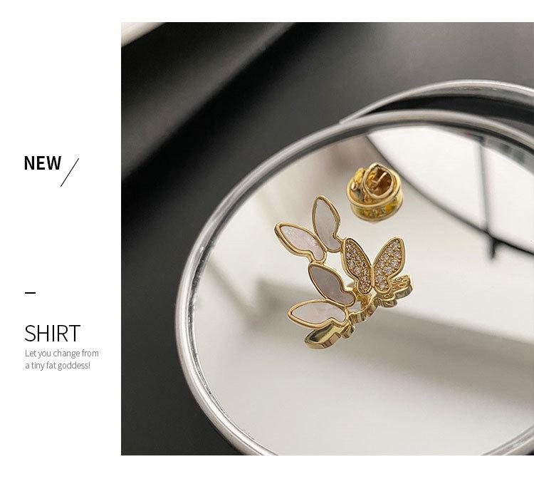 Broche retro de moda con personalidad de concha de mariposa y circonita, ramillete versátil, hebilla para bufanda de seda anti-exposición, accesorios para ropa