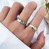 Europa y Estados Unidos patrón de martilleo transfronterizo anillo medio hueco juego de 2 piezas personalidad simple metal gramo apertura ajustable anillo de pareja