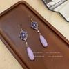 Pendientes largos con colgante de gota de agua y flor morada, diseño de nicho con gancho para la oreja, accesorios de alta gama para mujer.