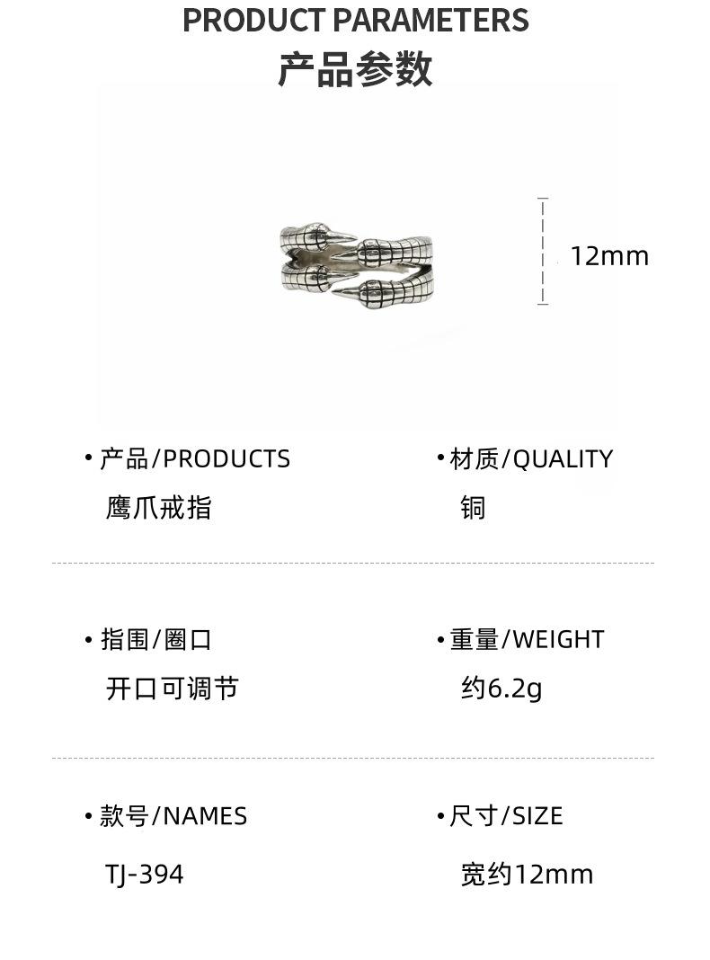 Anillo para Hombre de Plata Tailandesa S925 Anillo de Marca de Moda Hip-hop Garra de Águila Dominante Individual Retro Personalizado Anillo Abierto para Hombres