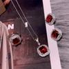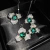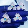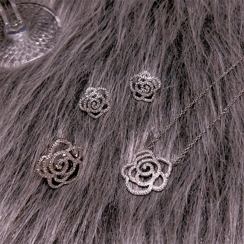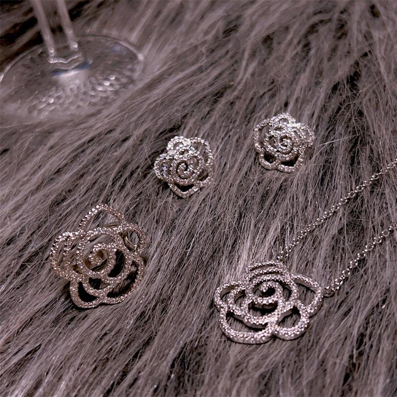 Anillo de tres piezas de flor grande calada con diamantes completos, aretes tipo stud, collar, rosa, dulce, temperamento elegante, combina con todo, estilo sin colisiones