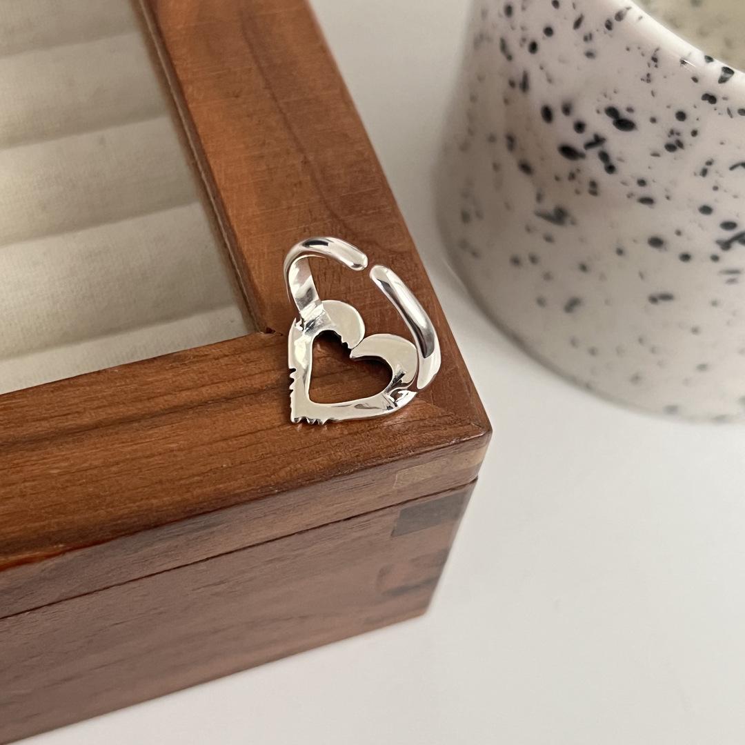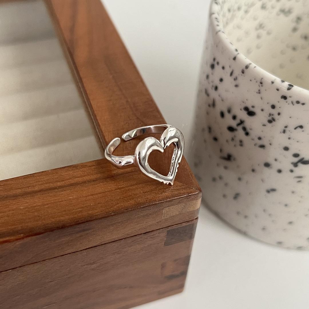 Anillo de corazón de melocotón hueco irregular de estilo frío, moda femenina, simple, de alta gama, con personalidad de temperamento dulce, anillo que combina con todo.