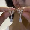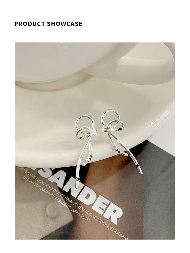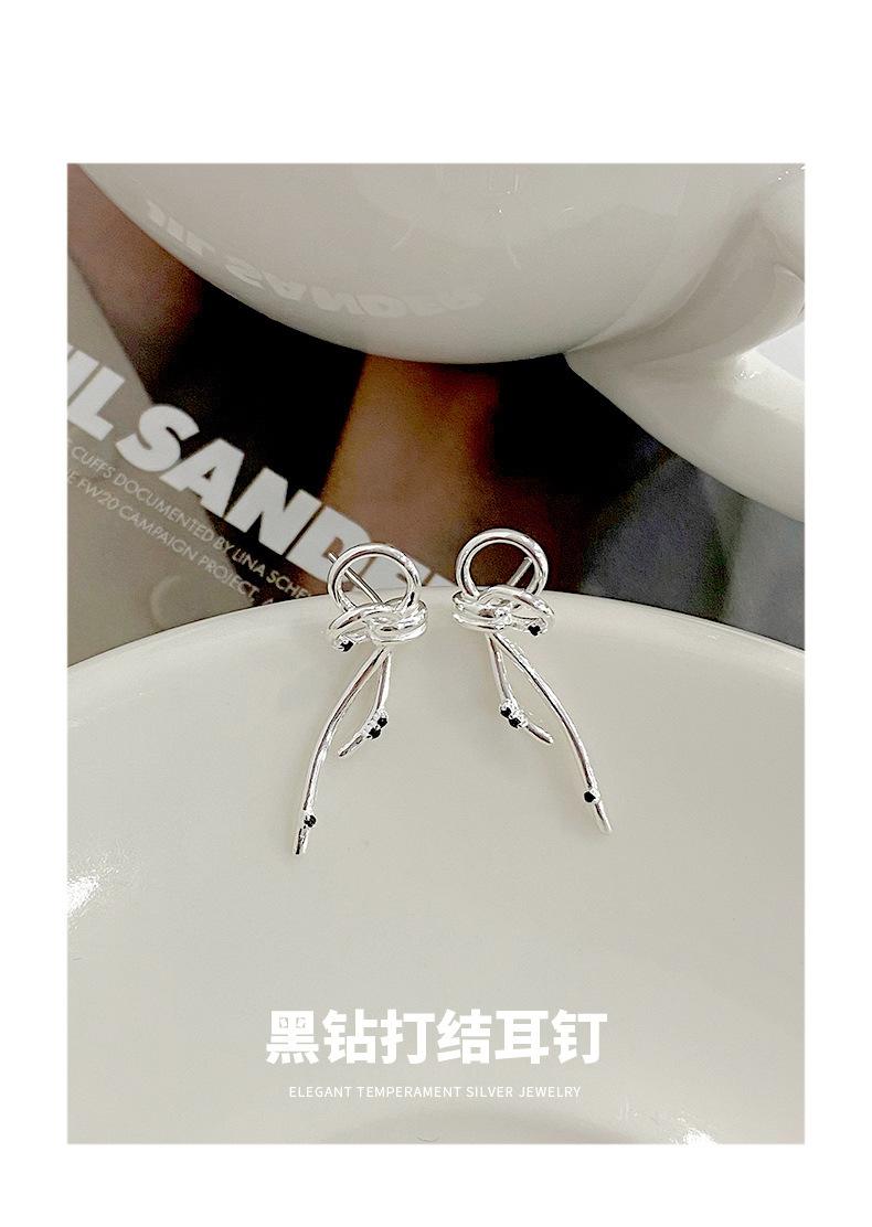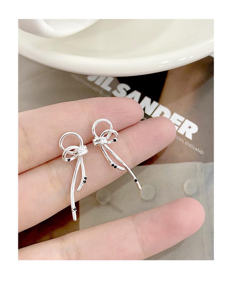 Nuevos Pendientes Pequeños de Lazo de Diamante Negro Diseño de Nicho Sentido Estilo Frío Pendientes Ligeros de Lujo Personalizados Venta al por Mayor