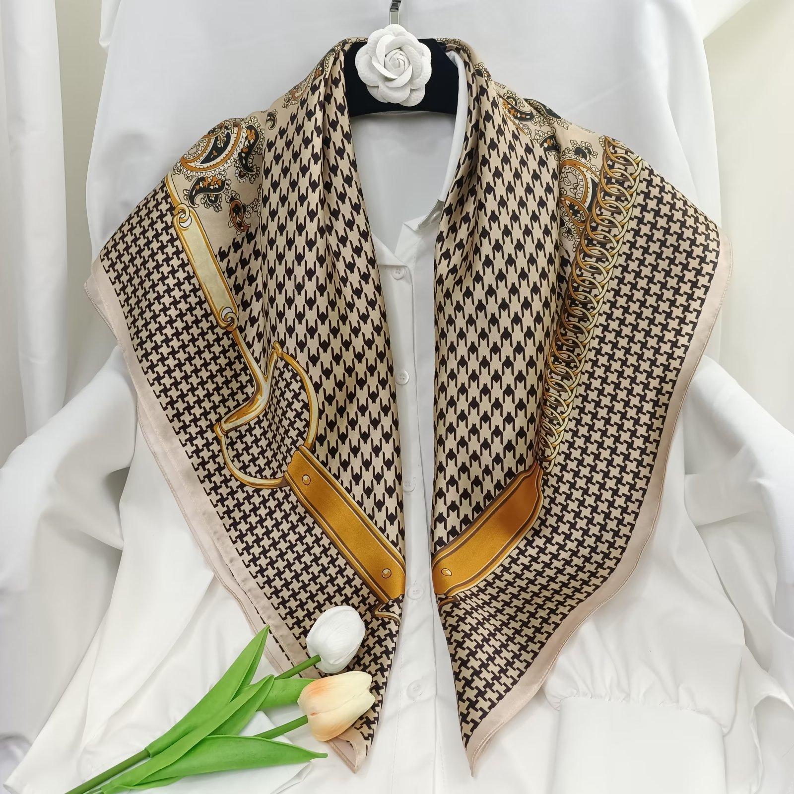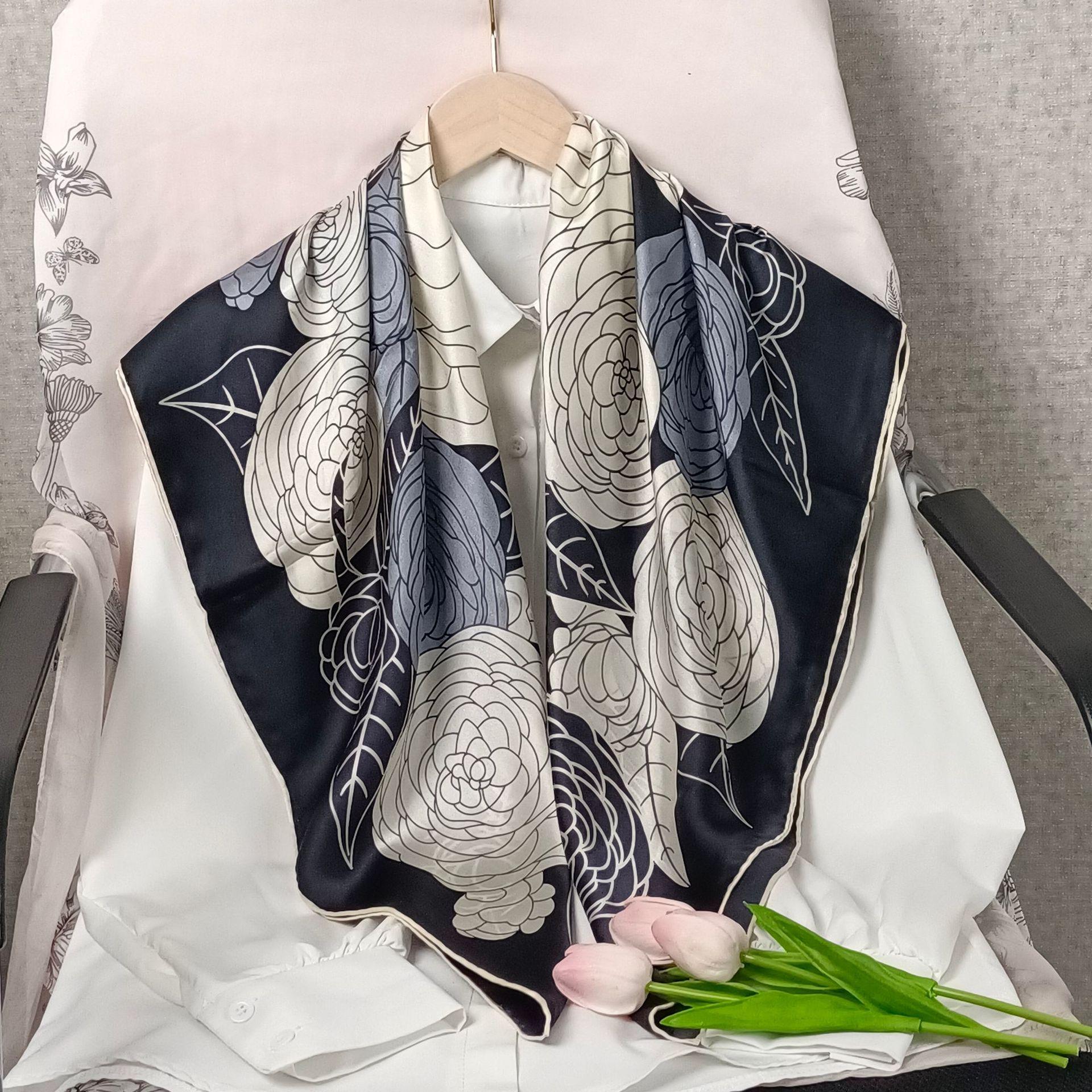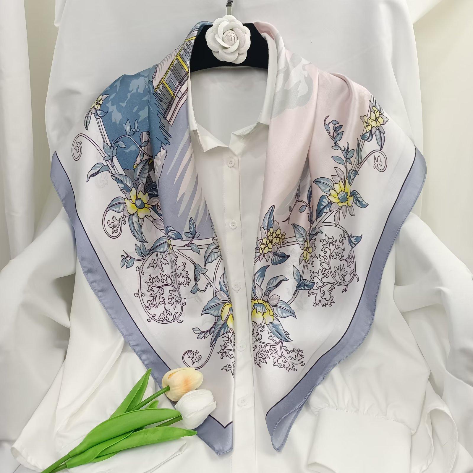 Bufanda de seda fina de primavera y otoño para mujer, bufanda cuadrada grande de seda morera de 90 cm, combinable con todo, chal de seda a juego con camisas.
