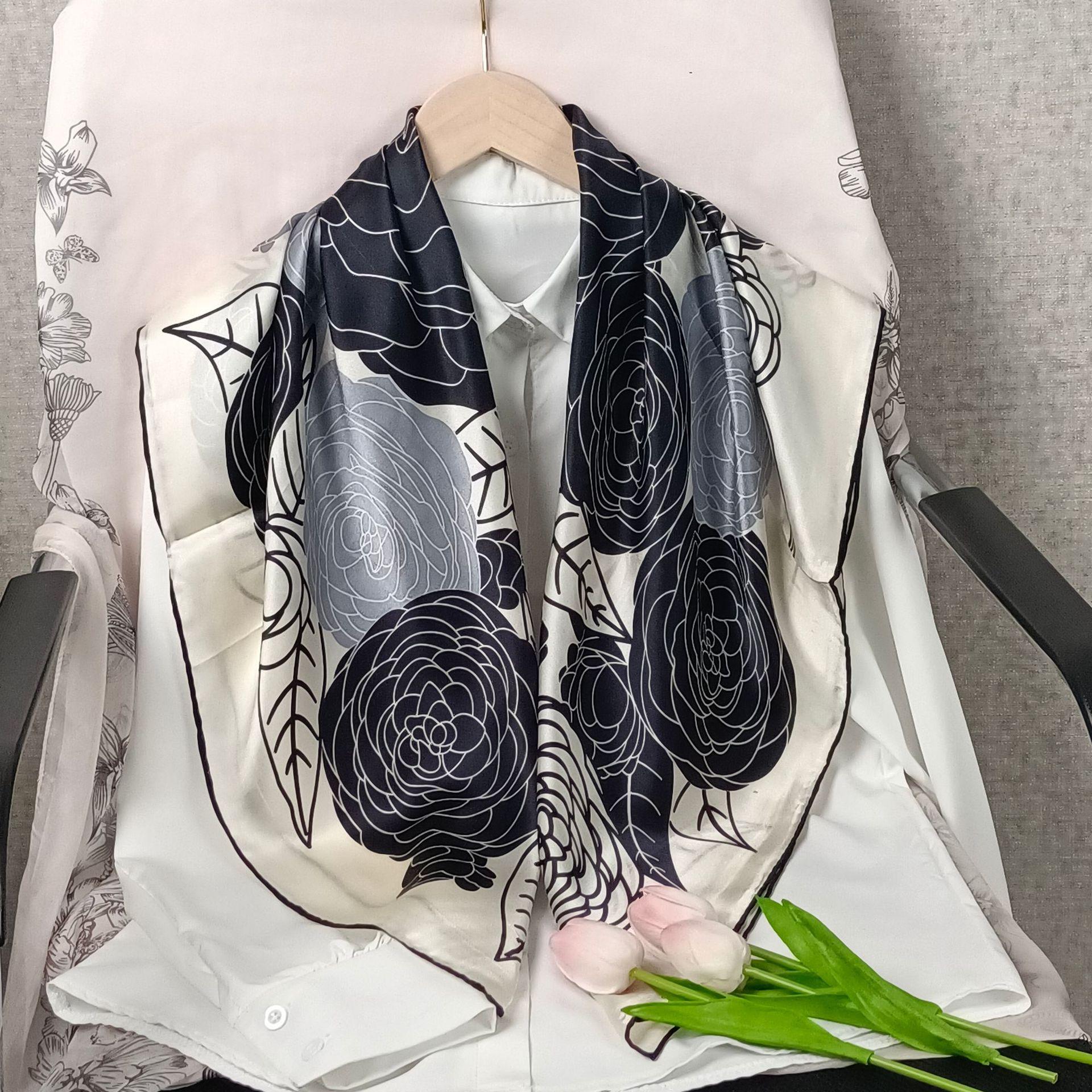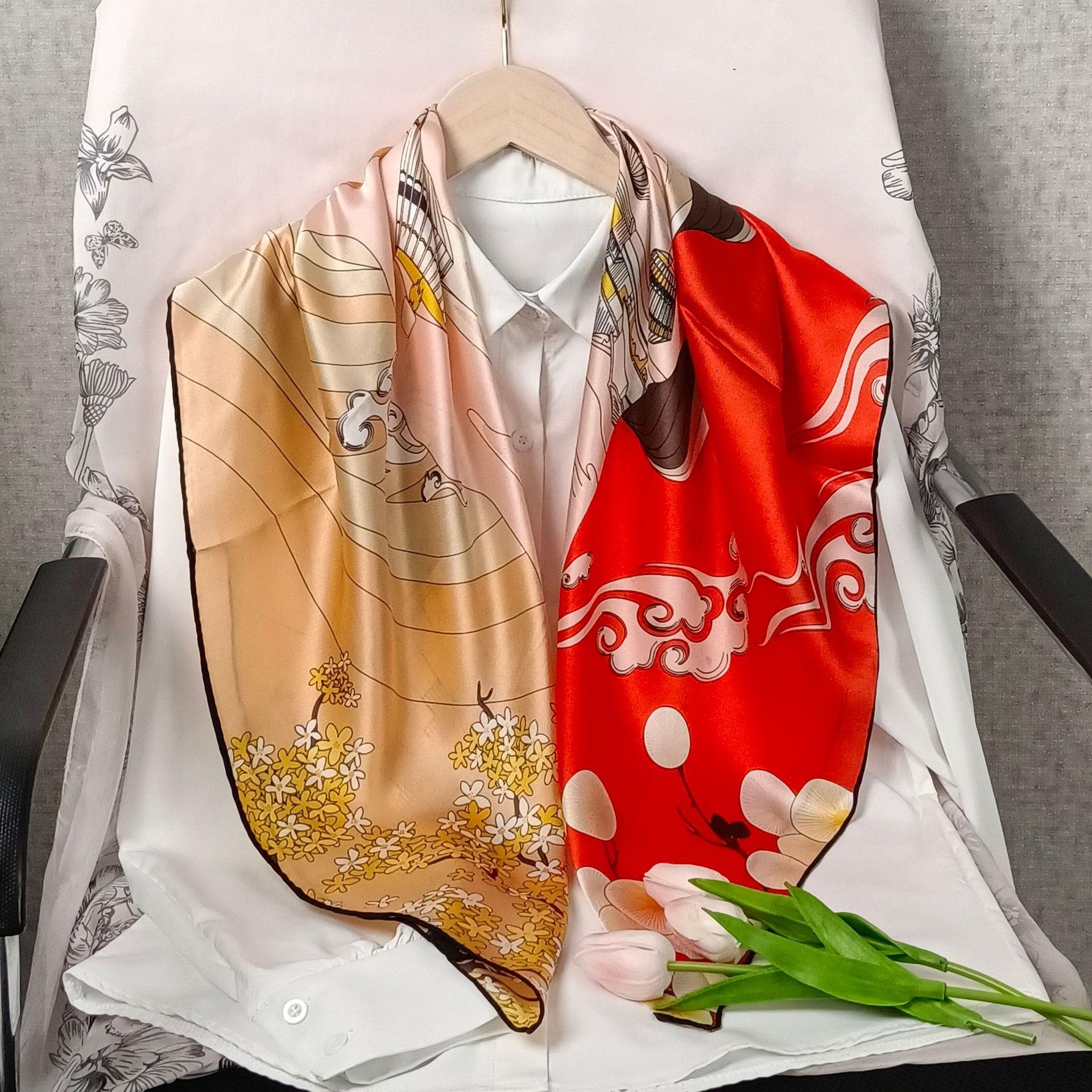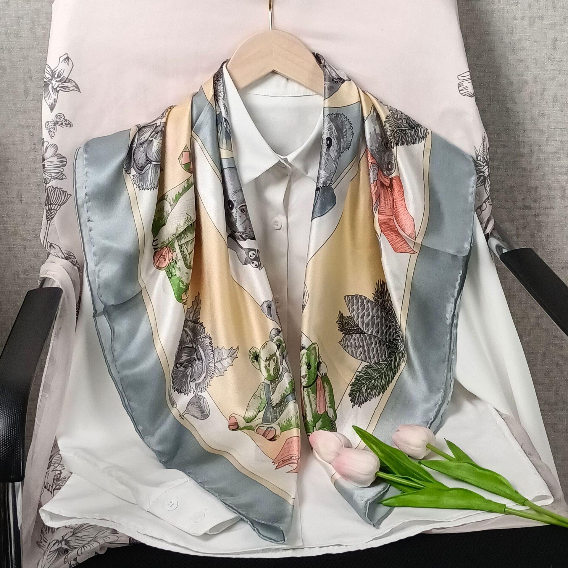 Bufanda de seda fina de primavera y otoño para mujer, bufanda cuadrada grande de seda morera de 90 cm, combinable con todo, chal de seda a juego con camisas.