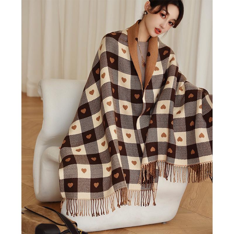 | Bufanda cálida nueva de otoño e invierno con letra H a juego de colores para mujer, chal largo grueso y cálido de doble cara de imitación de cachemira |