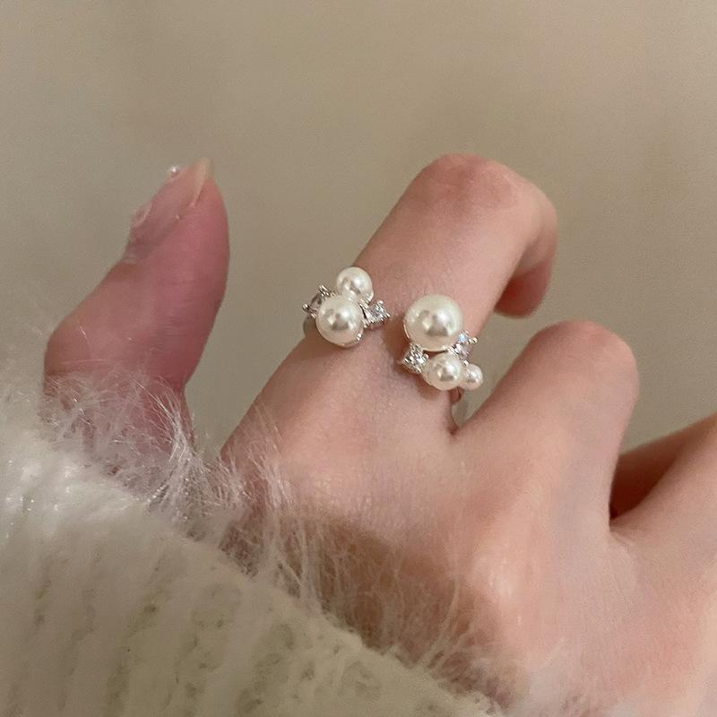 Anillo abierto de circón perlado para mujer, ligero, de lujo, nicho de alta sensibilidad, estilo de dedo índice, anillo personalizado, nueva pulsera