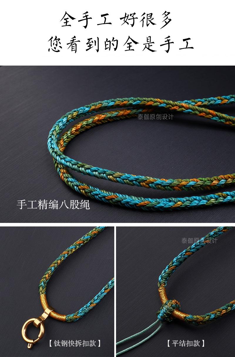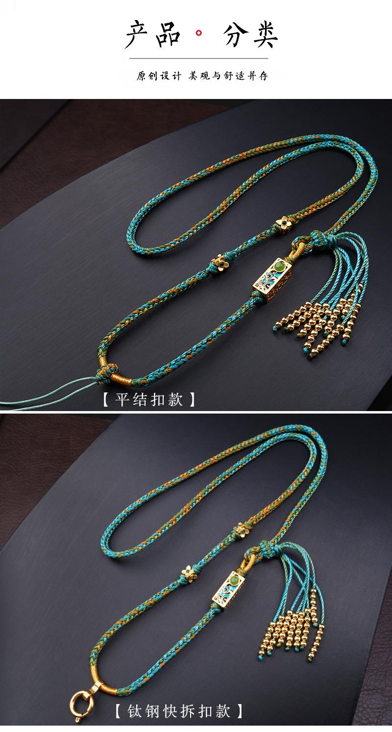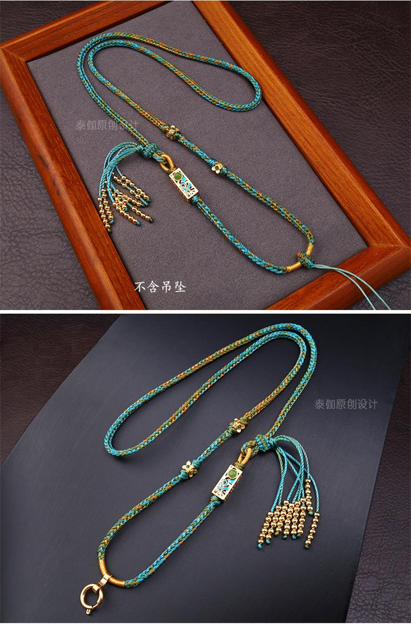 Collar de cuerda con colgante de color Qianli Jiangshan, hecho a mano, cuerda trenzada, arena, oro, cera de abejas, jade hetiano, cuerda de repuesto TG181