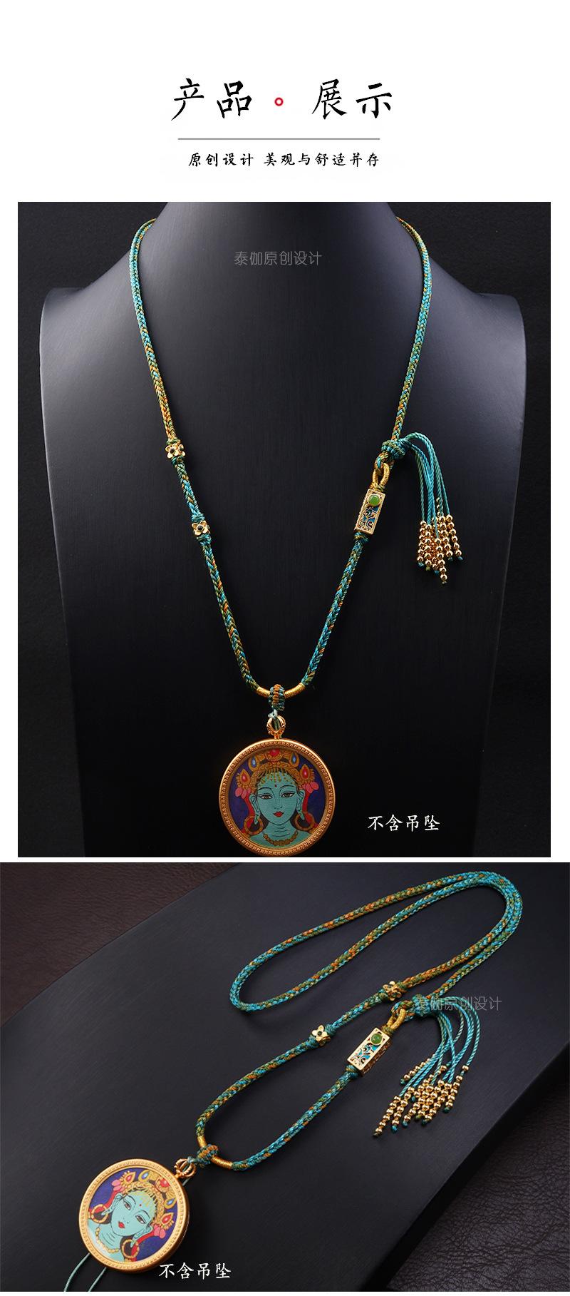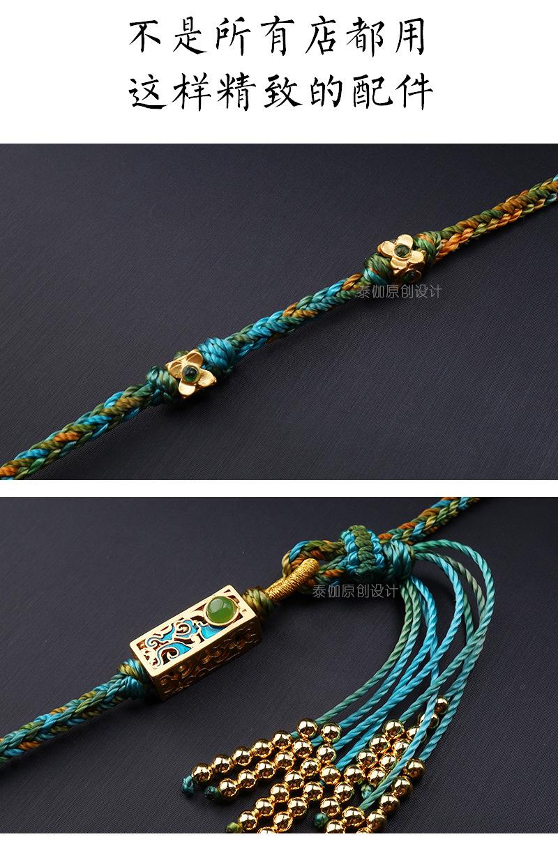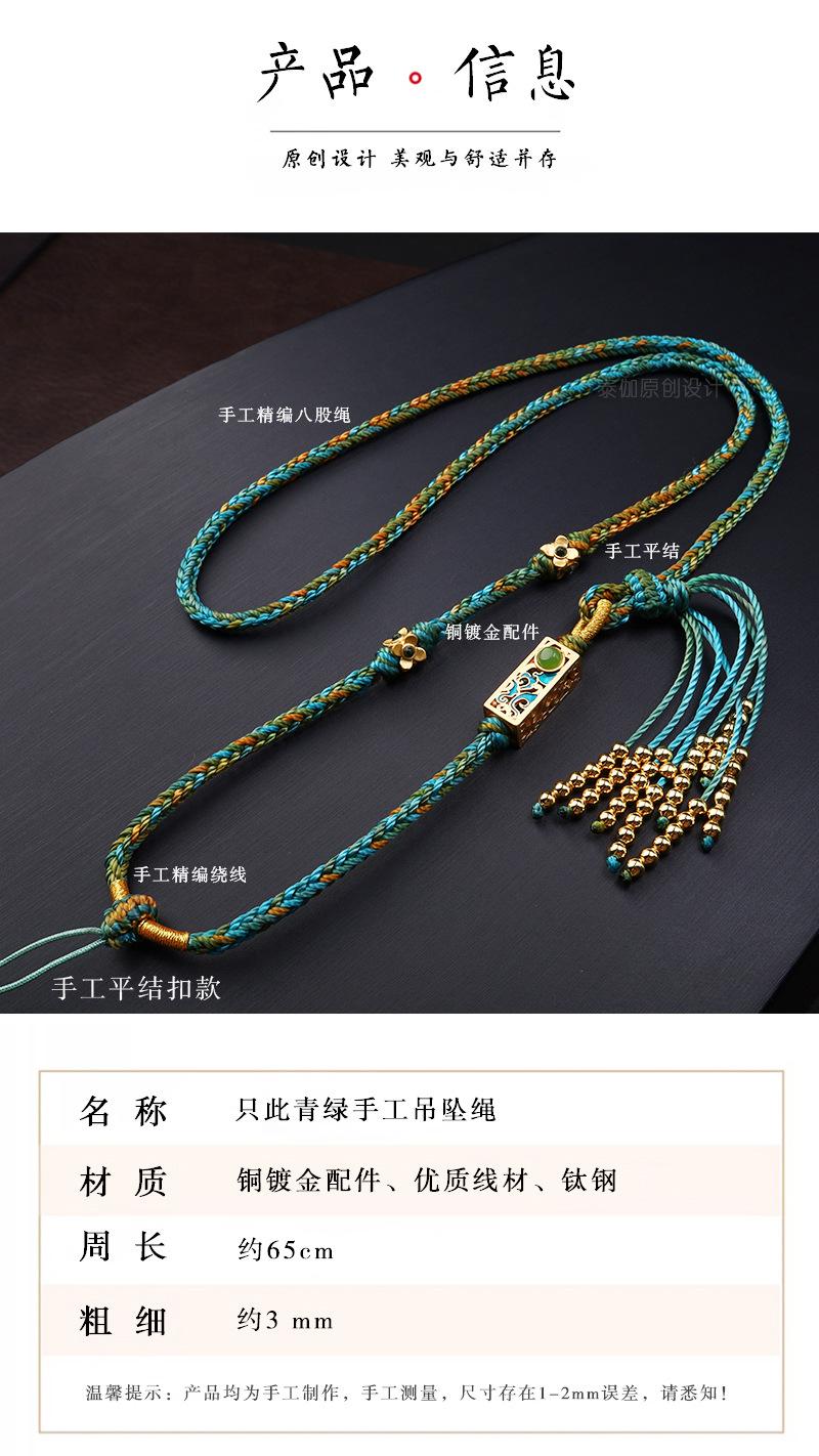 Collar de cuerda con colgante de color Qianli Jiangshan, hecho a mano, cuerda trenzada, arena, oro, cera de abejas, jade hetiano, cuerda de repuesto TG181