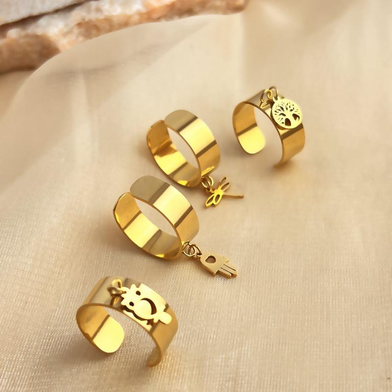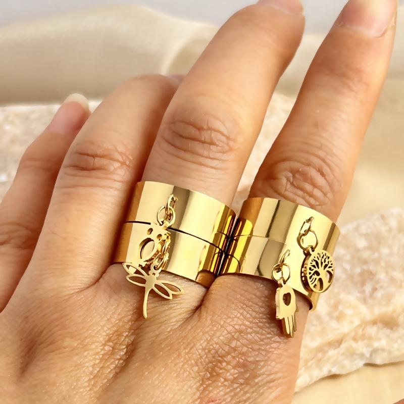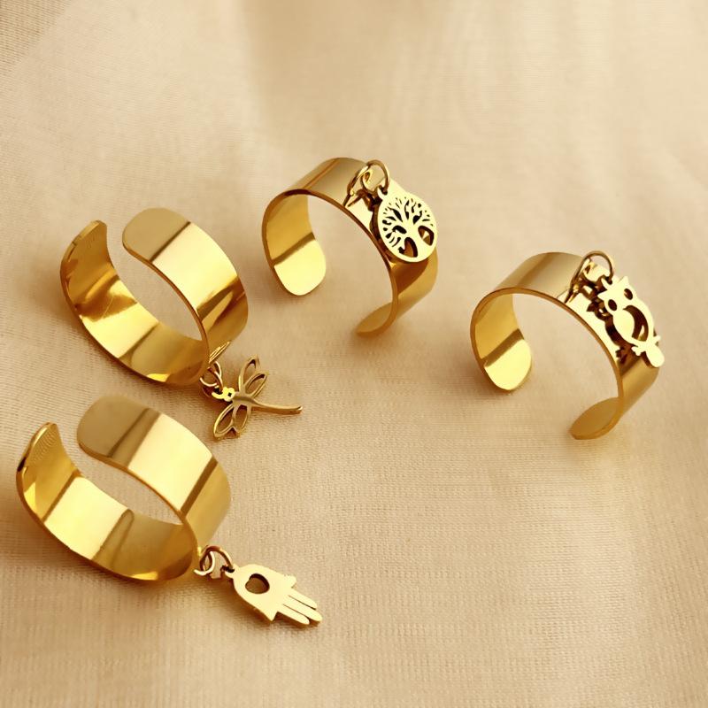Compra Anillo Nuevo de Acero de Titanio de Amazon para Mujer Ins No se Desvanece Nicho de Alta Gama Lujo Ligero Anillo Colgante Dorado Abierto al por mayor en Joom.pro