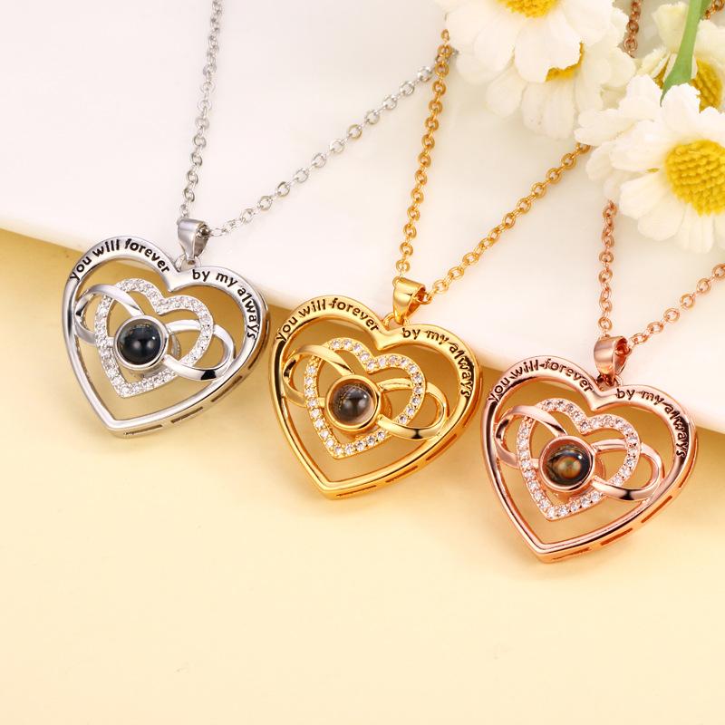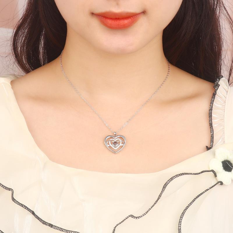 Collar con proyección transfronteriza europea y americana en 100 idiomas. Colgante de corazón ilimitado para mamá, regalo de cumpleaños para madre.