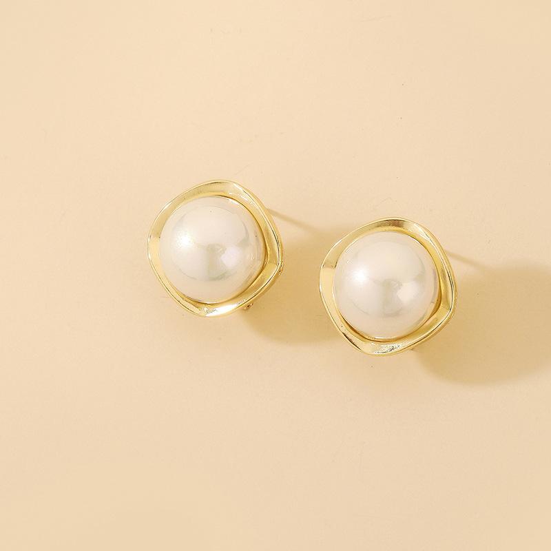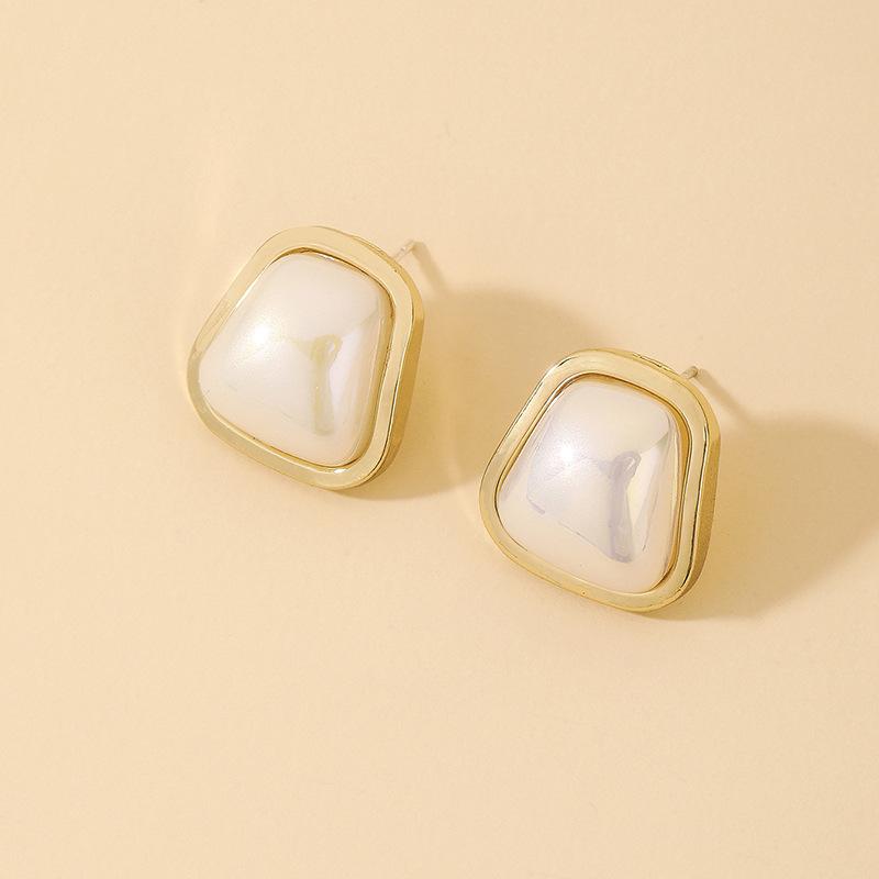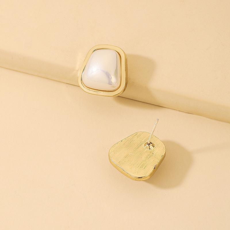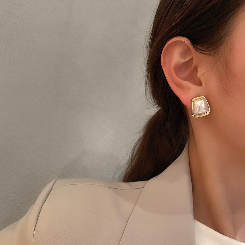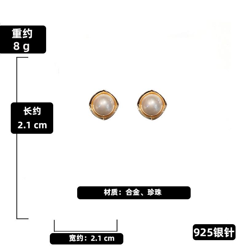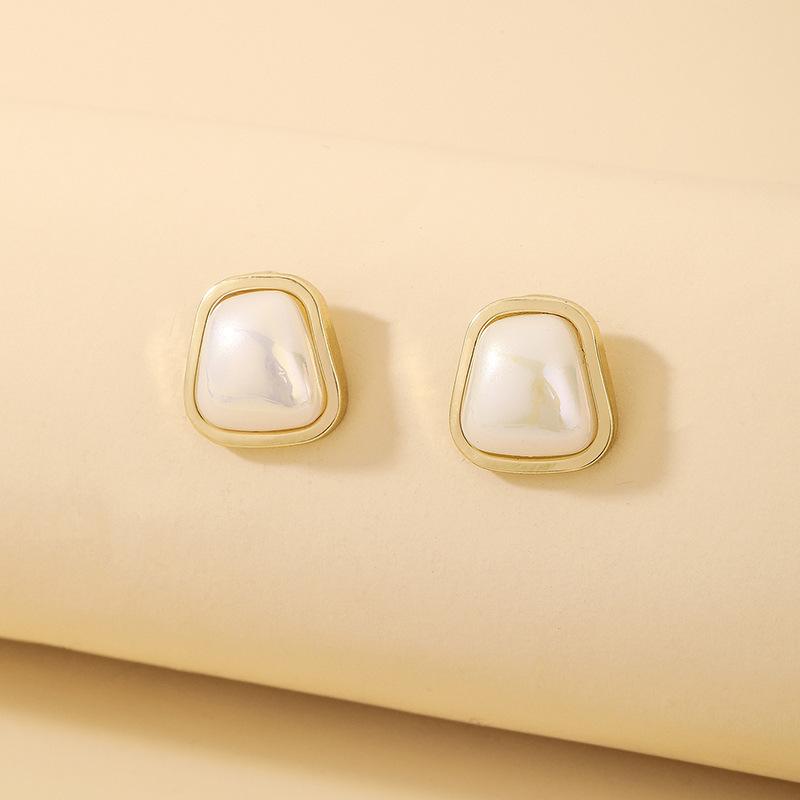 Aretes de Tuerca Simples de Aguja de Plata con Perla de Imitación Redonda Cuadrada Trapezoidal para Mujer, Moda Ins Europea y Americana, Aretes Geométricos de Temperamento al Mayoreo