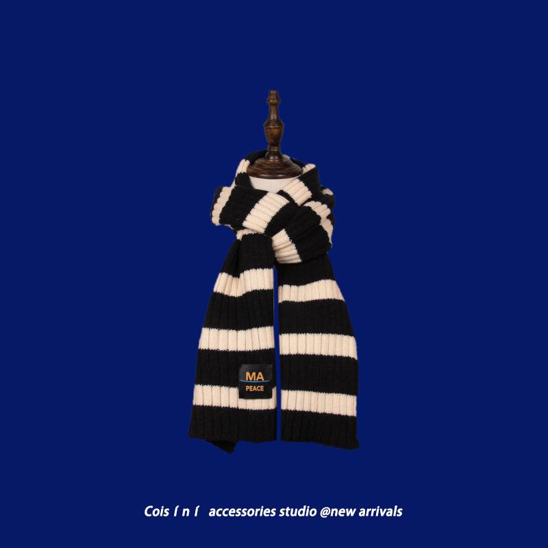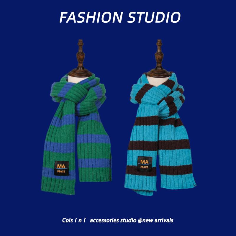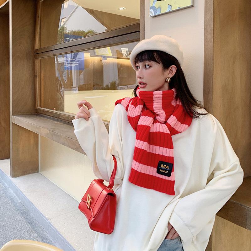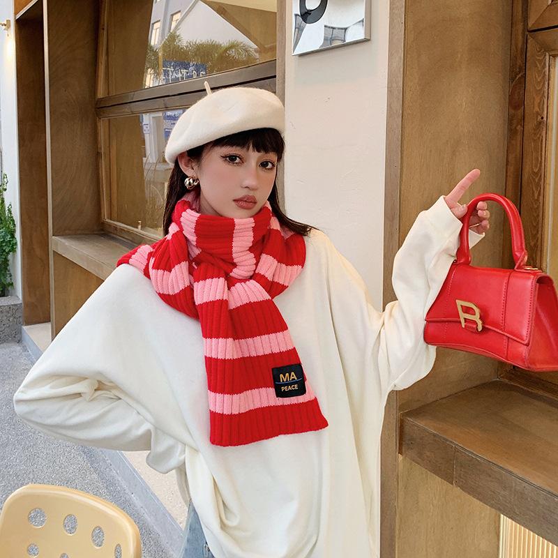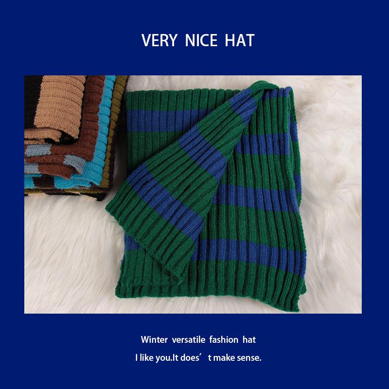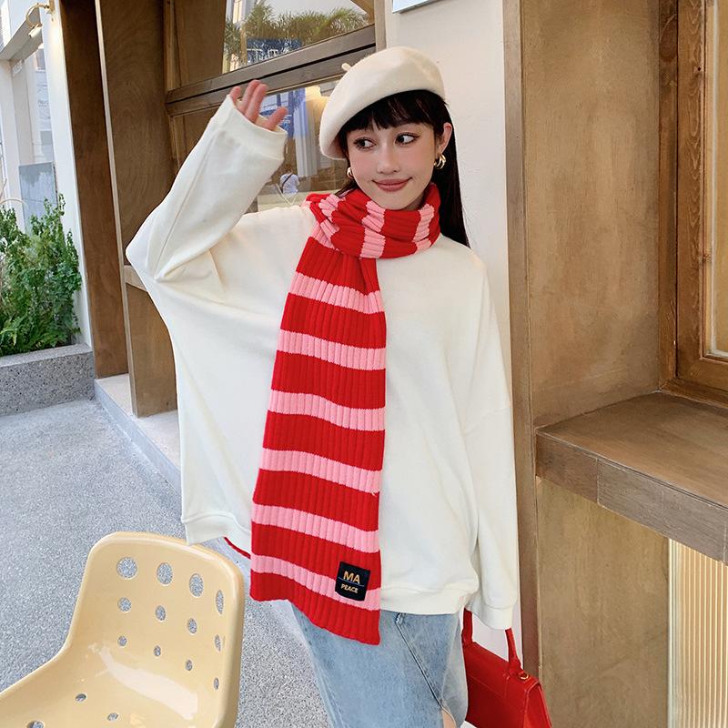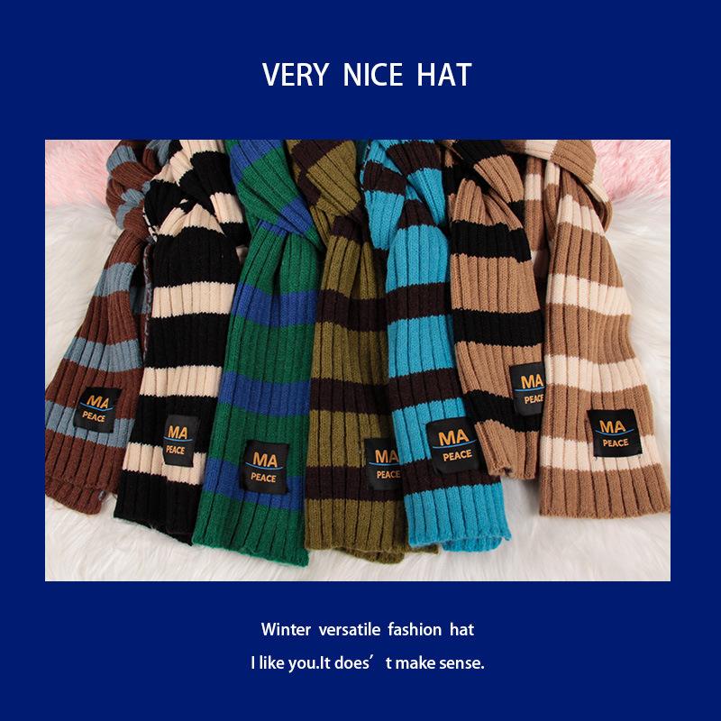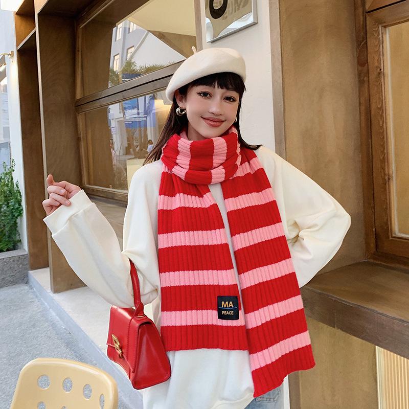Bufanda de punto a rayas de estilo coreano para mujer, nueva bufanda de moda, informal, versátil, cálida, transpirable y resistente al viento para estudiantes, otoño e invierno.
