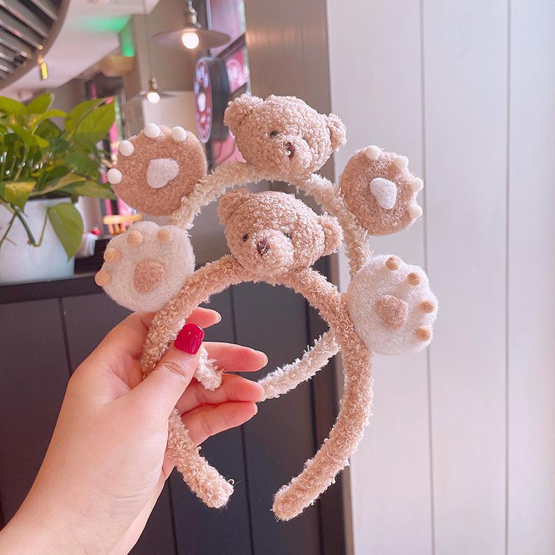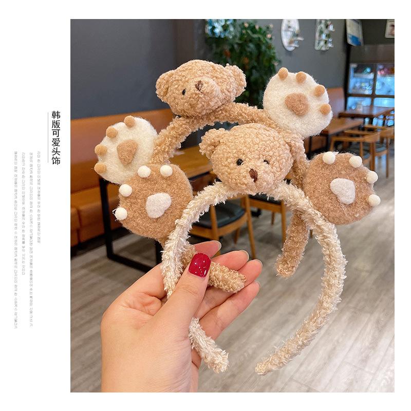 Diadema de peluche de oso tridimensional linda de estilo coreano, elegante tocado dulce, mascarilla de lavado de corazón para niña, diadema para presionar el cabello para mujer