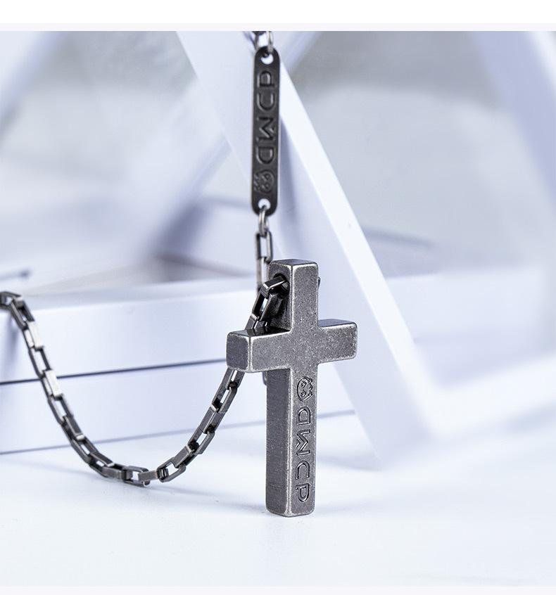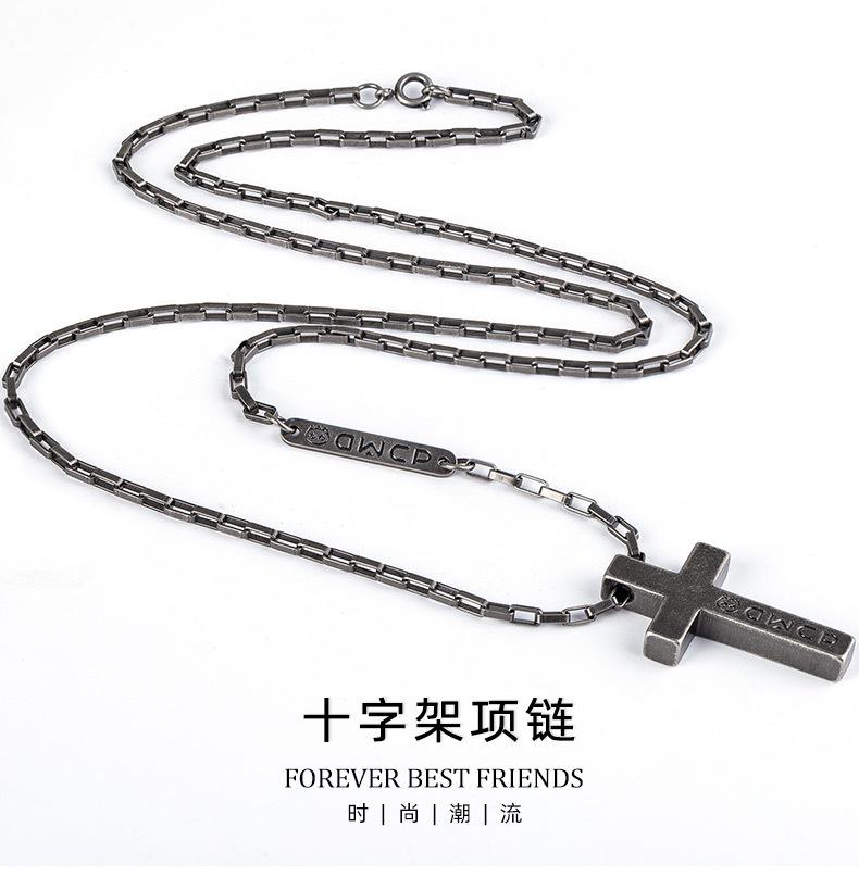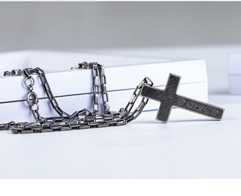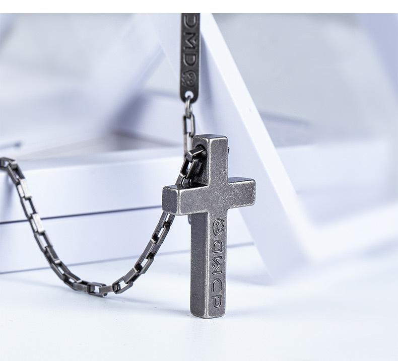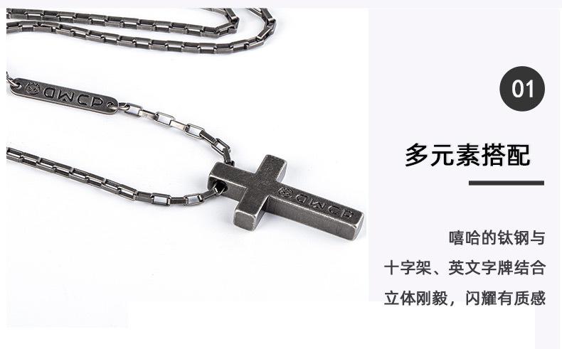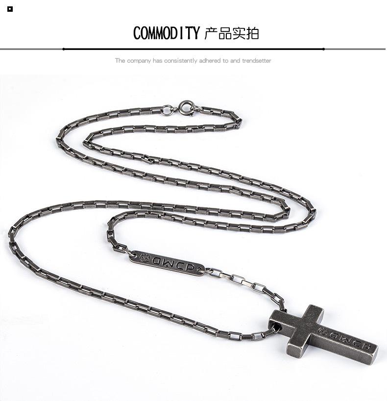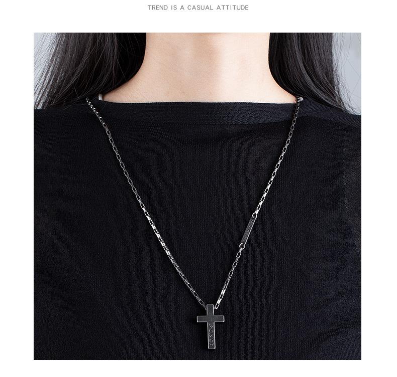 Cadena de suéter personalizada, joyería de moda, cruz de acero de titanio, fe, fuerza, collar de plata vintage para hombres y mujeres, colgante para parejas