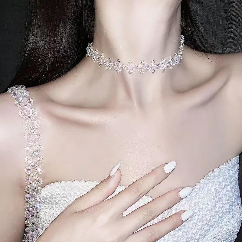 Collar coreano de cristal mágico para mujer, con textura sencilla, cadena de clavícula corta, estilo europeo y americano, envío gratuito.