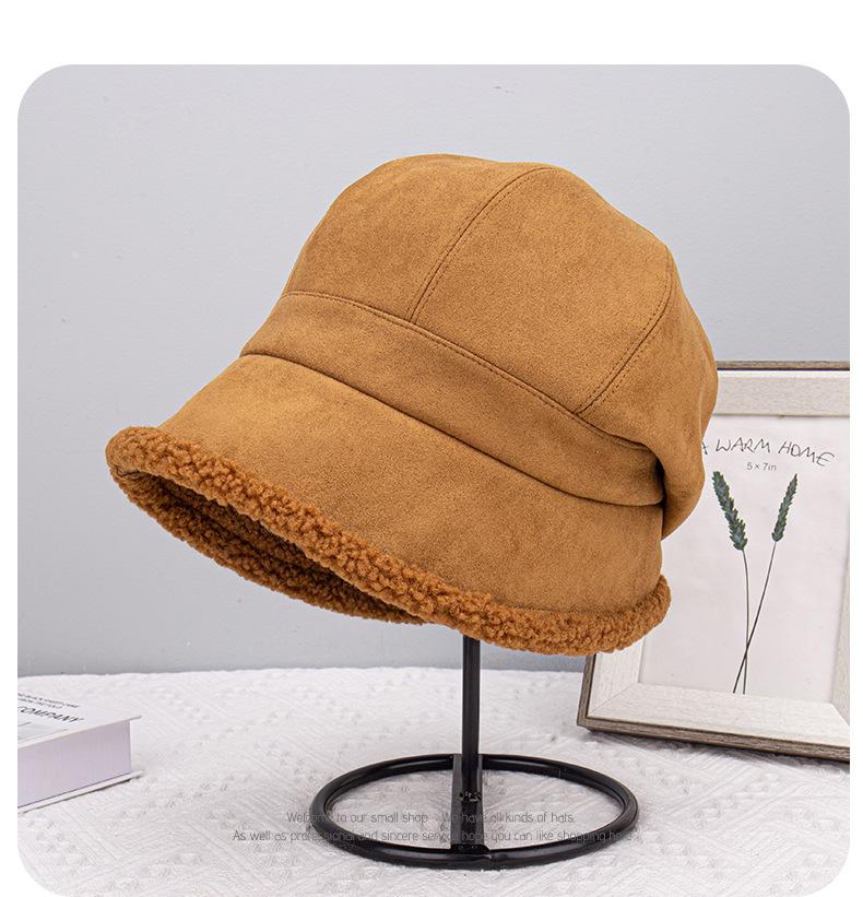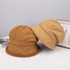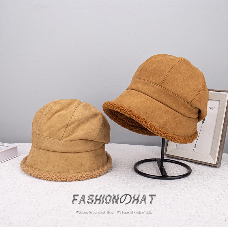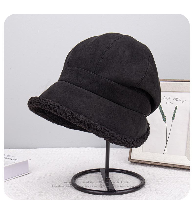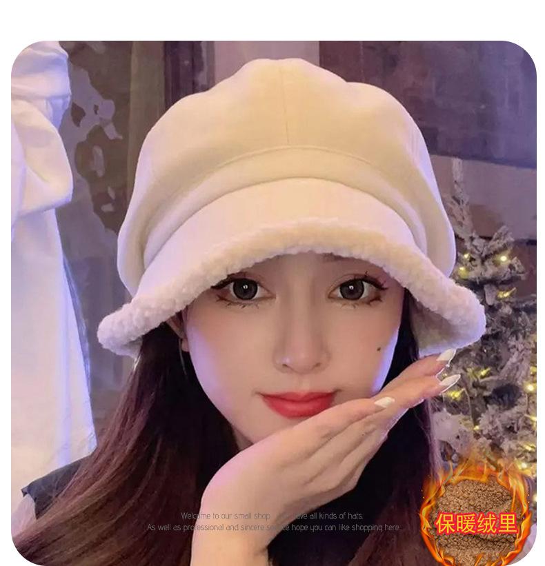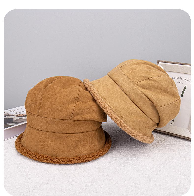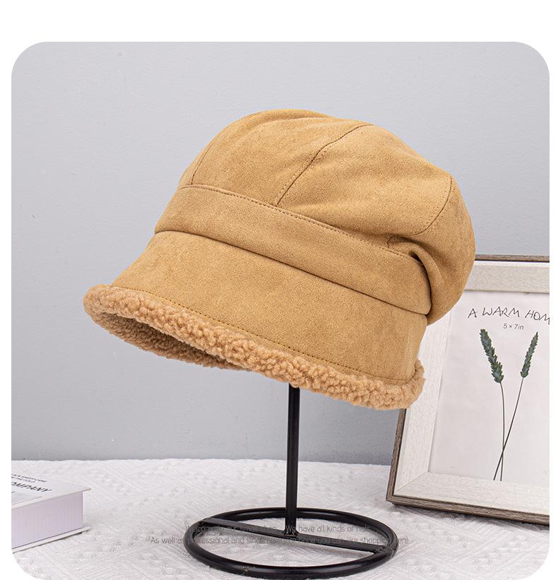Gorra de ante acolchada frontal larga trasera pelo corto para mujer invierno exterior versátil cálida para la cara gorro pequeño al por mayor