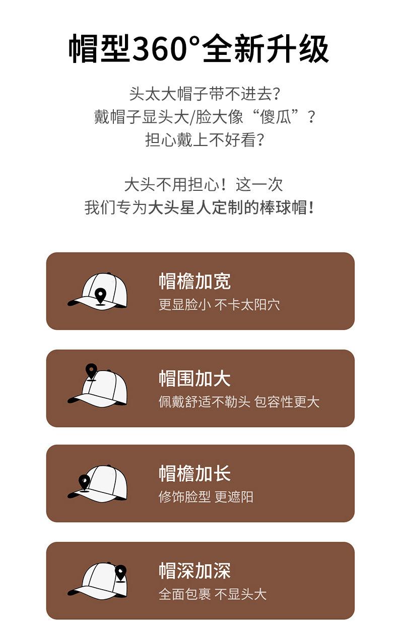 Gorra de béisbol americana rasgada de color sólido, ala ancha, cara grande, adelgazamiento, circunferencia de cabeza pequeña y grande, gorra con visera extra grande y profunda, moda femenina