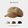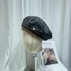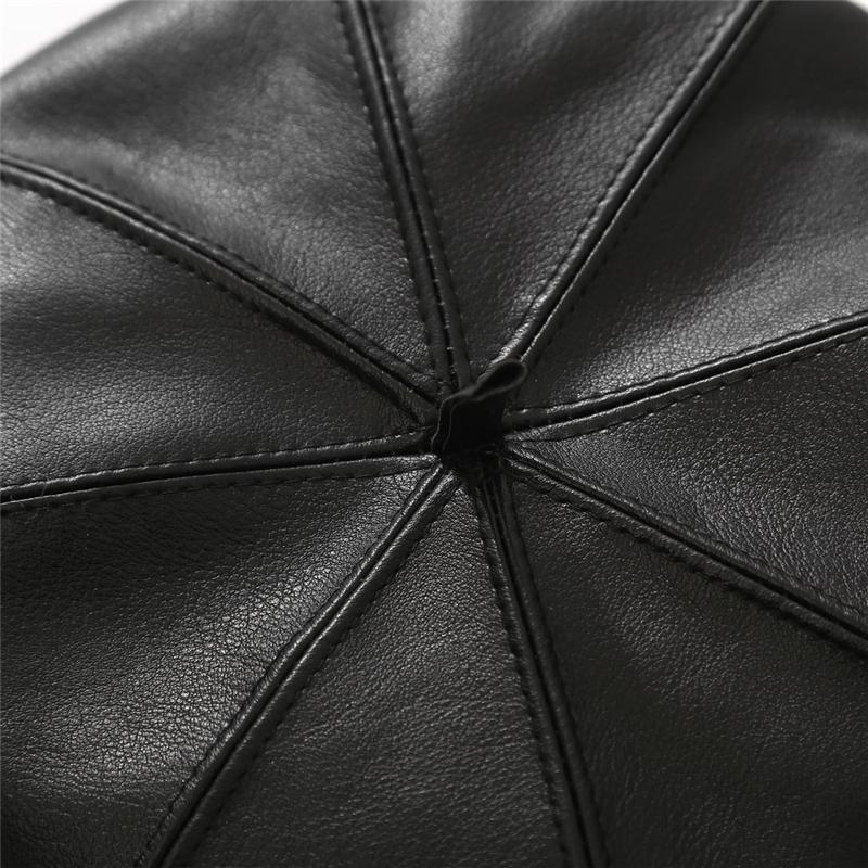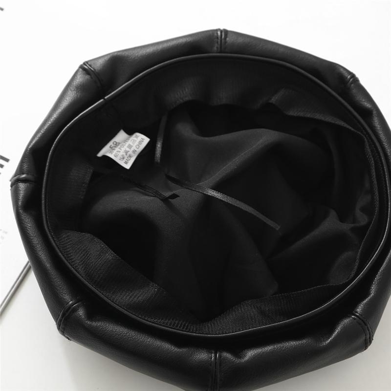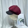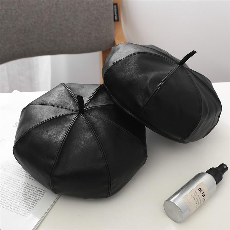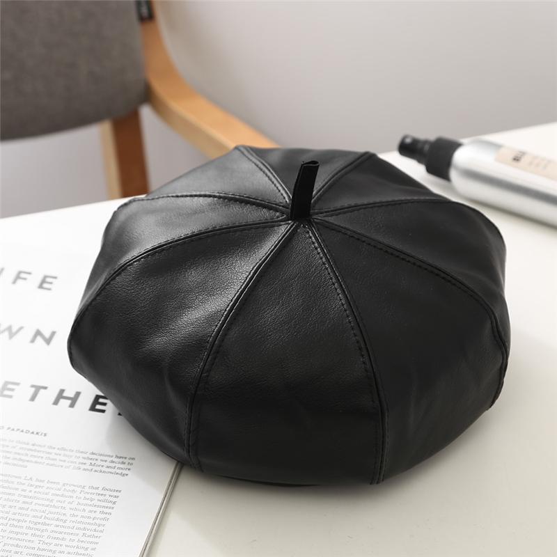 Gorra Octogonal de Cuero de Otoño e Invierno Japonés para Mujer Otoño Moda Británica Estilo Japonés Coreano Moda Todo Combinable Gorra de Cuero Boina con Visera