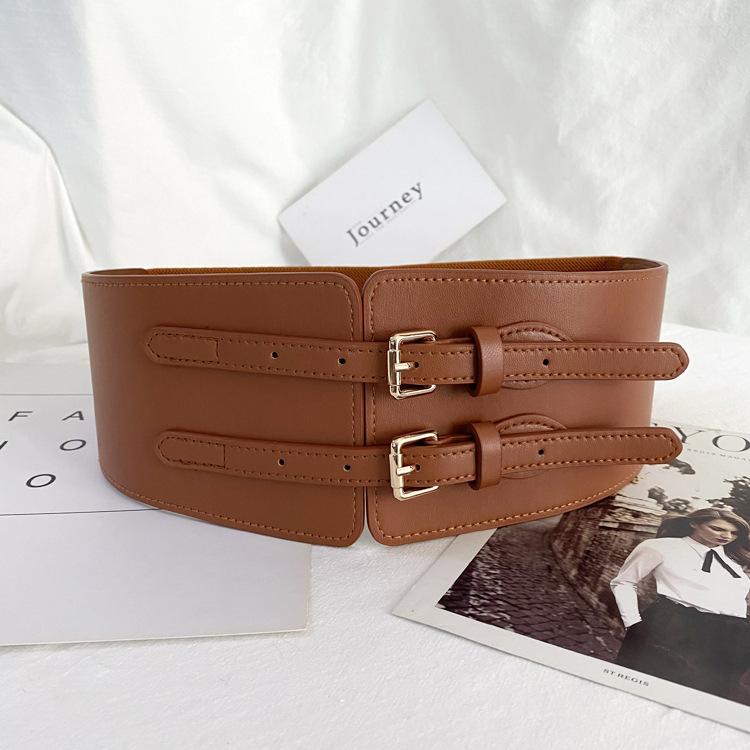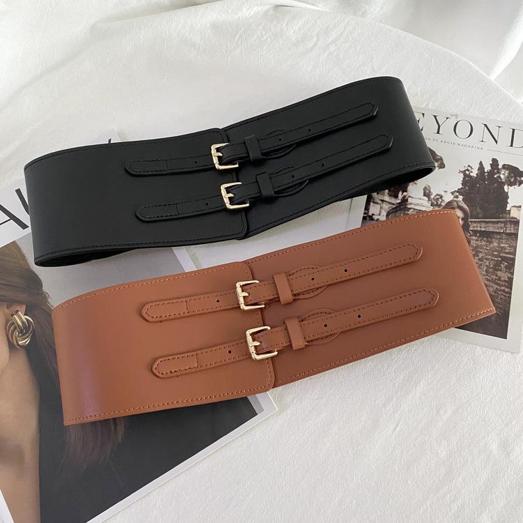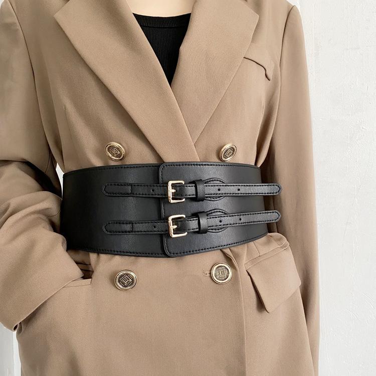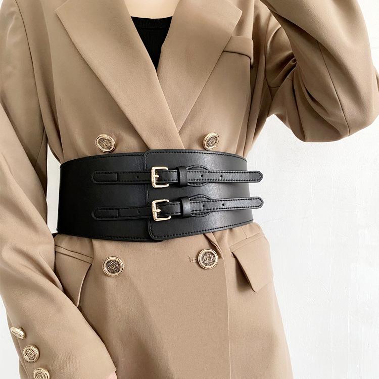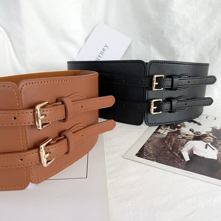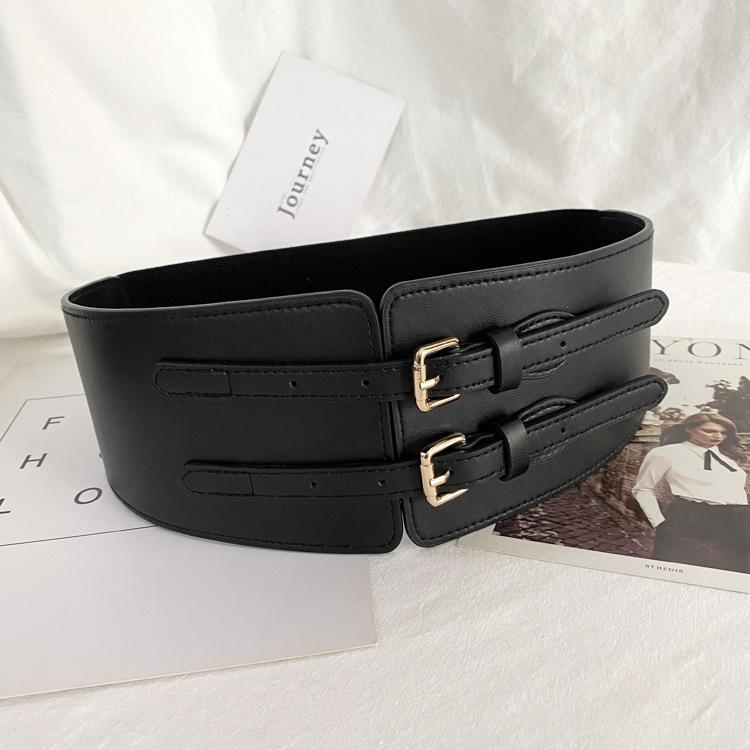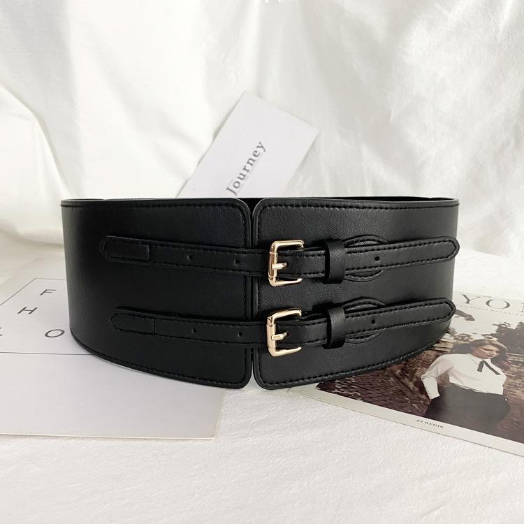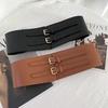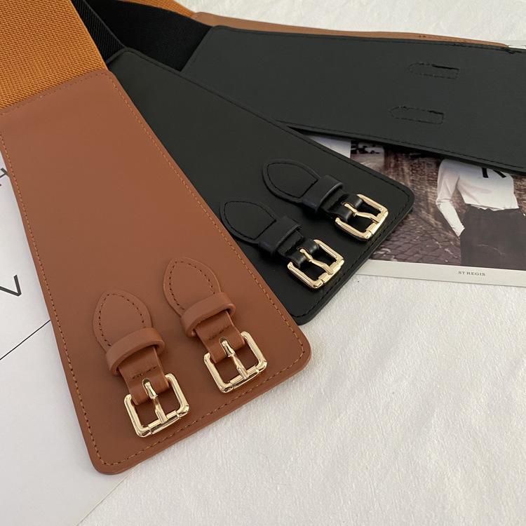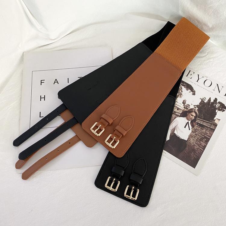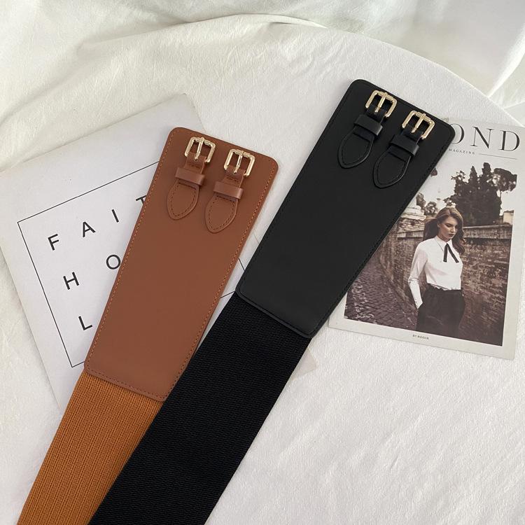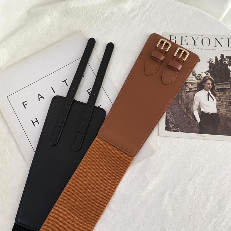 Cinturón para mujer, ancho, versátil, moderno, de alta gama, decoración retro para la cintura, a juego con falda, abrigo, cintura elástica, negro