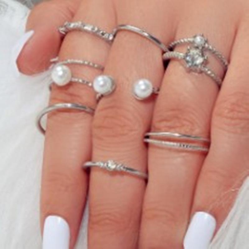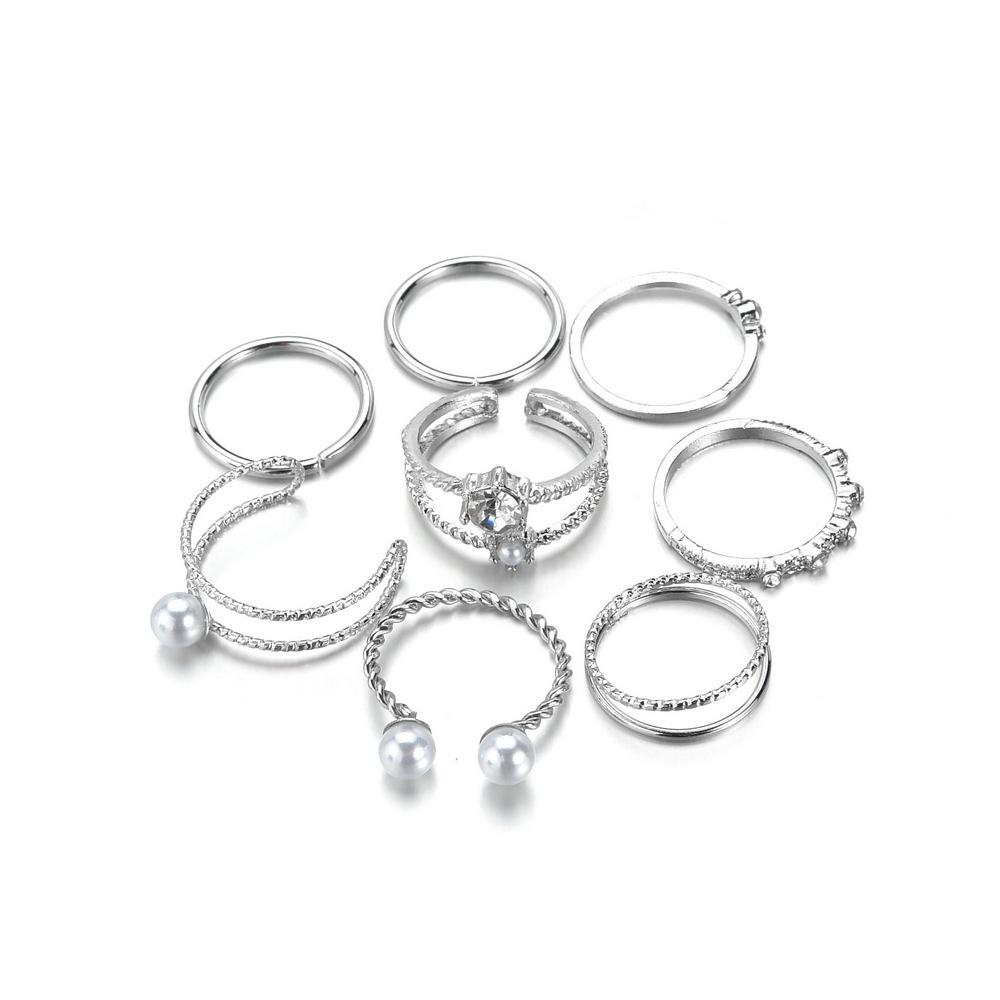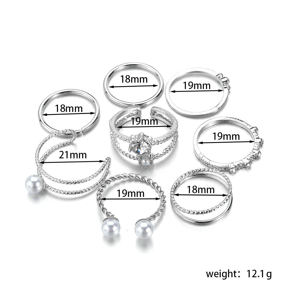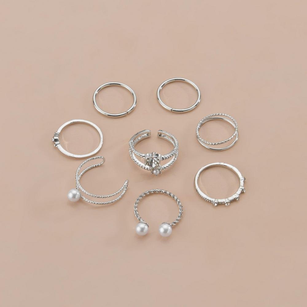 Anillo de moda de aleación de tendencia transfronteriza de Amazon, superventas, con incrustaciones de perla de imitación ABS de forma especial, juego de anillos de varias piezas para mujer