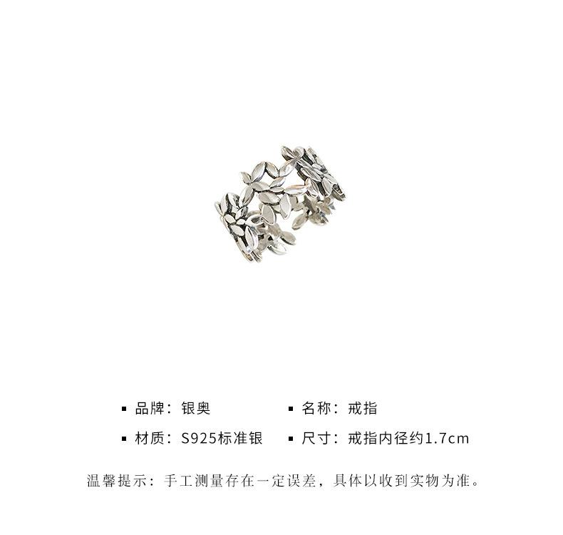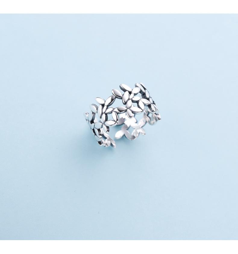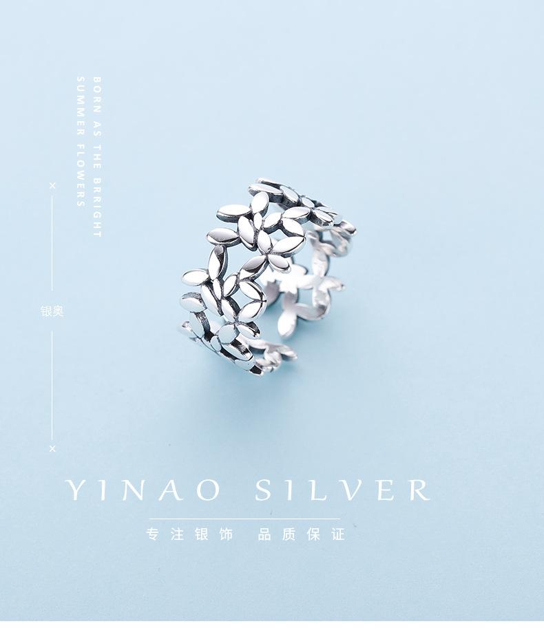 Anillo de Mariposa y Flor a la Moda con Baño de Plata S925 para Mujer Retro Simple Calado Corazón de Niña Anillo para Dedo Índice Anillo Abierto Trendy