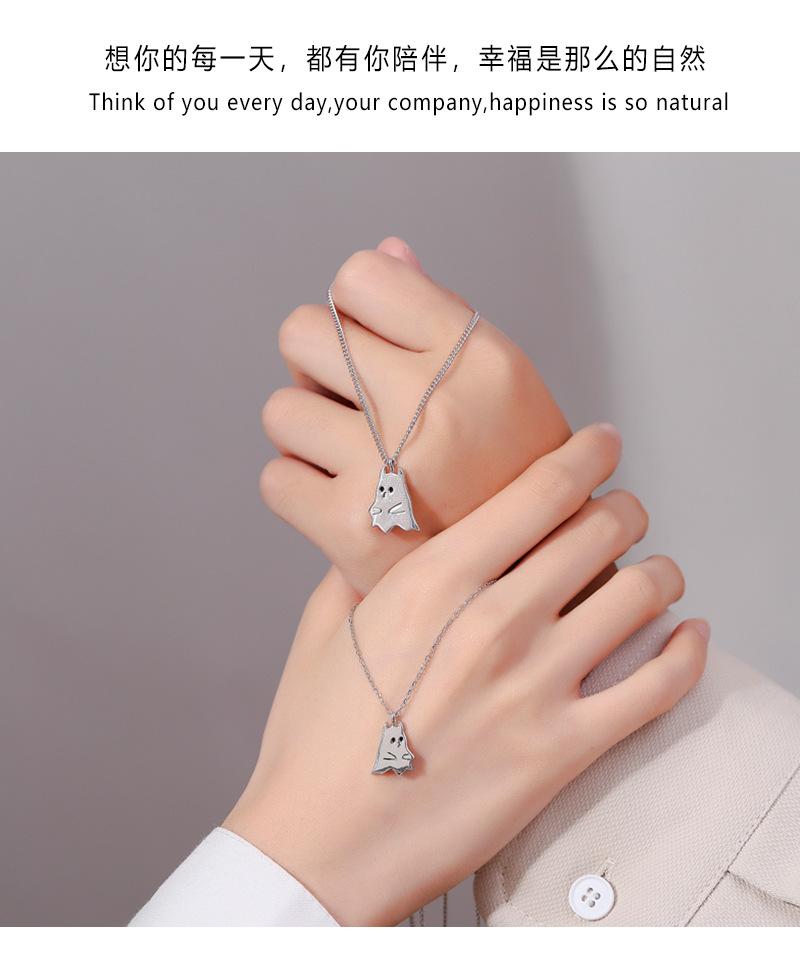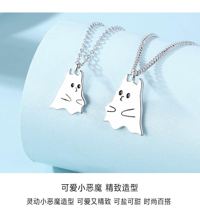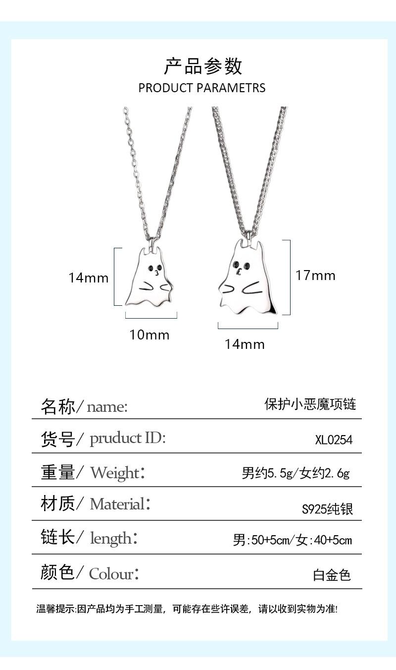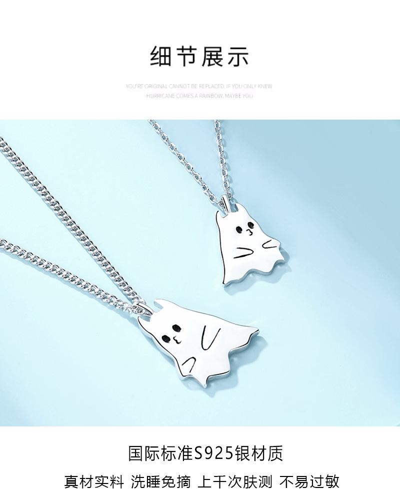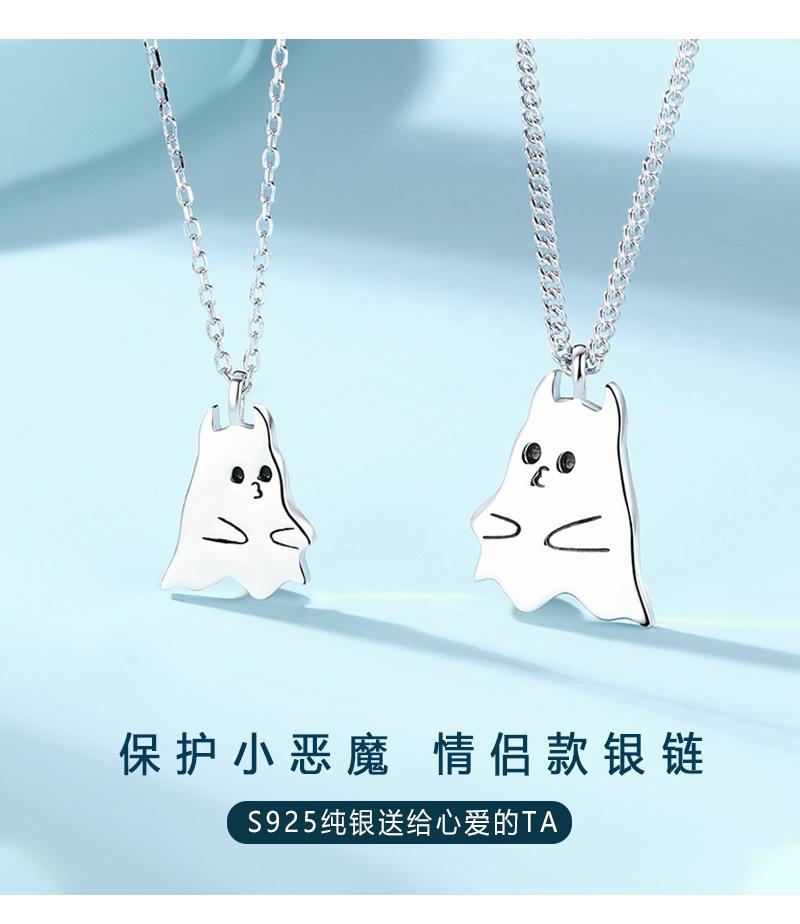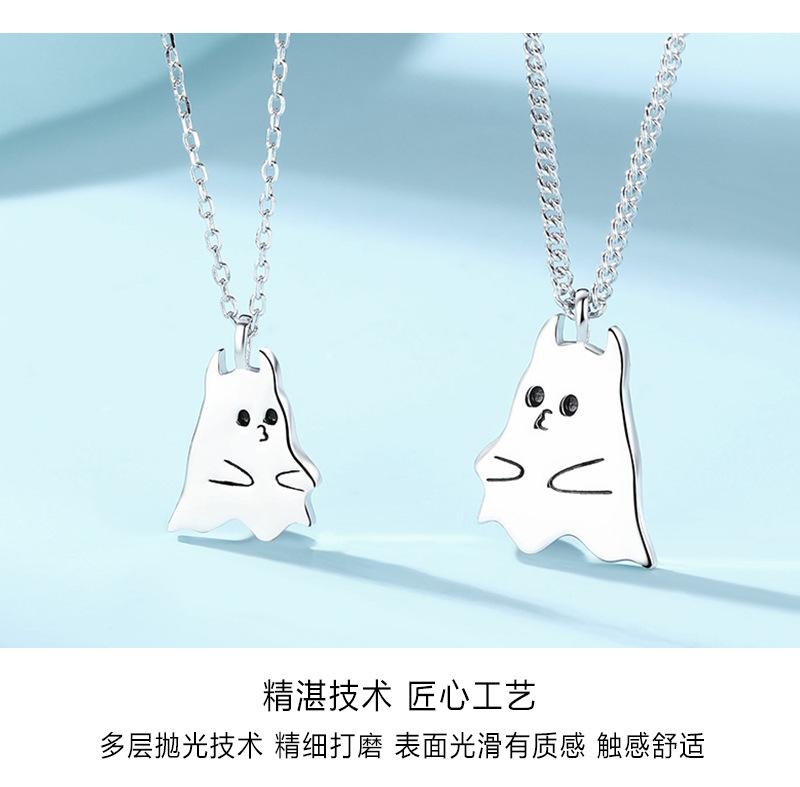 Collar de pareja de fantasmas pequeños de plata de ley S925 con lindo nicho y personalidad, cadena de clavícula con colgante de dibujos animados, collar dulce y genial
