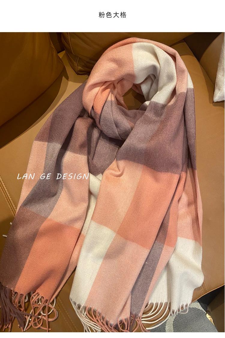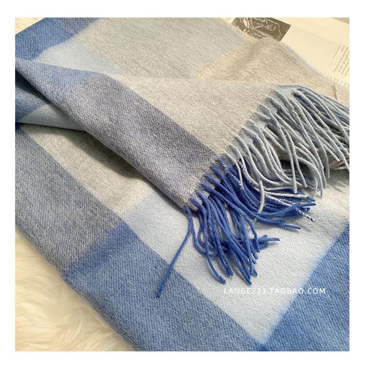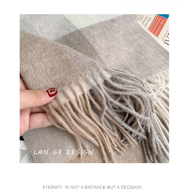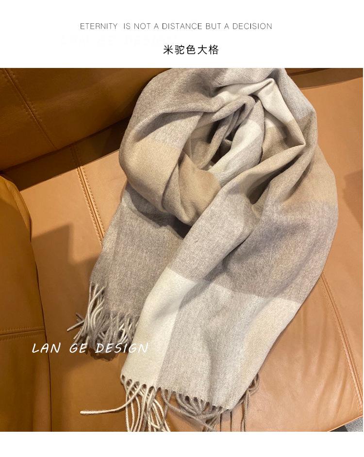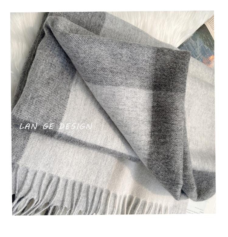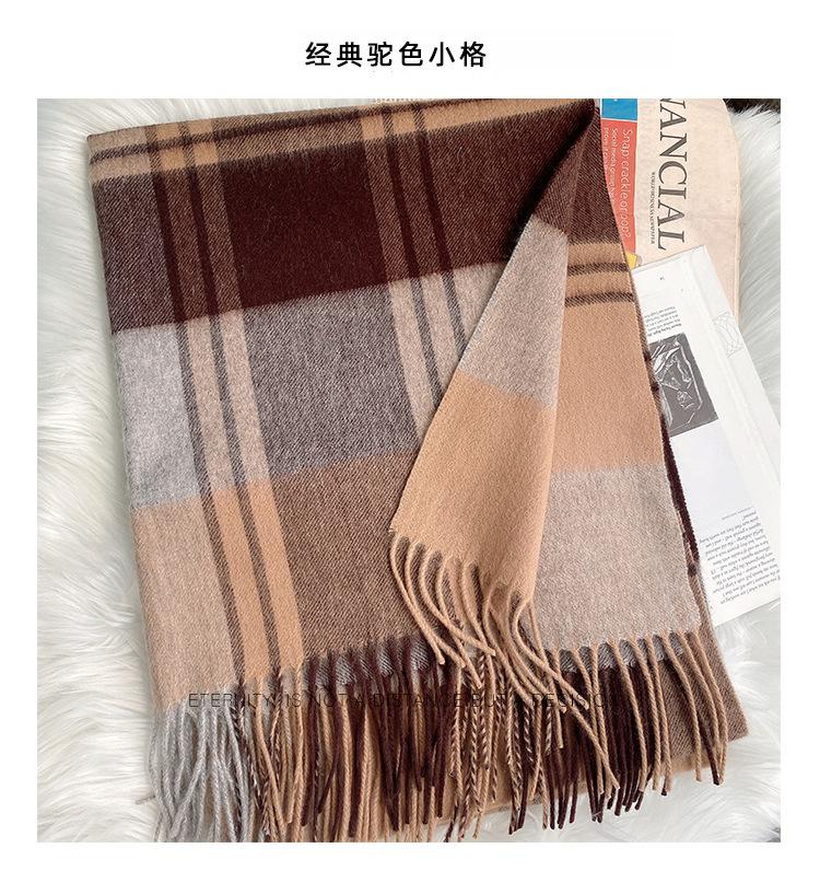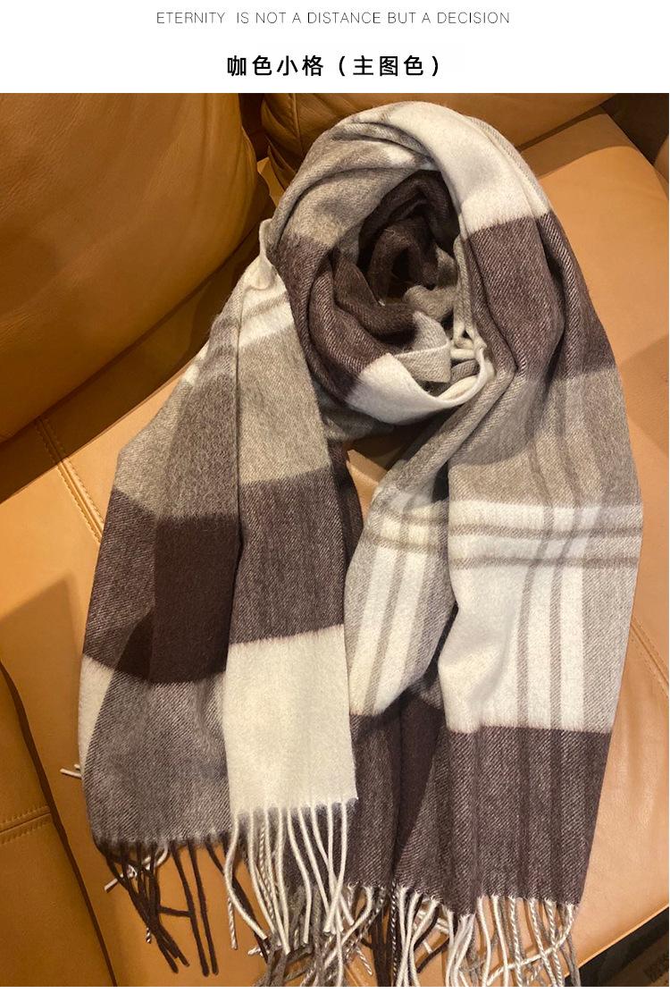 Bufanda Clásica de Lana Pura Estilo Británico a Cuadros Invierno para Mujer Versión Coreana Versátil Chal Grueso para Pareja Doble Uso Cálido para Hombre