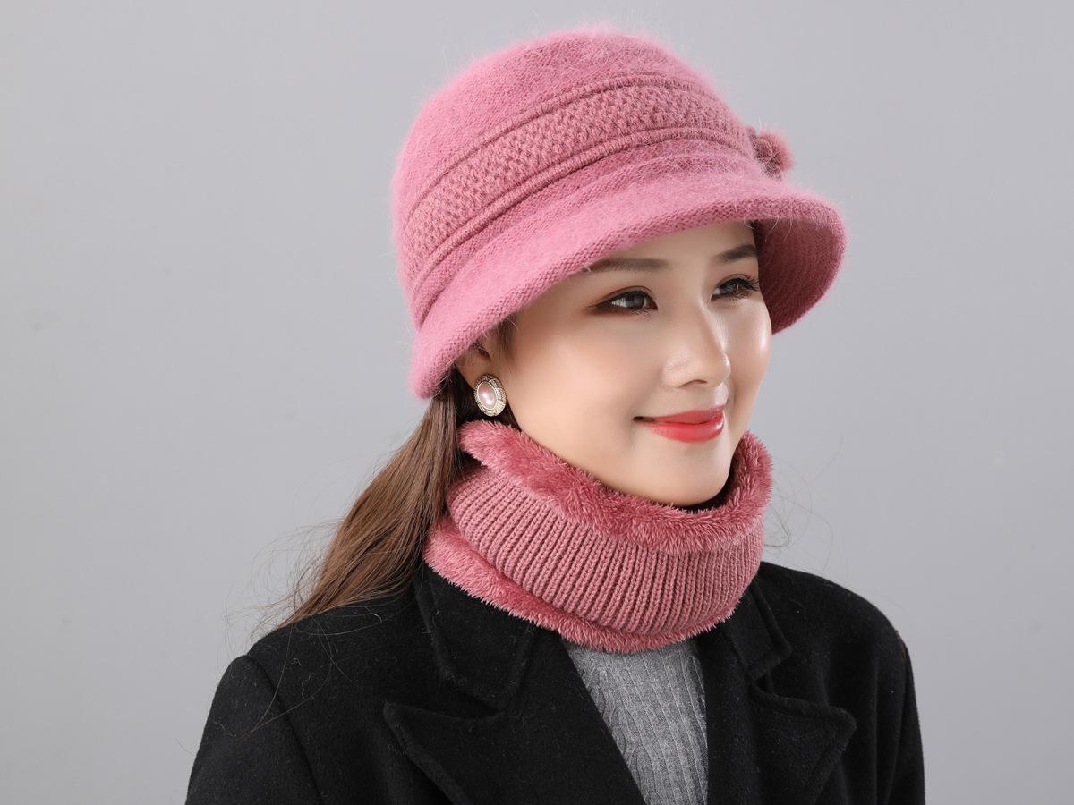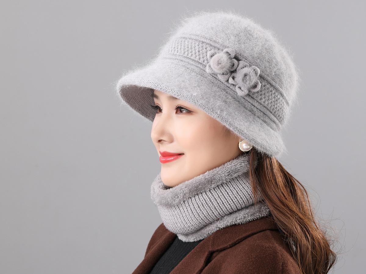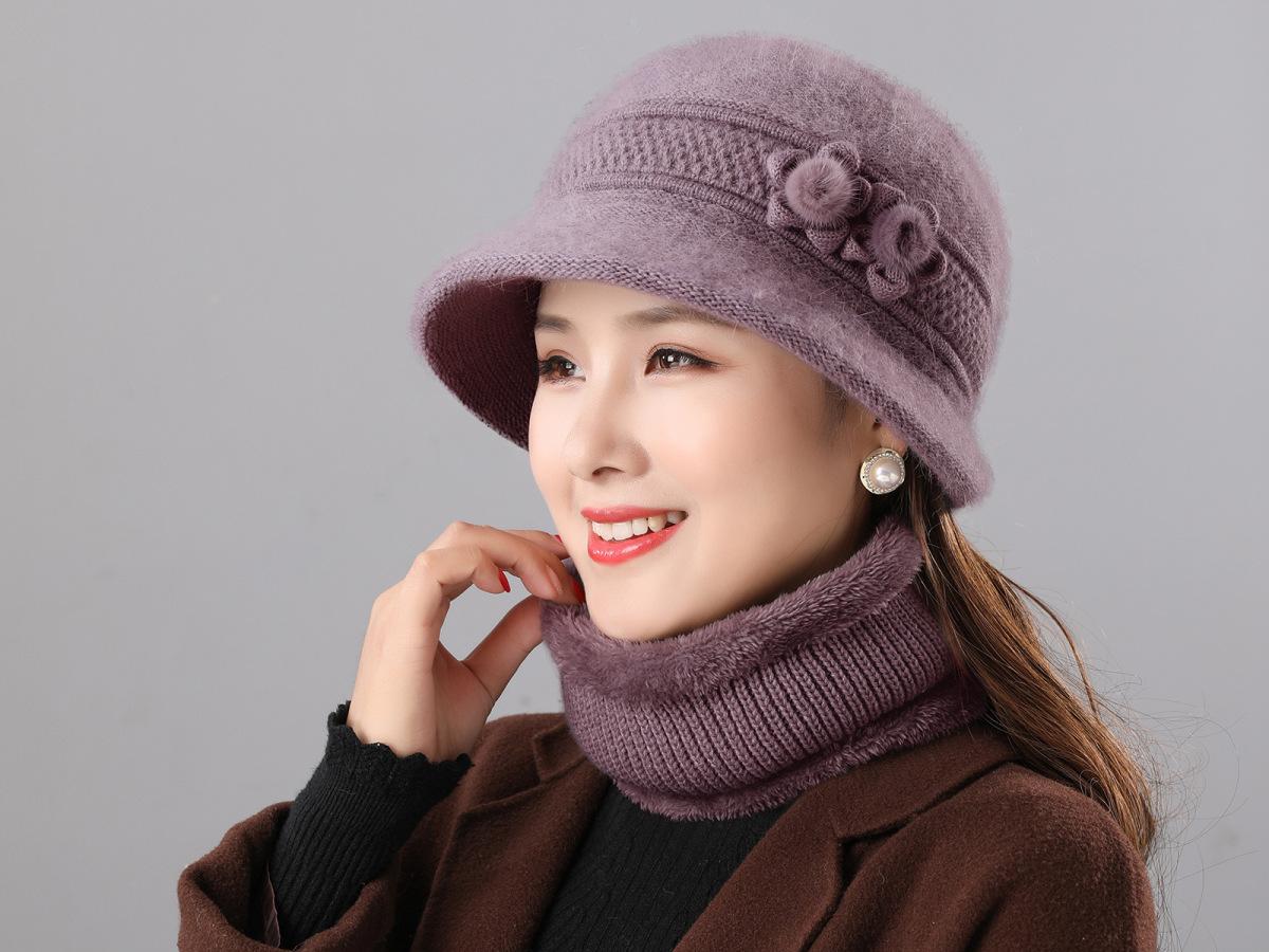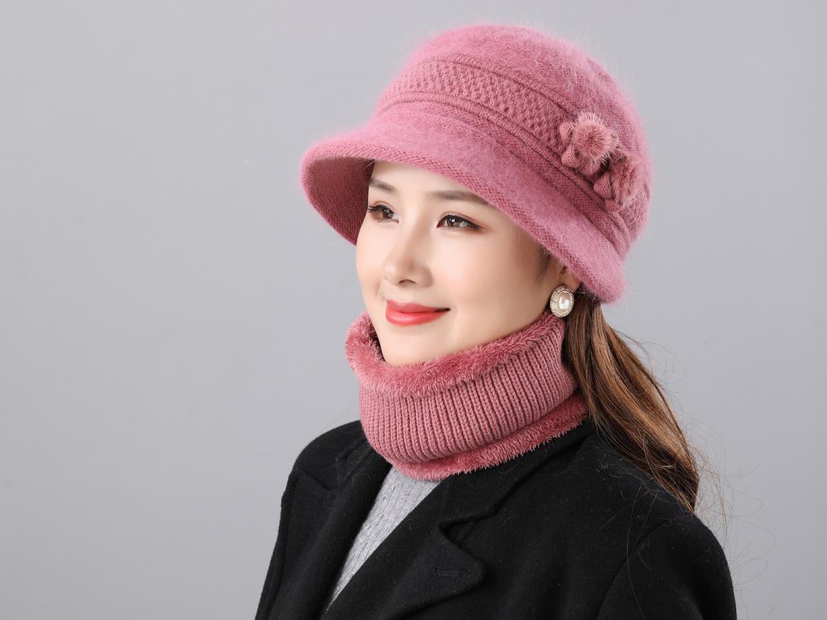 Sombrero cálido de piel de conejo para madres de mediana edad y ancianas otoño e invierno juego de dos piezas de bufanda para mujer sombrero de cubo de invierno para anciana