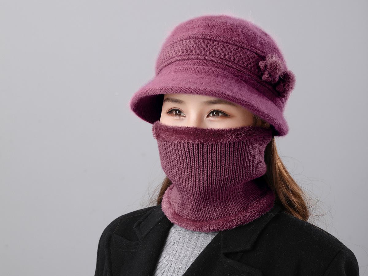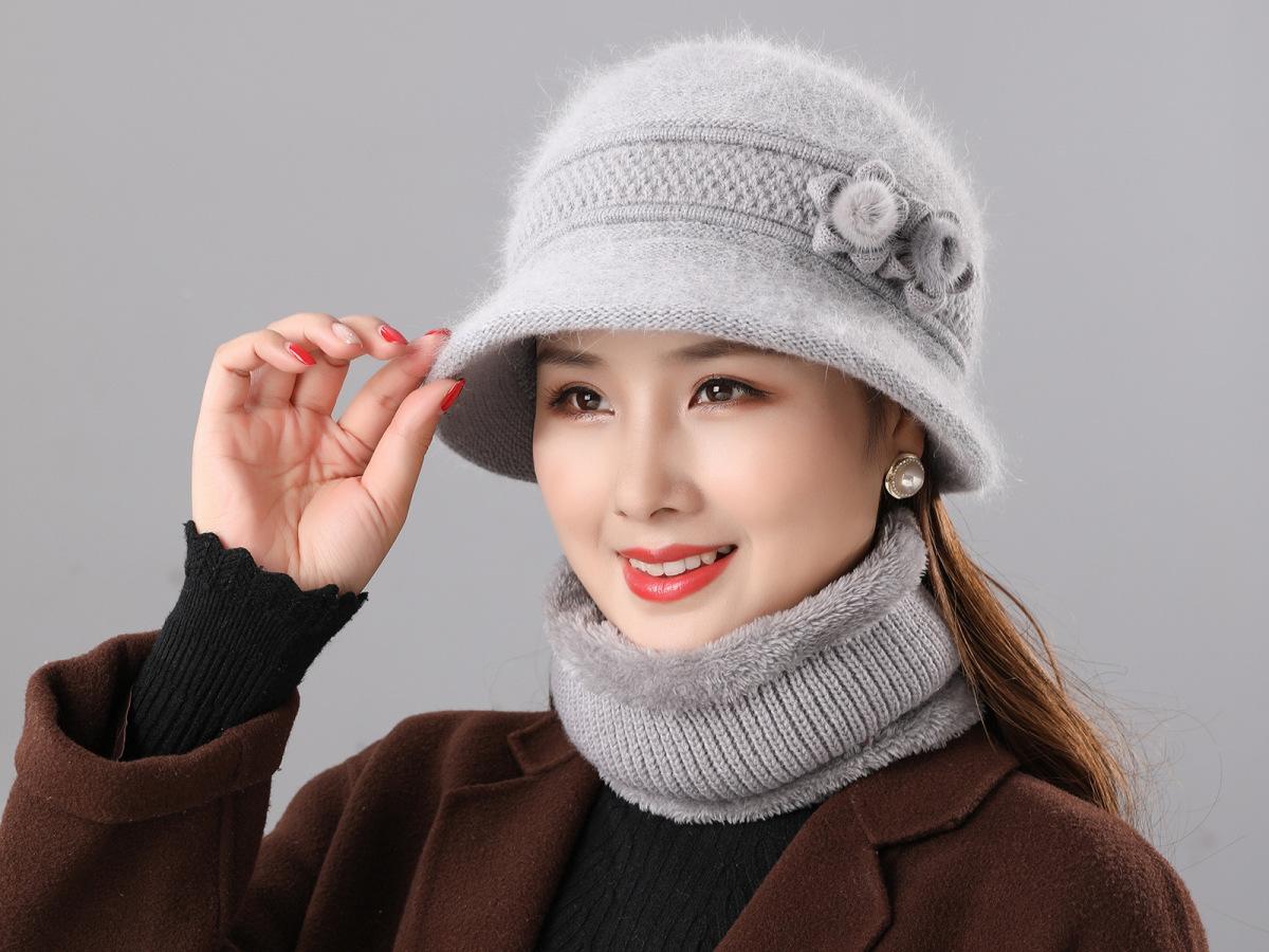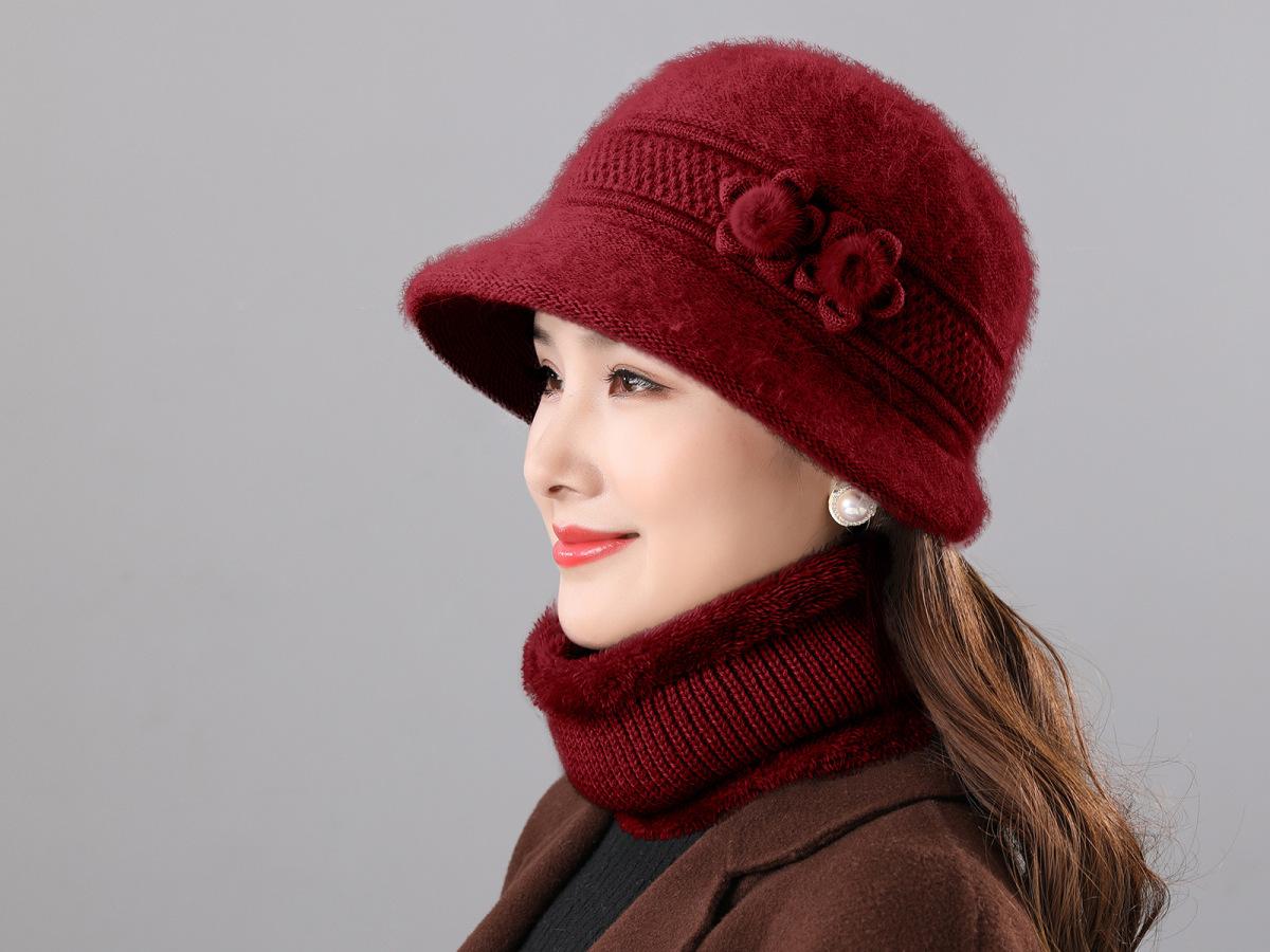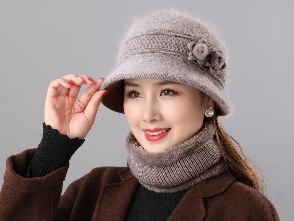 Sombrero cálido de piel de conejo para madres de mediana edad y ancianas otoño e invierno juego de dos piezas de bufanda para mujer sombrero de cubo de invierno para anciana