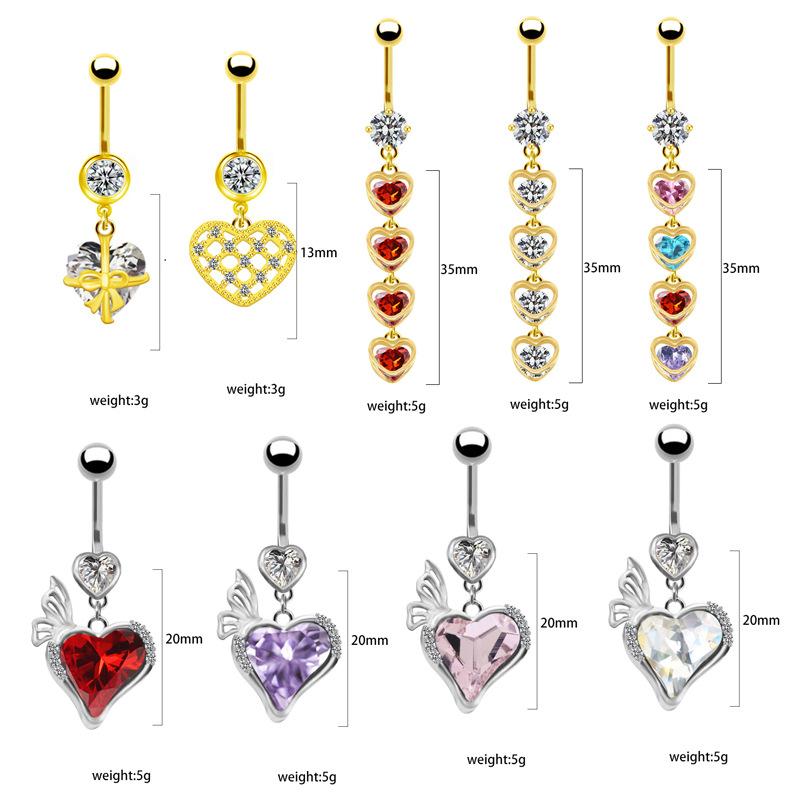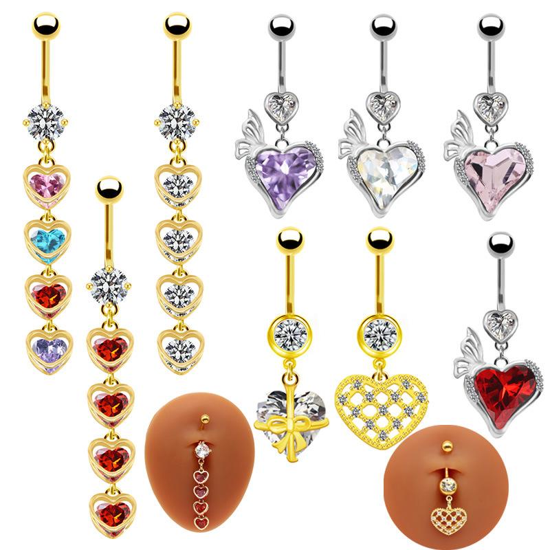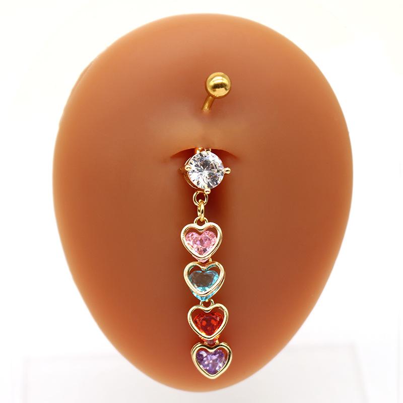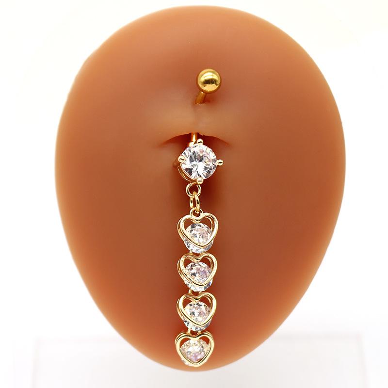 Anillo de ombligo de cuatro corazones transfronterizo europeo y americano de Gaibei, piercing de uña de ombligo, piercing de uña de ombligo, joyería para piercing de ombligo
