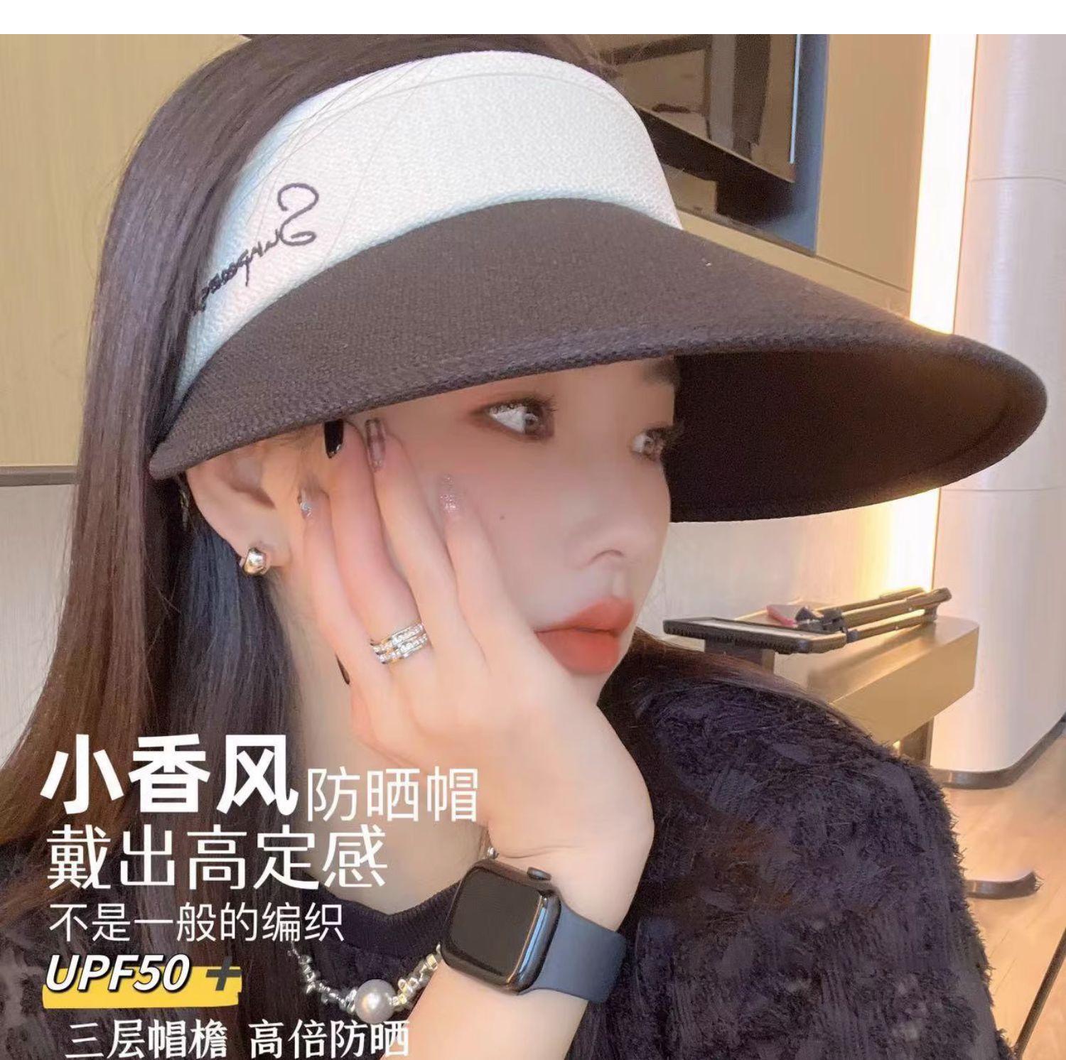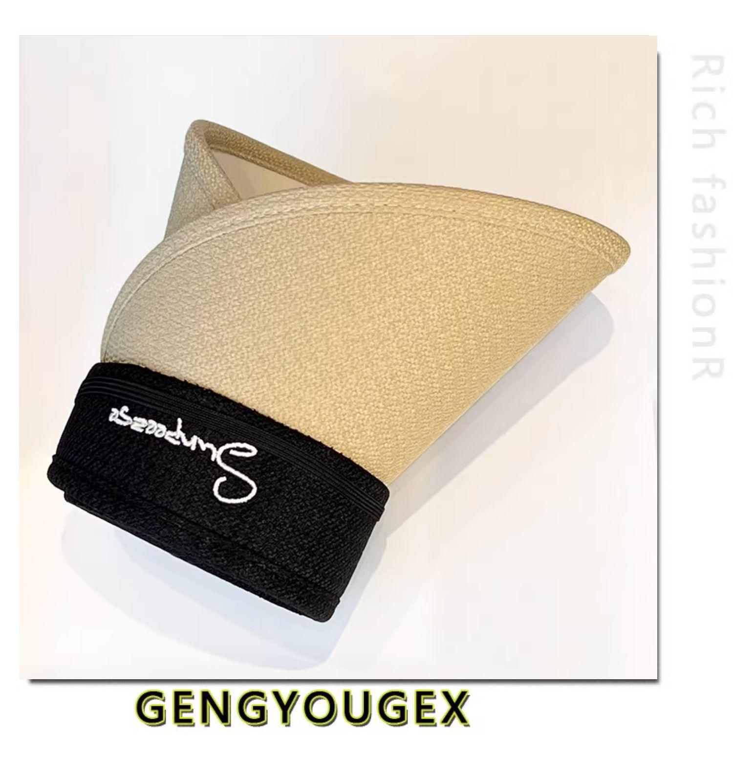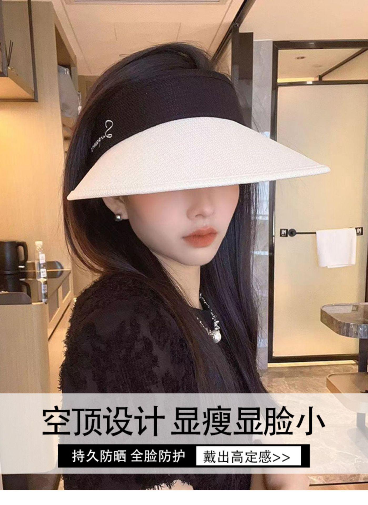 Sombrero de copa vacío versátil estilo coreano para mujer Sombrero de verano de ala ancha para protección solar Sombrero para el sol para exteriores con protección UV y cubierta facial