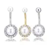 Perforación corporal transfronteriza europea y americana, joyería para danza del vientre con incrustaciones de perla, anillo de ombligo con diamantes redondos, clavo de ombligo recto de fábrica