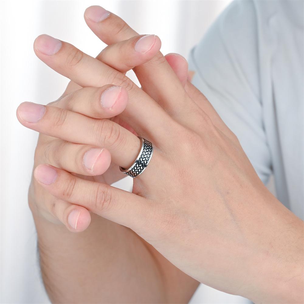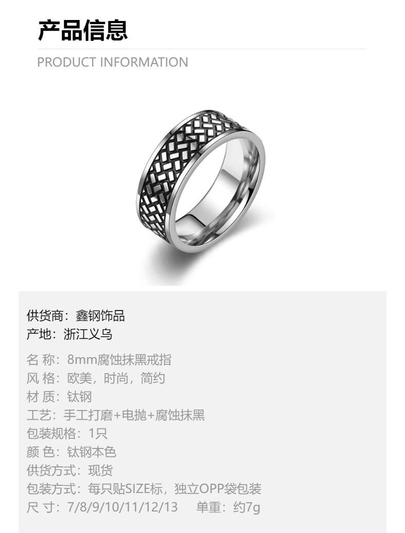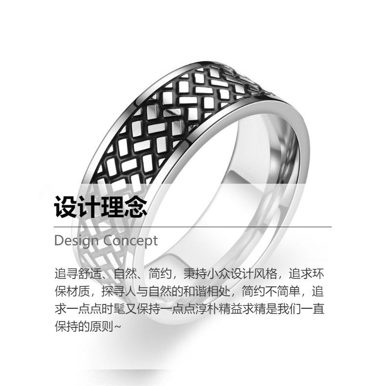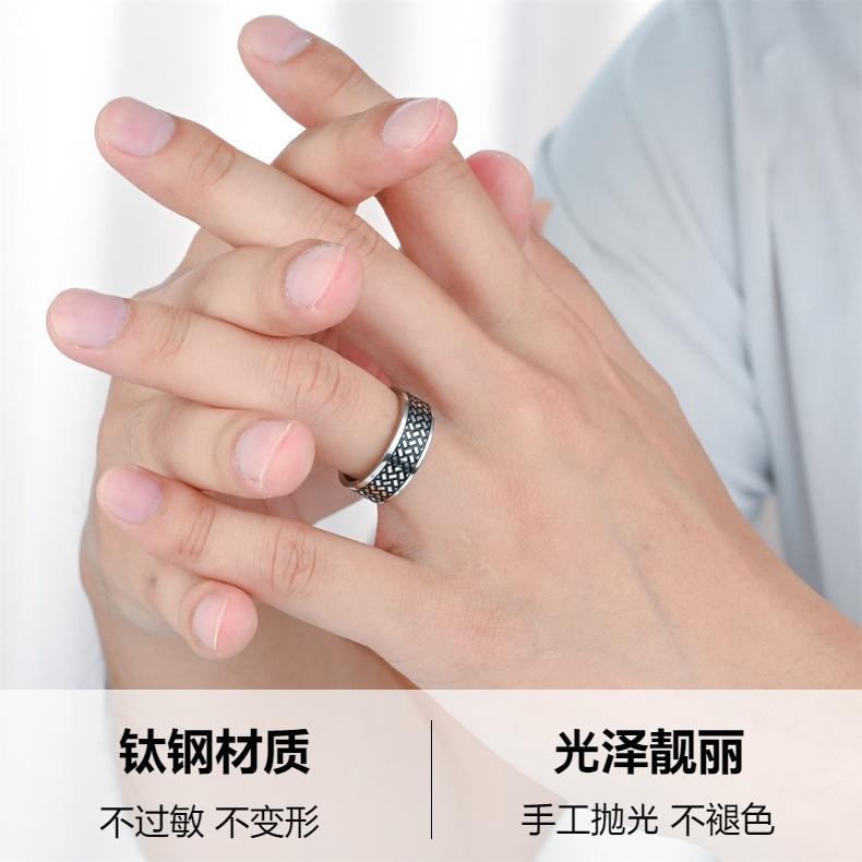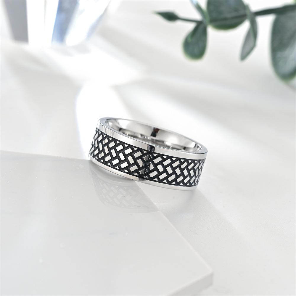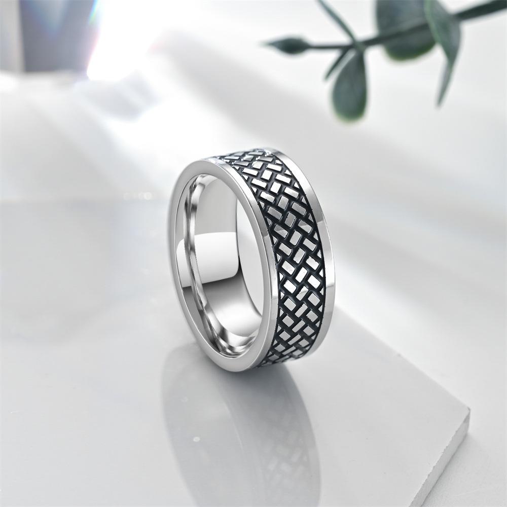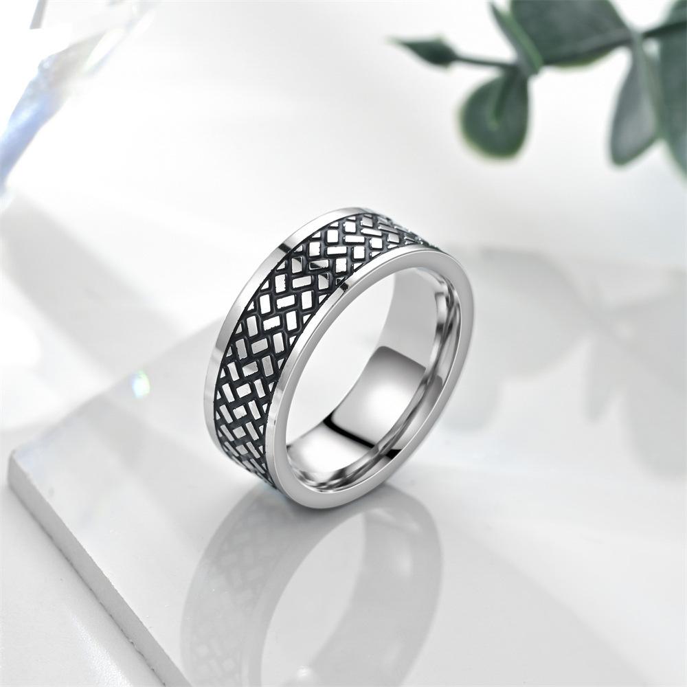 FUENTE fabricante anillo para hombre con textura cuadrada recubierto de aceite anticorrosivo venta caliente europea y americana anillo de acero de titanio que no se desvanece joyería