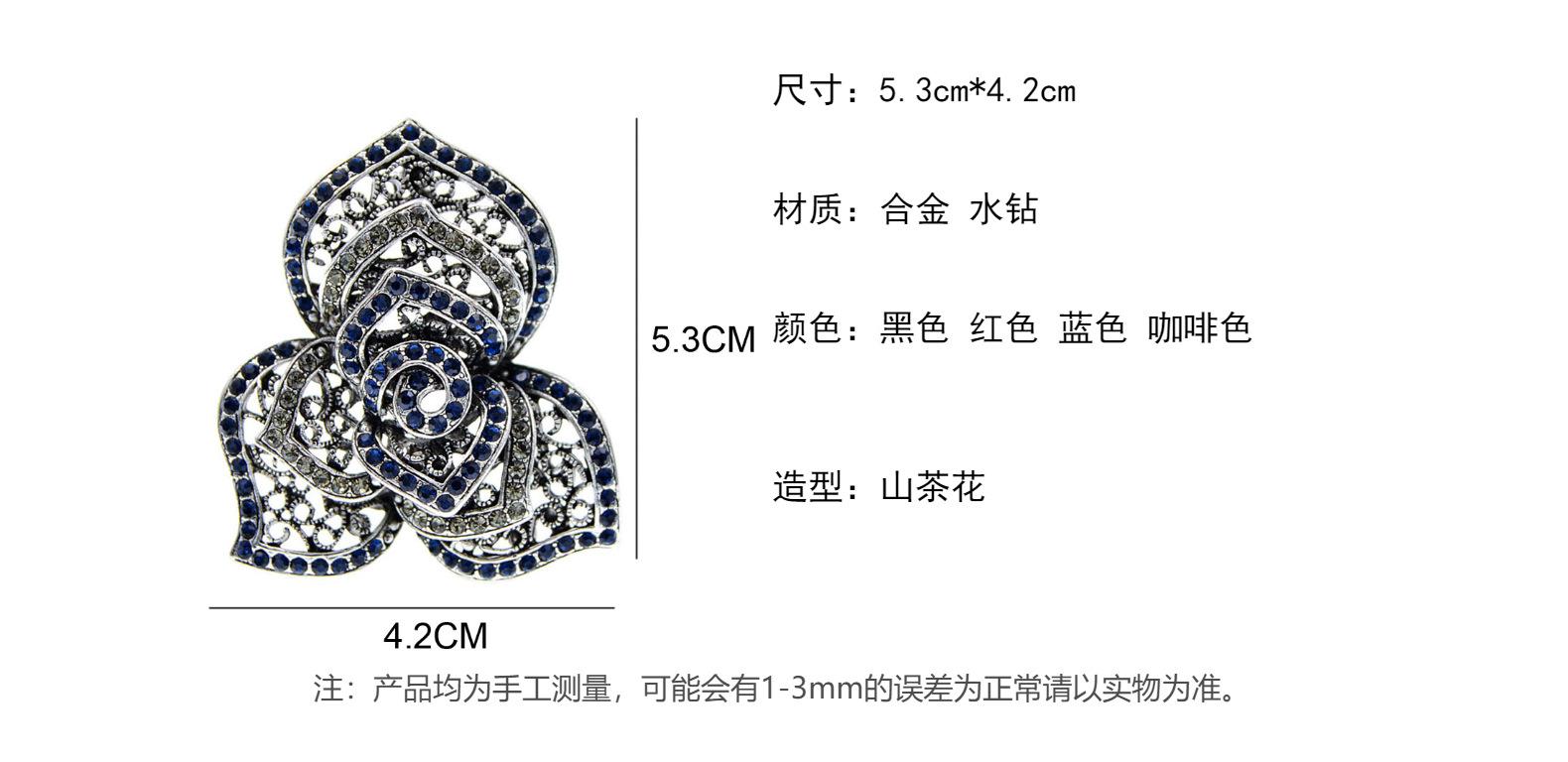 Broche de camelia con diamantes de imitación para mujer, estilo retro, colorido, con flor hueca, estilo europeo y americano