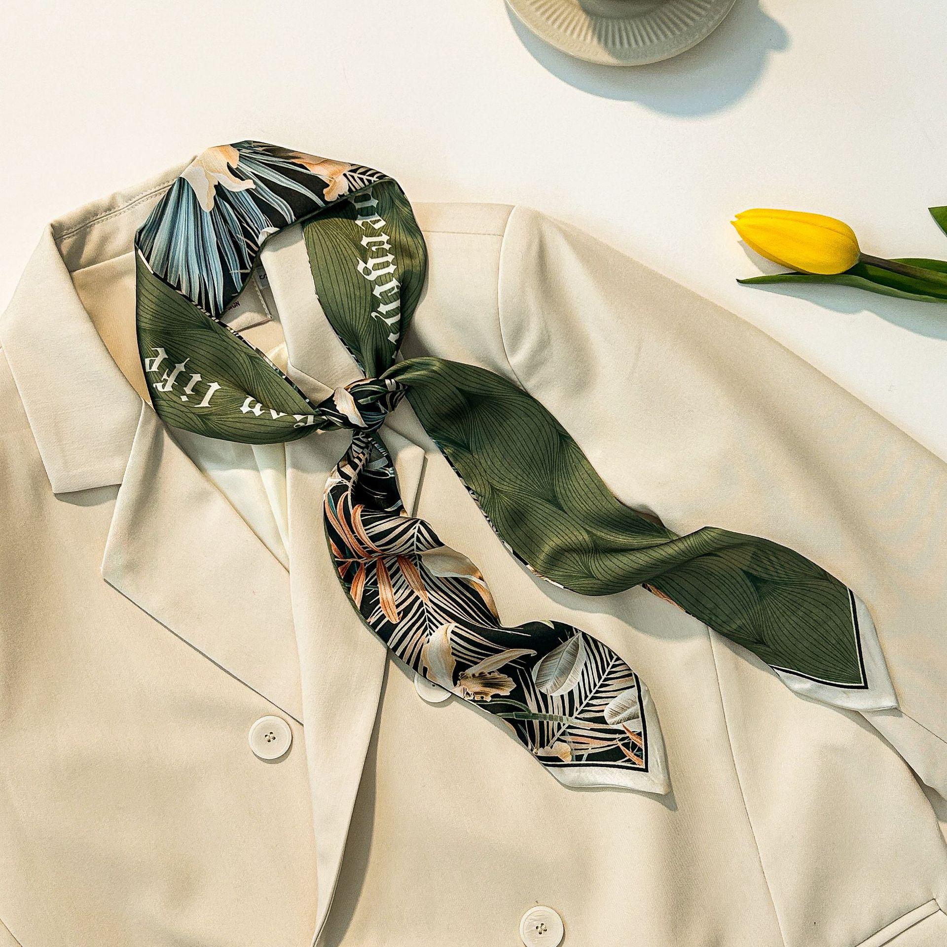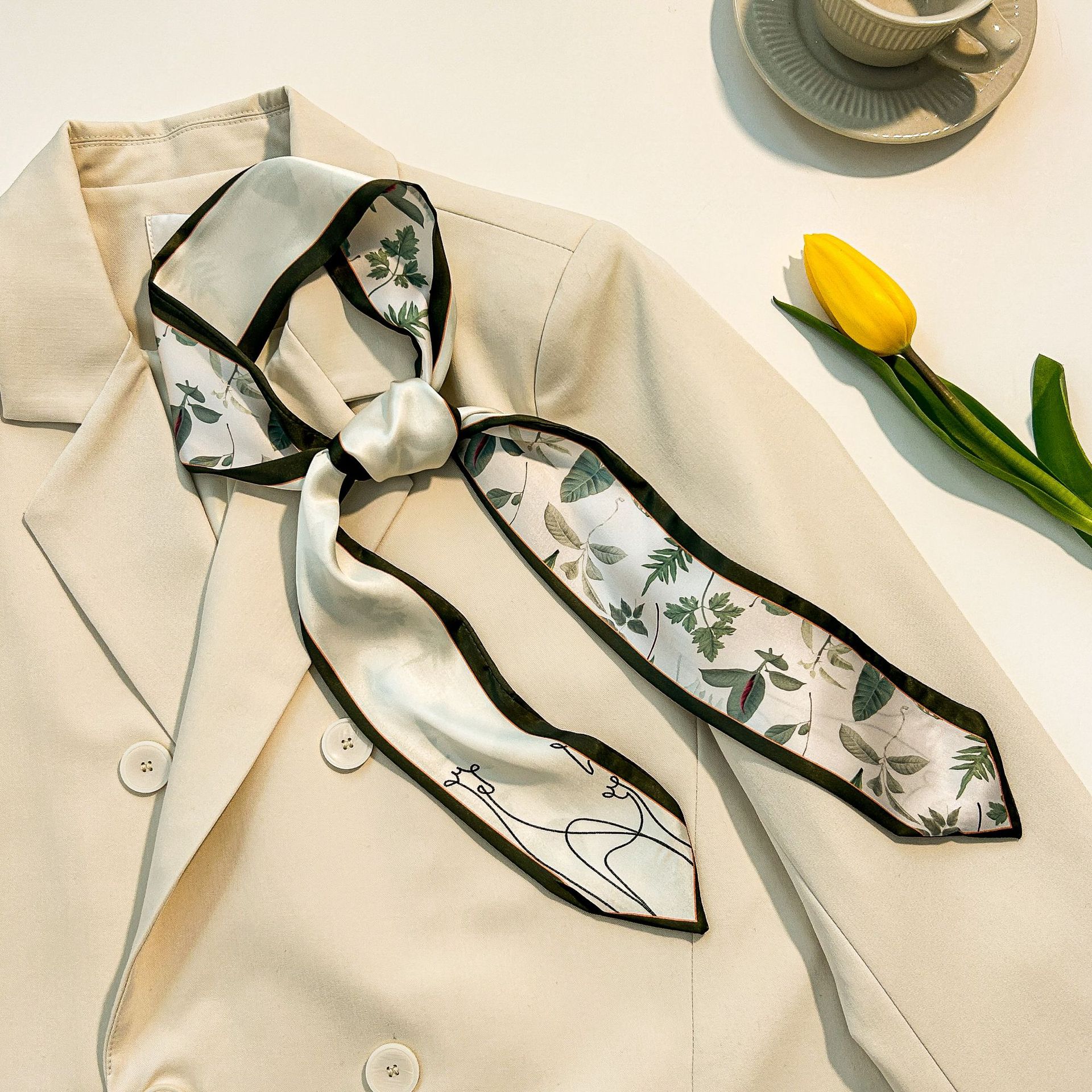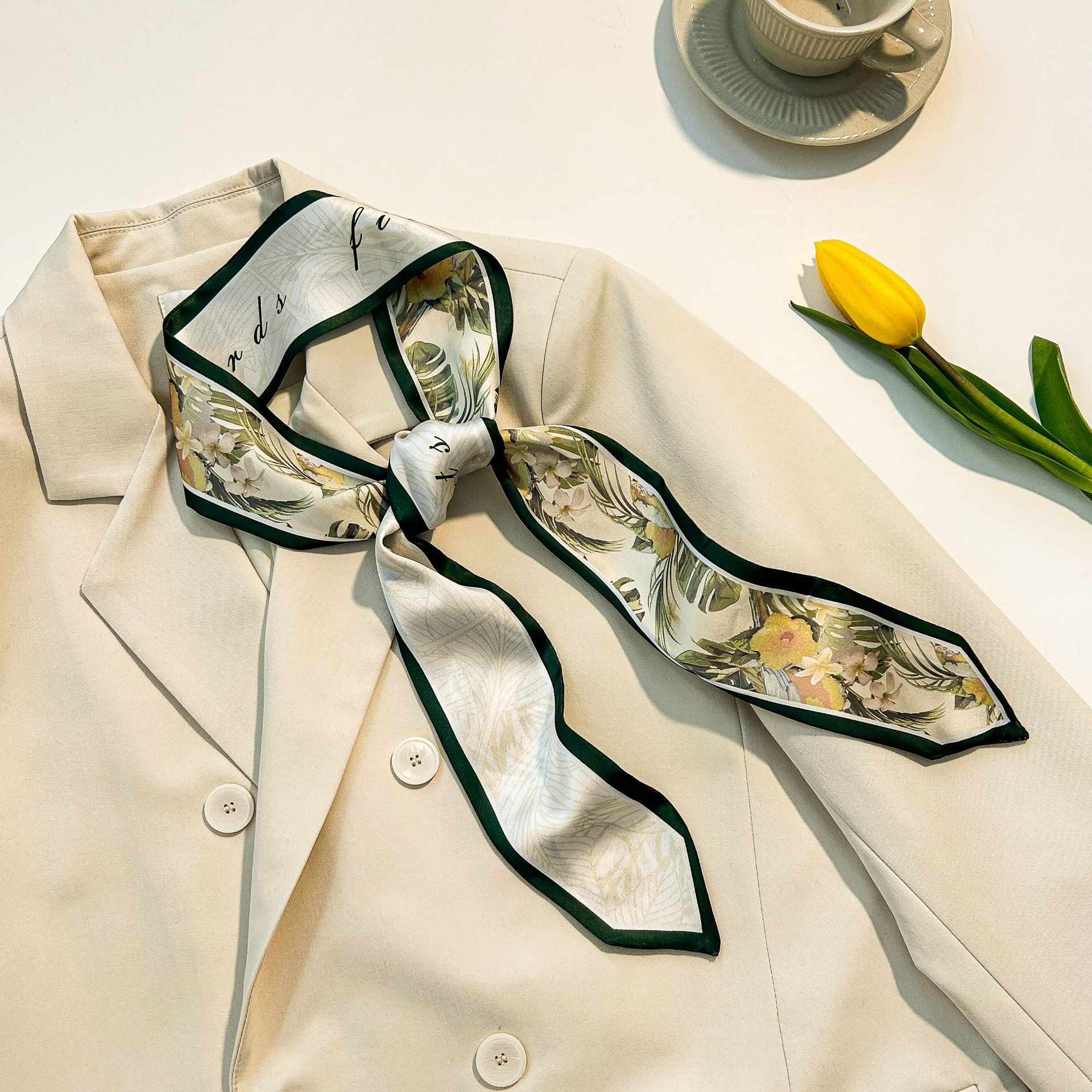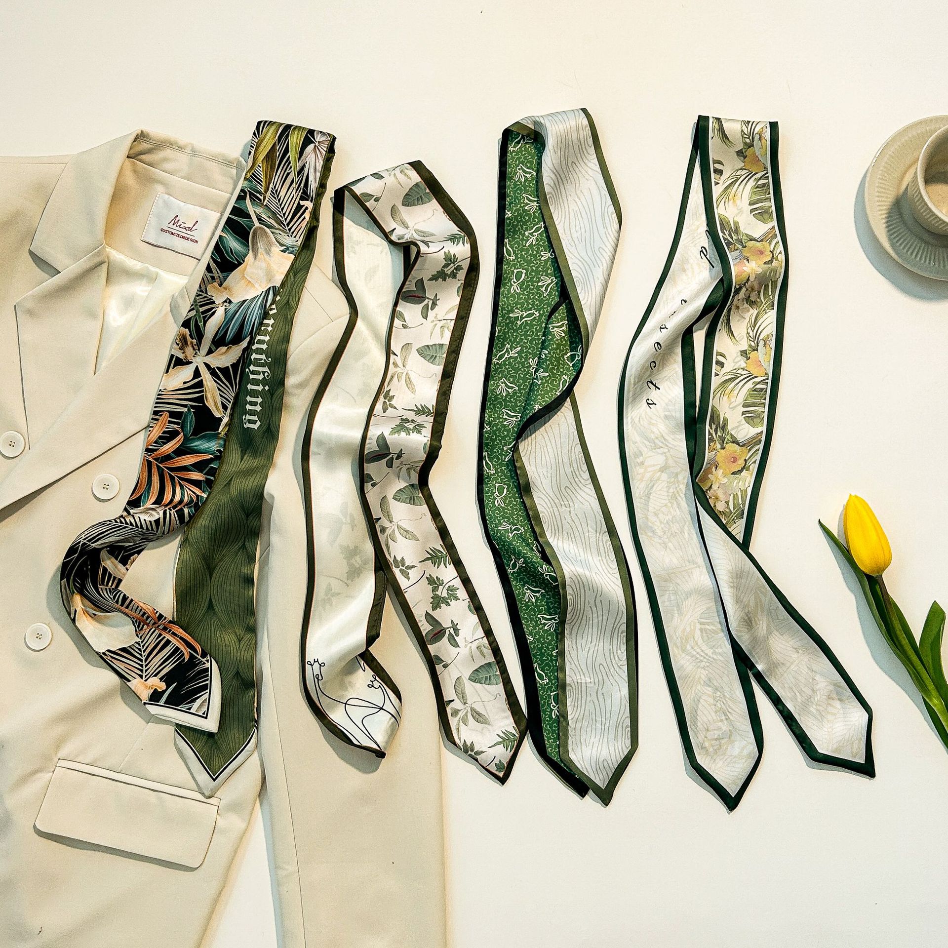Nuevo estilo elegante, combinable con todo, estilo de planta verde, cinta pequeña, estilo coreano, estilo pastoral, bufanda pequeña de doble capa, cinturón para el cabello a la moda